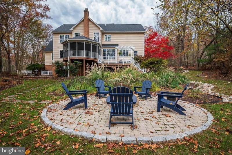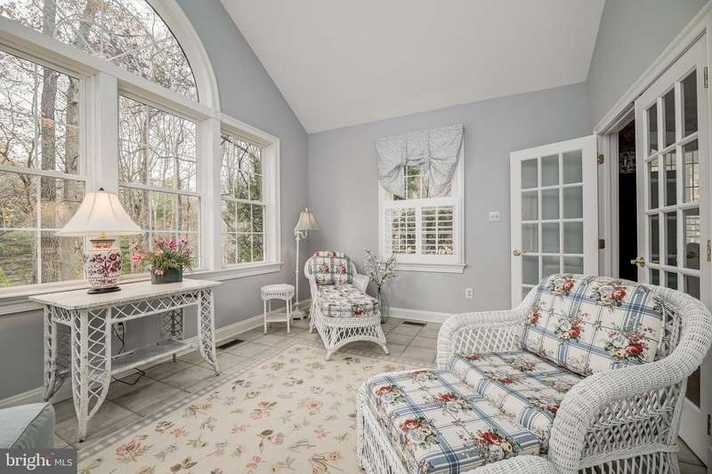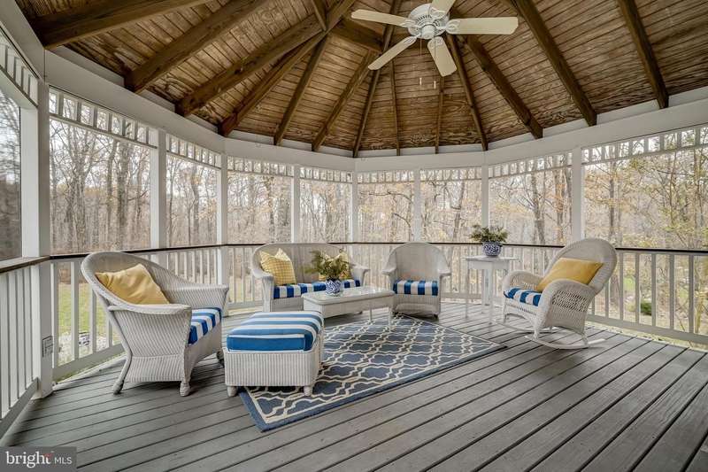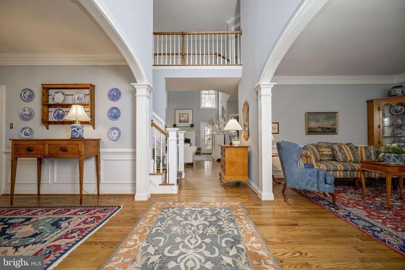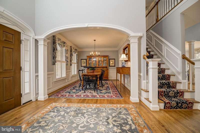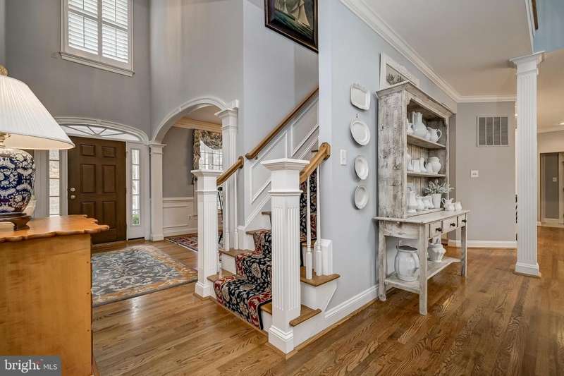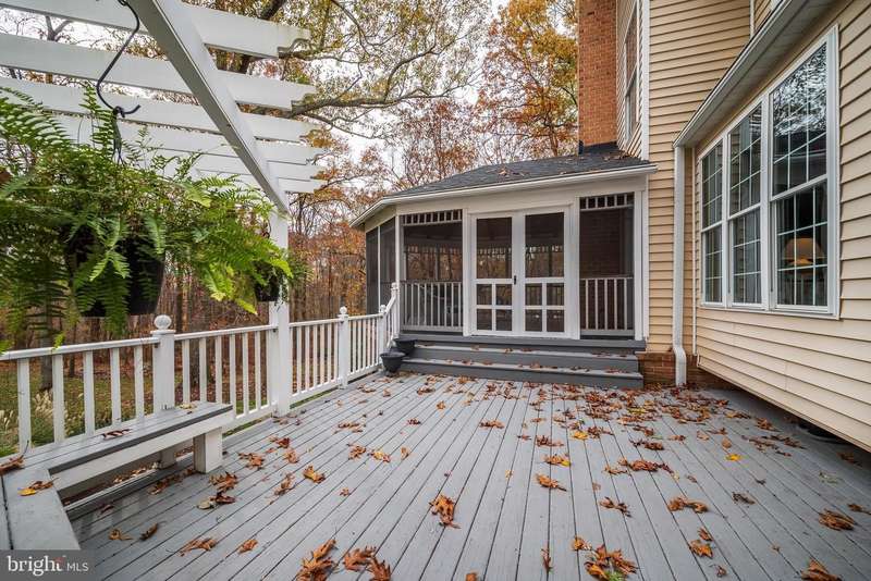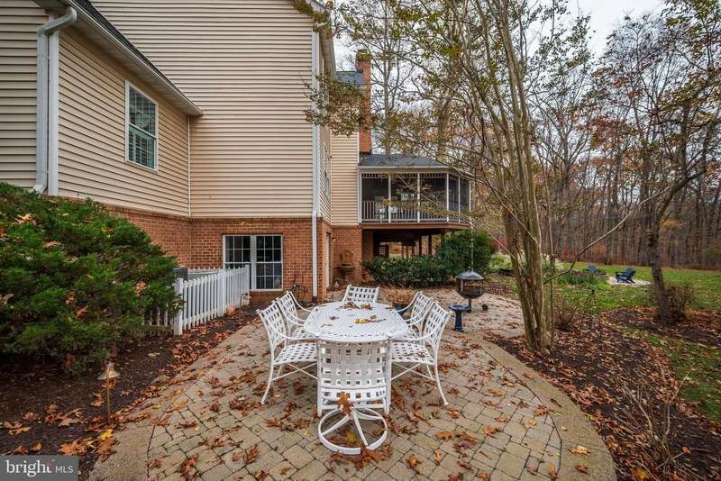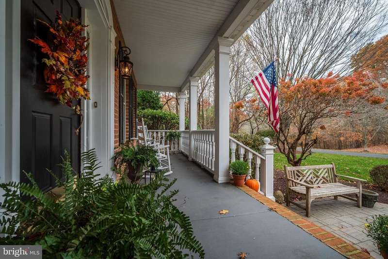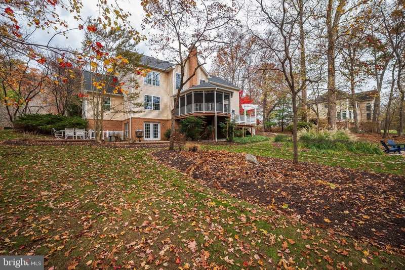 Beautifully sighted on a lovely lot backing to protected woods. Custom built and loved by original owners with artful craftsmanship throughout. Hardwood flooring on the main level, primary bedroom and upper hall. Extensive wood moldings, trim and custom arched entries will impress. Welcomed by the peaceful full front porch, enter the 2-story foyer flanked by formal dining room w/butlers' pantry; formal living room with access to substantial sun room offering seasonal views and separate opportunities for gathering spaces. Onward to the central stair, 2-story family room with centered fireplace and formal mantle, office/library with built-in cabinetry and wall to wall shelving made private by French doors, screened porch open to deck and pergola. Recently renovated kitchen with island, breakfast bar and table space, walk-in bay window, desk, pantry, white cabinetry with Glass display doors, cooktop, built-in microwave/convection wall oven, dishwasher, stainless French door refrigerator with ice/water through the door and freezer drawer; beautiful quartz counters with beveled edge. Embrace the over-sized garage with entry to the mud room and main level laundry room with service sink. Upper level boasts generous primary suite with vaulted ceilings, 2 walk-in closets and recently renovated ensuite bath with soaking tub, shower with rain glass doors, double bowl vanity, cathedral ceilings and wainscoting. Three secondary bedrooms surround the impressive catwalk hall over-looking the family room, open magnificent view of the rear spaces and spectacular view of the rear property. Elegant plantation shutters throughout create that gentle feeling of a Southern living lifestyle. The lower level is finished for additional enjoyment....rec room, dining space, serving bar w/mini-fridge, guest space with ensuite full bath, a secondary finished space for your workout, hobbies or additional office. Additional expansive shelved storage room will house and preserve your treasures. Walkout to a breath-taking rear level yard, plenty of space for yard games, plus 3 separate paver patios, one with fire-pit for your year-round enjoyment or every season beverage and smores!! Roof replaced 2017. HVAC replaced 2018. Kitchen/primary bath remodeled 2017. A perfect opportunity to embrace life in Wellington, one of Western Howard County's first and most prestigious custom neighborhoods, so conveniently located within minutes to Howard County's outstanding schools, Western Regional park and library complex, Cattail Country Club, shopping, restaurants nearby. Welcome Home!