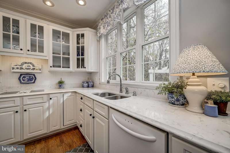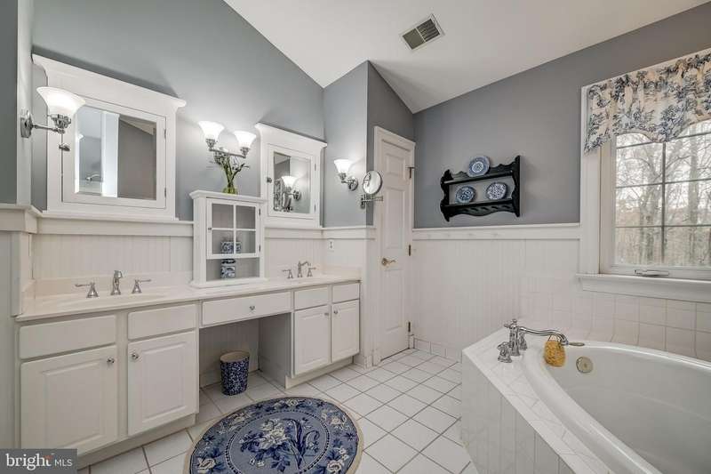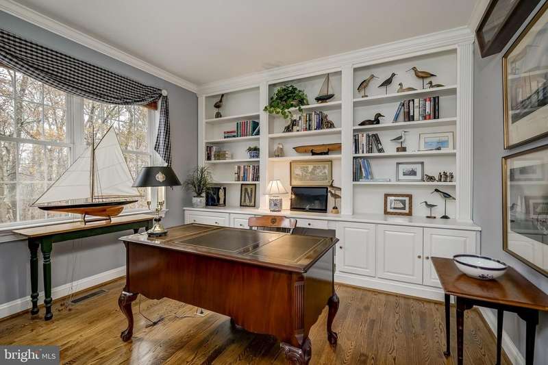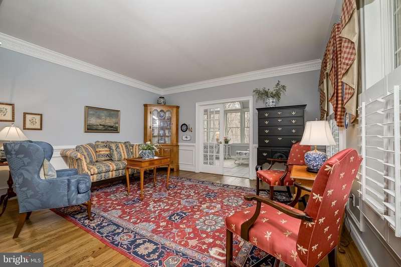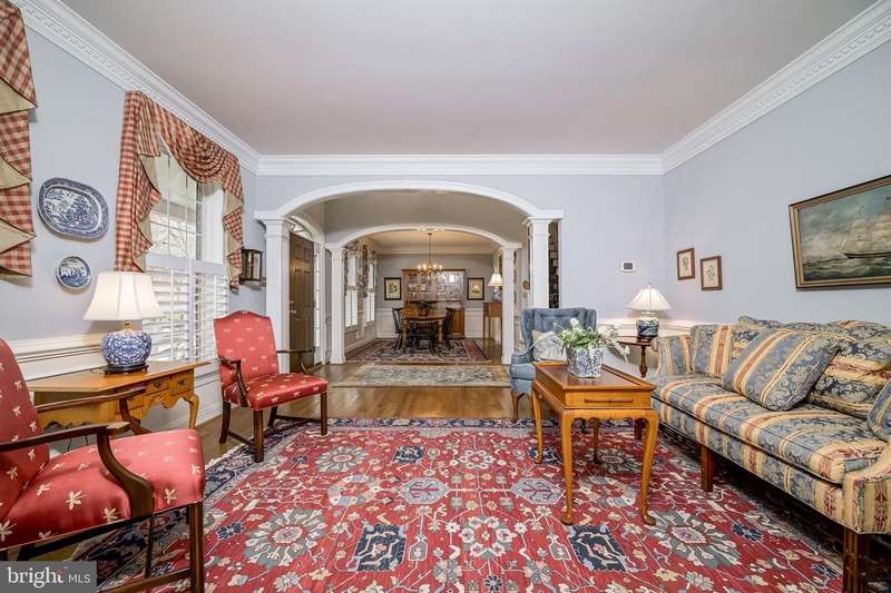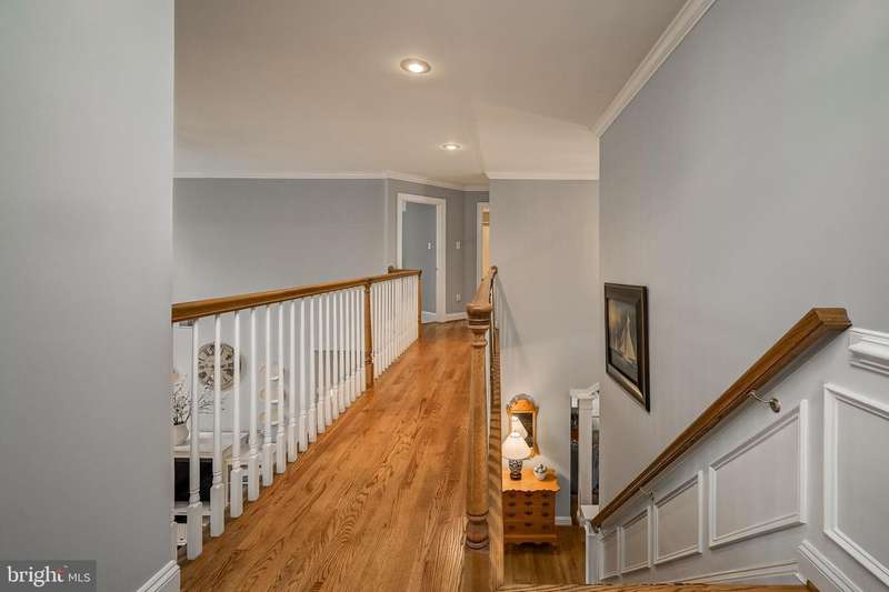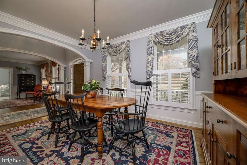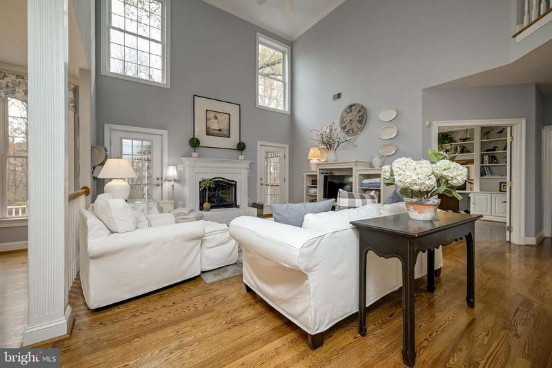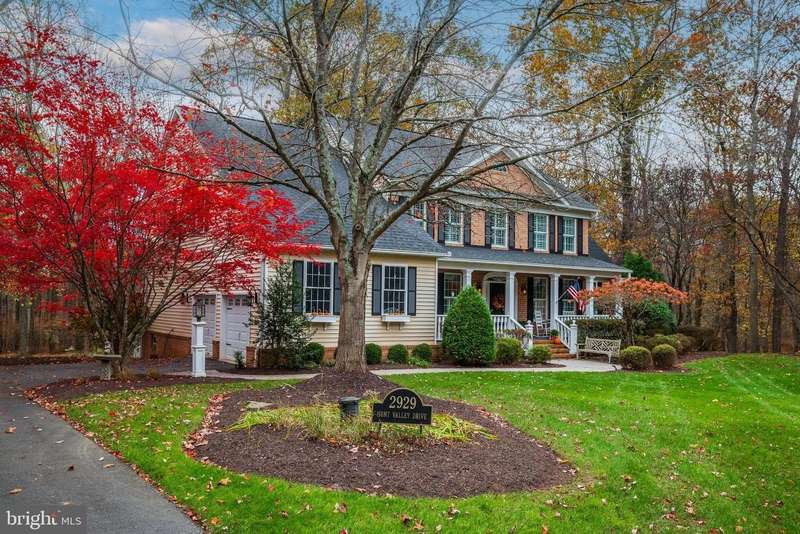 Beautifully sighted on a lovely lot backing to protected woods. Custom built and loved by original owners with artful craftsmanship throughout. Hardwood flooring on the main level, primary bedroom and upper hall. Extensive wood moldings, trim and custom arched entries will impress. Welcomed by the peaceful full front porch, enter the 2-story foyer flanked by formal dining room w/butlers' pantry; formal living room with access to substantial sun room offering seasonal views and separate opportunities for gathering spaces. Onward to the central stair, 2-story family room with centered fireplace and formal mantle, office/library with built-in cabinetry and wall to wall shelving made private by French doors, screened porch open to deck and pergola. Recently renovated kitchen with island, breakfast bar and table space, walk-in bay window, desk, pantry, white cabinetry with Glass display doors, cooktop, built-in microwave/convection wall oven, dishwasher, stainless French door refrigerator with ice/water through the door and freezer drawer; beautiful quartz counters with beveled edge. Embrace the over-sized garage with entry to the mud room and main level laundry room with service sink. Upper level boasts generous primary suite with vaulted ceilings, 2 walk-in closets and recently renovated ensuite bath with soaking tub, shower with rain glass doors, double bowl vanity, cathedral ceilings and wainscoting. Three secondary bedrooms surround the impressive catwalk hall over-looking the family room, open magnificent view of the rear spaces and spectacular view of the rear property. Elegant plantation shutters throughout create that gentle feeling of a Southern living lifestyle. The lower level is finished for additional enjoyment....rec room, dining space, serving bar w/mini-fridge, guest space with ensuite full bath, a secondary finished space for your workout, hobbies or additional office. Additional expansive shelved storage room will house and preserve your treasures. Walkout to a breath-taking rear level yard, plenty of space for yard games, plus 3 separate paver patios, one with fire-pit for your year-round enjoyment or every season beverage and smores!! Roof replaced 2017. HVAC replaced 2018. Kitchen/primary bath remodeled 2017. A perfect opportunity to embrace life in Wellington, one of Western Howard County's first and most prestigious custom neighborhoods, so conveniently located within minutes to Howard County's outstanding schools, Western Regional park and library complex, Cattail Country Club, shopping, restaurants nearby. Welcome Home!