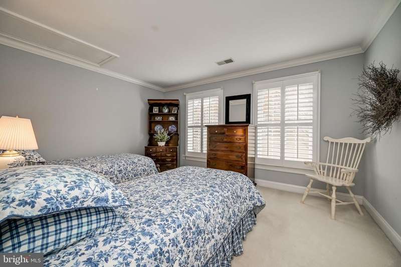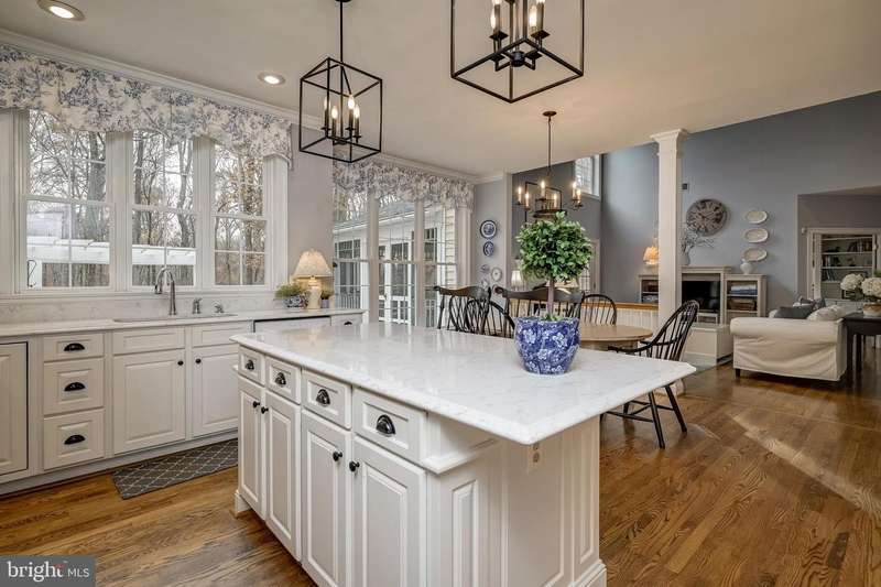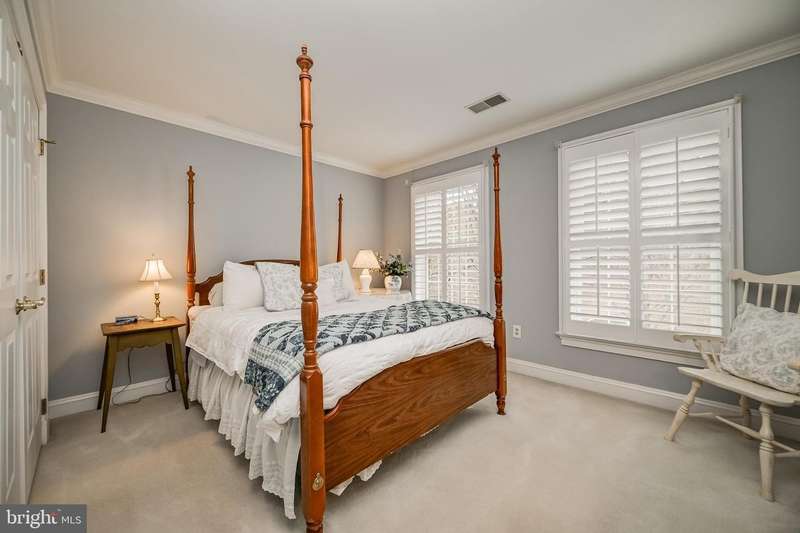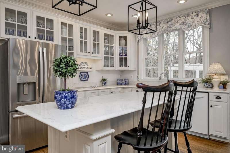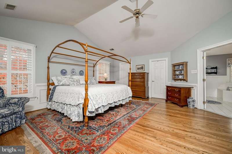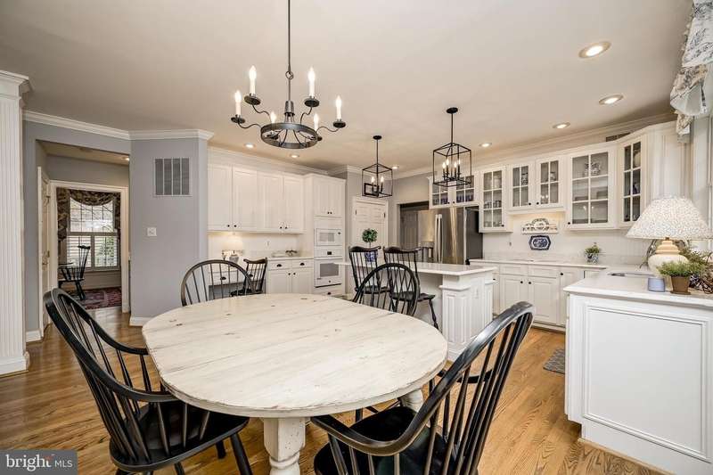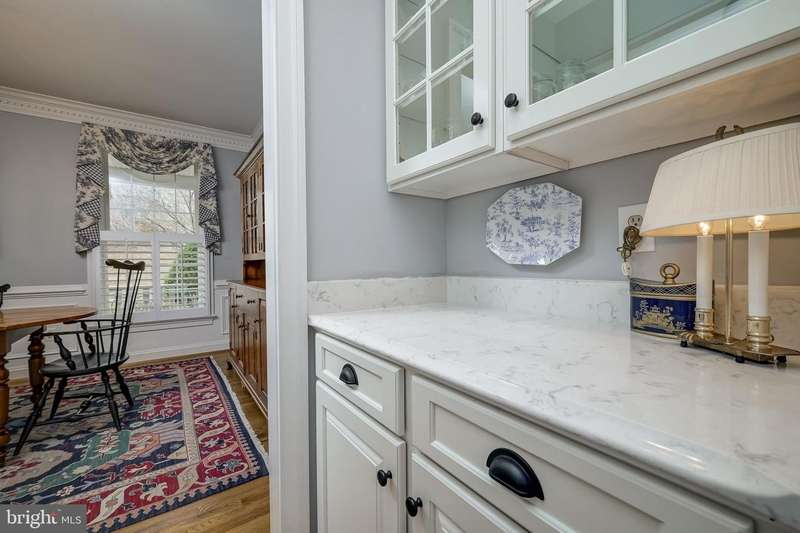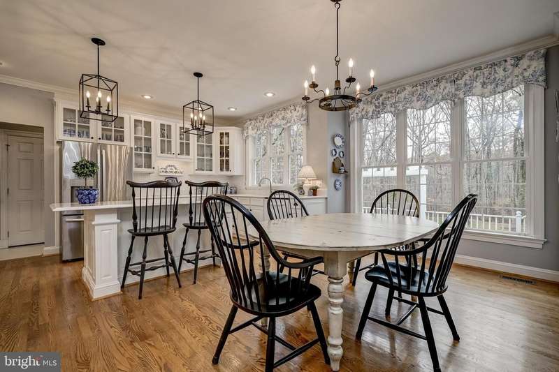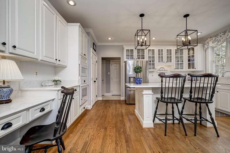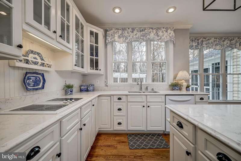 Beautifully sighted on a lovely lot backing to protected woods. Custom built and loved by original owners with artful craftsmanship throughout. Hardwood flooring on the main level, primary bedroom and upper hall. Extensive wood moldings, trim and custom arched entries will impress. Welcomed by the peaceful full front porch, enter the 2-story foyer flanked by formal dining room w/butlers' pantry; formal living room with access to substantial sun room offering seasonal views and separate opportunities for gathering spaces. Onward to the central stair, 2-story family room with centered fireplace and formal mantle, office/library with built-in cabinetry and wall to wall shelving made private by French doors, screened porch open to deck and pergola. Recently renovated kitchen with island, breakfast bar and table space, walk-in bay window, desk, pantry, white cabinetry with Glass display doors, cooktop, built-in microwave/convection wall oven, dishwasher, stainless French door refrigerator with ice/water through the door and freezer drawer; beautiful quartz counters with beveled edge. Embrace the over-sized garage with entry to the mud room and main level laundry room with service sink. Upper level boasts generous primary suite with vaulted ceilings, 2 walk-in closets and recently renovated ensuite bath with soaking tub, shower with rain glass doors, double bowl vanity, cathedral ceilings and wainscoting. Three secondary bedrooms surround the impressive catwalk hall over-looking the family room, open magnificent view of the rear spaces and spectacular view of the rear property. Elegant plantation shutters throughout create that gentle feeling of a Southern living lifestyle. The lower level is finished for additional enjoyment....rec room, dining space, serving bar w/mini-fridge, guest space with ensuite full bath, a secondary finished space for your workout, hobbies or additional office. Additional expansive shelved storage room will house and preserve your treasures. Walkout to a breath-taking rear level yard, plenty of space for yard games, plus 3 separate paver patios, one with fire-pit for your year-round enjoyment or every season beverage and smores!! Roof replaced 2017. HVAC replaced 2018. Kitchen/primary bath remodeled 2017. A perfect opportunity to embrace life in Wellington, one of Western Howard County's first and most prestigious custom neighborhoods, so conveniently located within minutes to Howard County's outstanding schools, Western Regional park and library complex, Cattail Country Club, shopping, restaurants nearby. Welcome Home!
