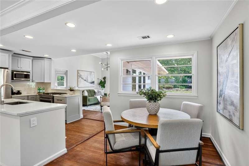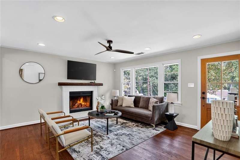 Renovated and expanded ranch home in the center of Ashford Park! Walk into an open and sunny layout with large windows showcasing both front yard views and landscaped, walk-out backyard views. The living room offers recessed lighting and a fireplace with brick hearth and surround that opens to the renovated kitchen with both prep island and bar seating and full stainless steel appliance package with gas range. 2nd living area added with vaulted tongue and groove ceilings and french door access to the backyard, patio and firepit. New owner's suite easily accommodates a king size bed and also features stained tongue and groove vault ceiling and a spacious, private bath with freestanding tub, walk-in shower with marble tile, separate vanities, large closet and private toilet room. 2 full, additional bathrooms have been renovated and are shared by 3 more bedrooms. Separate laundry room plus covered storage in the carport and additional park pad. Custom landscaping and sodded backyard set up great for endless entertainment.