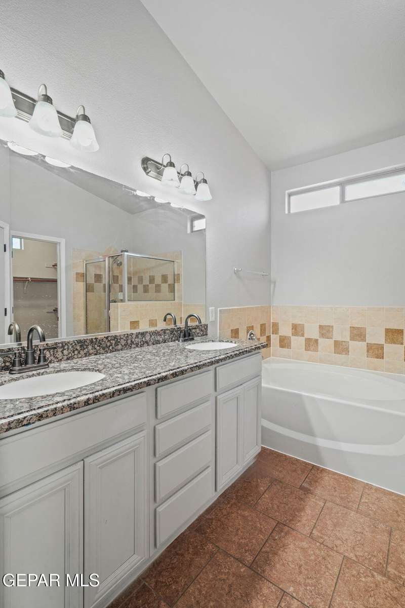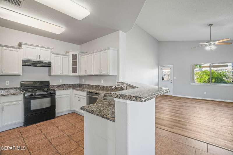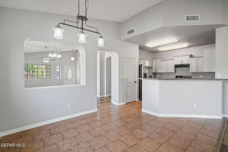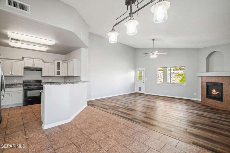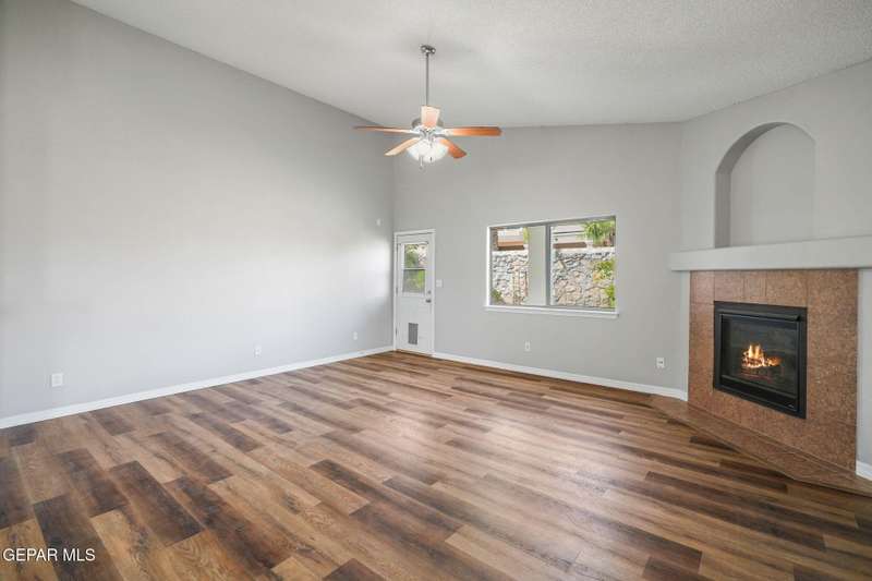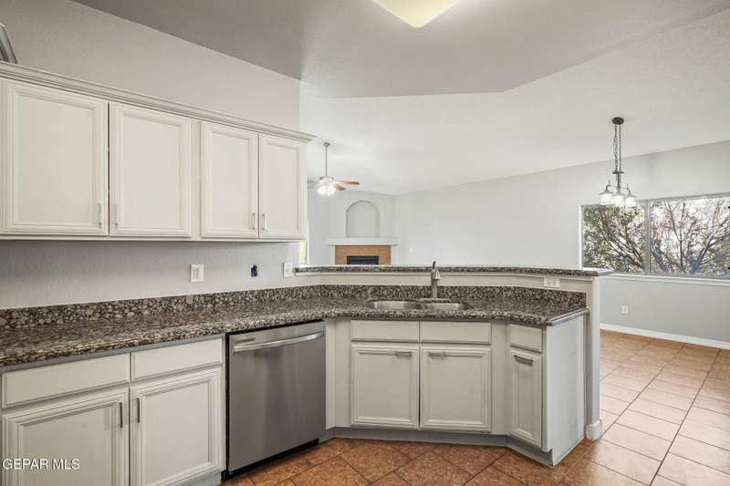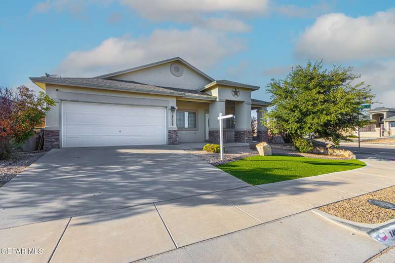 This beautiful home offers 3 bedrooms, 2 bathrooms, and a versatile flex room-ideal for a home office, playroom, or extra living space. You'll love the open-concept layout with high ceilings, elegant finishes, and an abundance of natural light. The kitchen features granite countertops and stainless steel appliances, perfect for cooking and entertaining. The serene primary suite includes a walk-in closet and a luxurious jetted tub for relaxing after a long day. Step outside to a landscaped backyard that's perfect for gatherings or quiet evenings. Located in a desirable neighborhood close to schools, shopping, and Fort Bliss. Pets: Negotiable with a non-refundable fee.