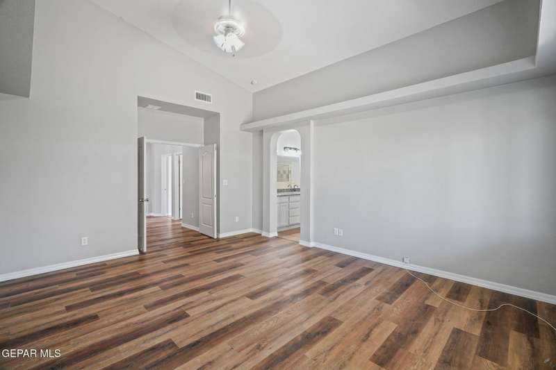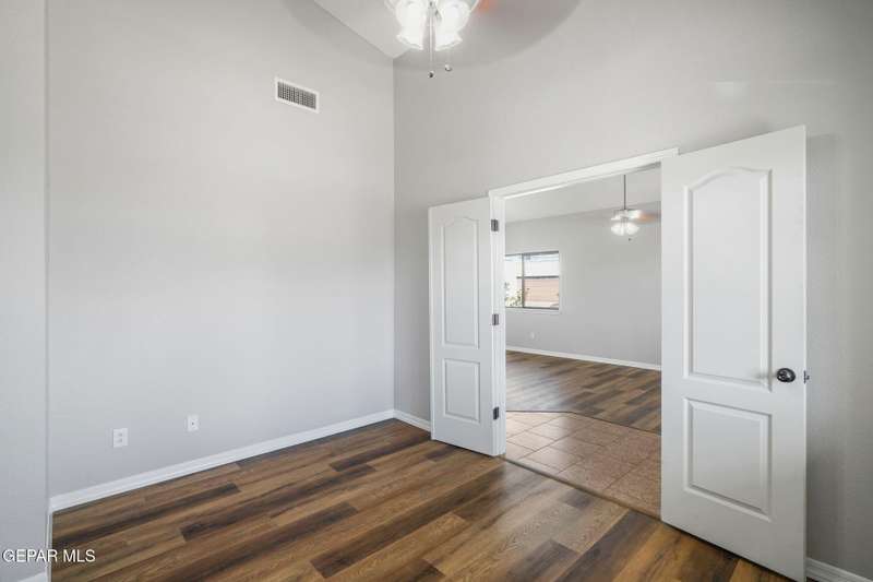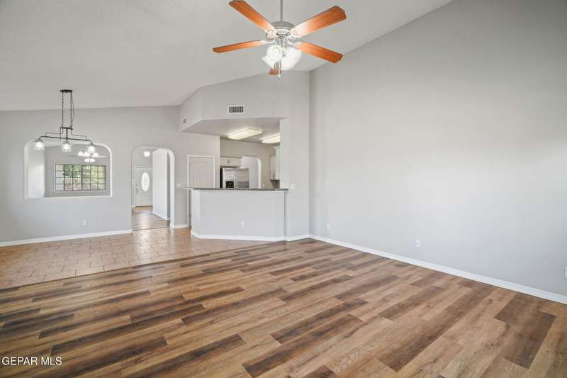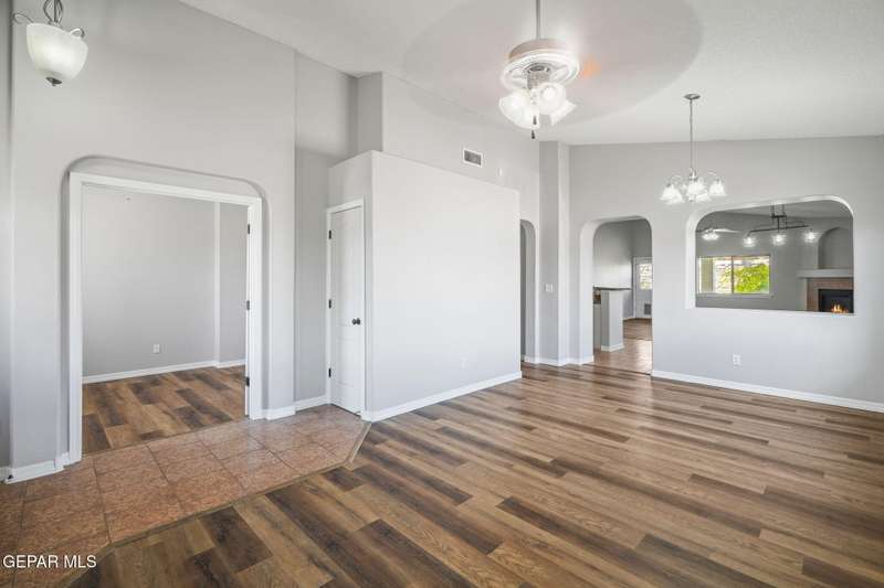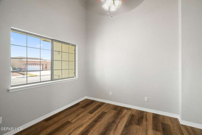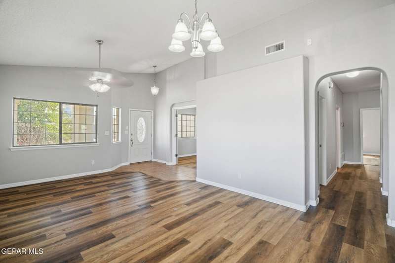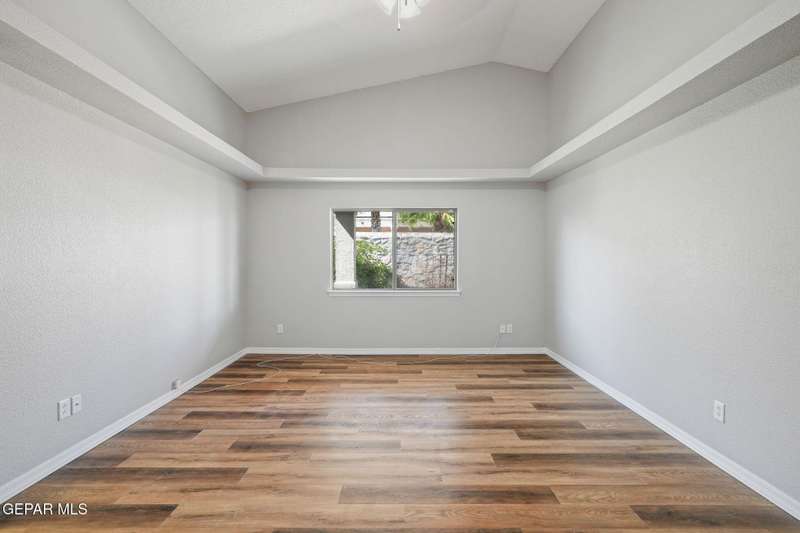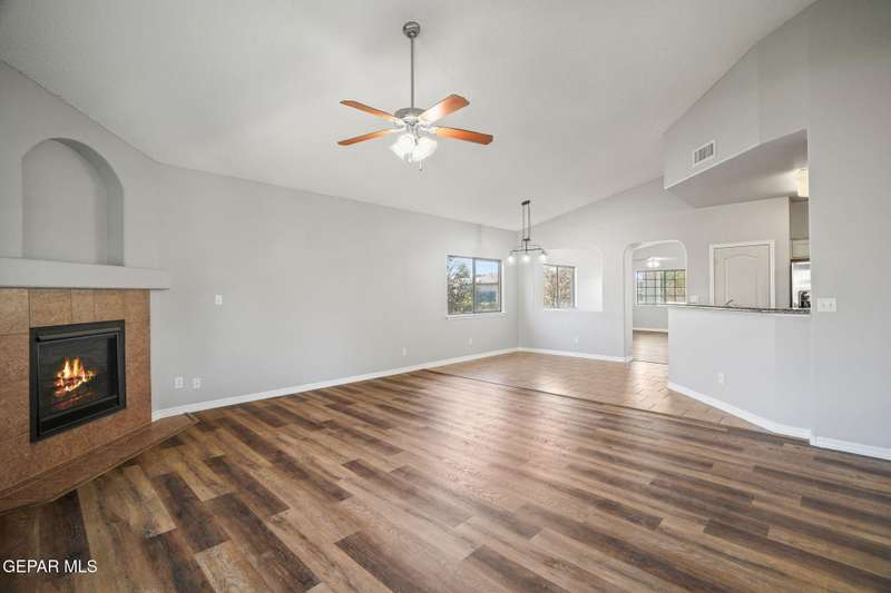 This beautiful home offers 3 bedrooms, 2 bathrooms, and a versatile flex room-ideal for a home office, playroom, or extra living space. You'll love the open-concept layout with high ceilings, elegant finishes, and an abundance of natural light. The kitchen features granite countertops and stainless steel appliances, perfect for cooking and entertaining. The serene primary suite includes a walk-in closet and a luxurious jetted tub for relaxing after a long day. Step outside to a landscaped backyard that's perfect for gatherings or quiet evenings. Located in a desirable neighborhood close to schools, shopping, and Fort Bliss. Pets: Negotiable with a non-refundable fee.
