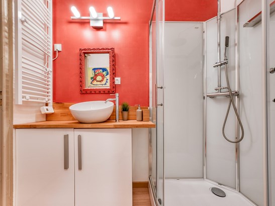 On the ground floor, two independent areas each feature their own bathroom. Depending on your needs, they can serve as guest rooms, modular reception spaces, or even as an independent guesthouse, as one already includes a fitted kitchen.
