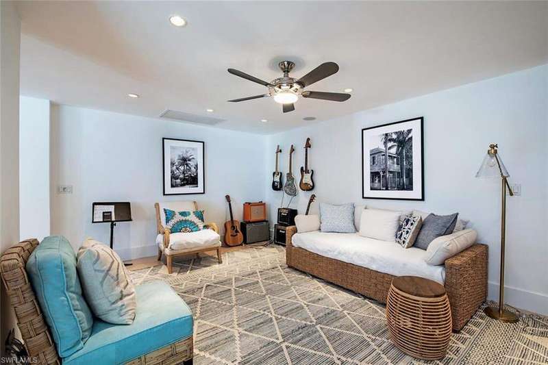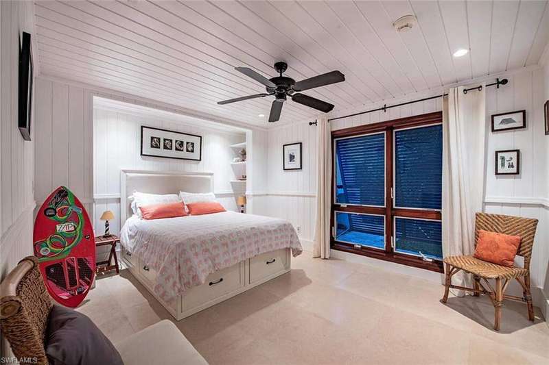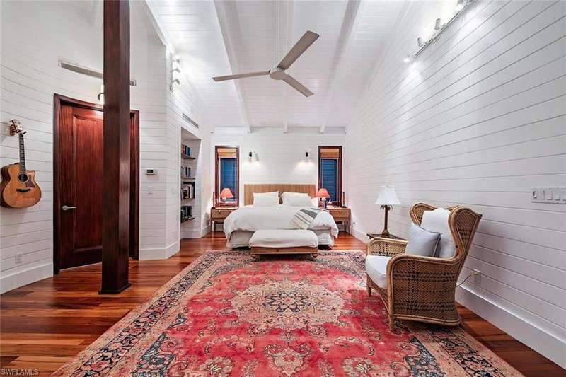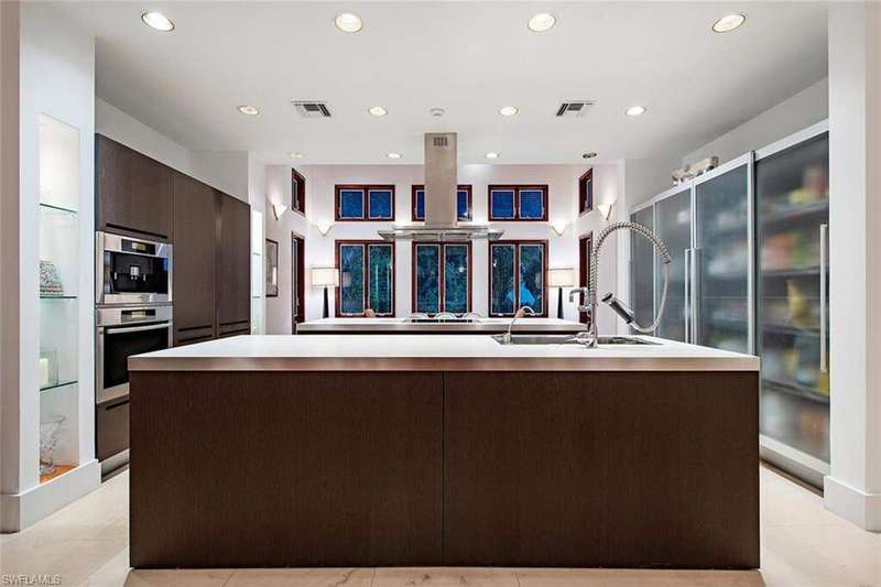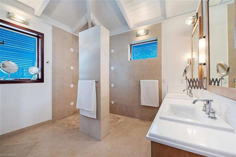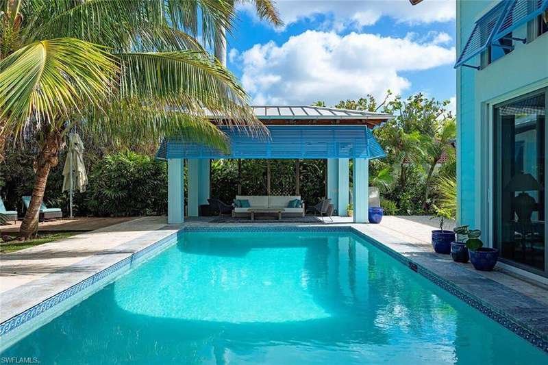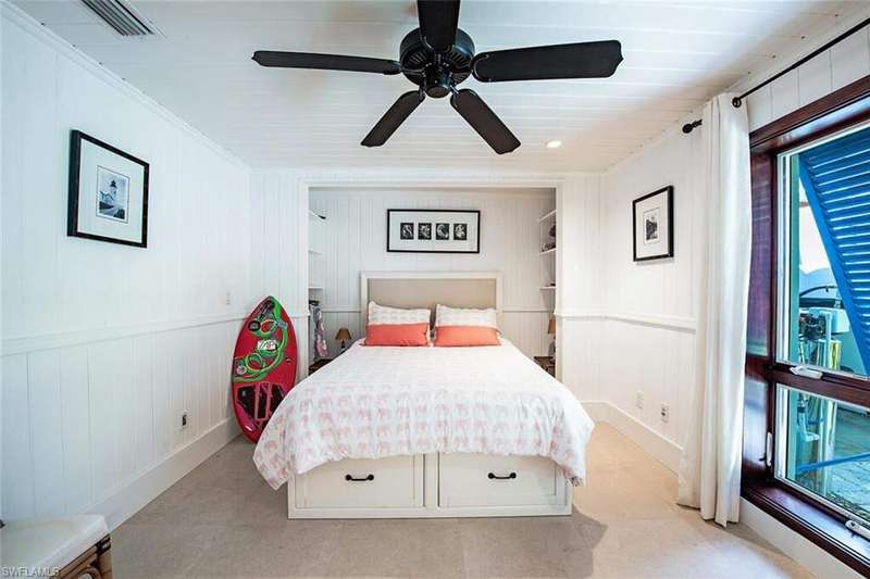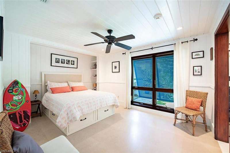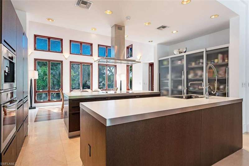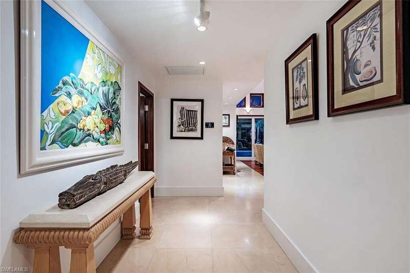 Showcasing a myriad of quality finishes and an eclectic coastal design, this waterfront residence offers backyard Naples Bay access and is walkable to all that Third Street South has to offer, including fine dining, world-class shopping, and cultural events. The main living spaces are defined by vaulted, exposed and stained beam ceilings, cherry wood inlays, and copious windows. Each space, from the formal dining room, to the kitchen, living room, and family room, are all interconnected, creating an ideal space for entertaining guests or enjoying intimate family dinners. Without argue, the gourmet chef's kitchen is the heart of the home and is equipped with top-of-the-line Miele appliances, multiple islands, as well as frosted glass and custom walnut cabinetry. Large sliders and French doors seamlessly connect the interior and exterior living environs which offer a true tropical setting that is unmatched with its varied vegetation including bamboo and fruit trees, sunbathing deck, a secluded hammock framed by palms, outdoor shower, a loggia with tongue and groove ceiling, and a boat dock with cutout, lift, as well as fish-cleaning station. The master suite, which has private access to all the aforementioned exterior environs, is a retreat in itself, and showcases a continuation of vaulted exposed beam ceilings, shiplap detailing, built-in bookshelves, and a bathroom complete with floating vanities and walk-in shower. Completing the all one level residence are two guest suites, one of which also has private exterior access, that are enveloped in nautical-inspired shiplap wall details, a den / flex space, as well as a half bathroom. Additional notable enhancements include a generator, 1,000 lb propane tank, multiple above-ground and irrigation-equipped metal garden beds, standing-seam metal roof, a wine cooler, Halo whole-house water filtration system, and so much more.