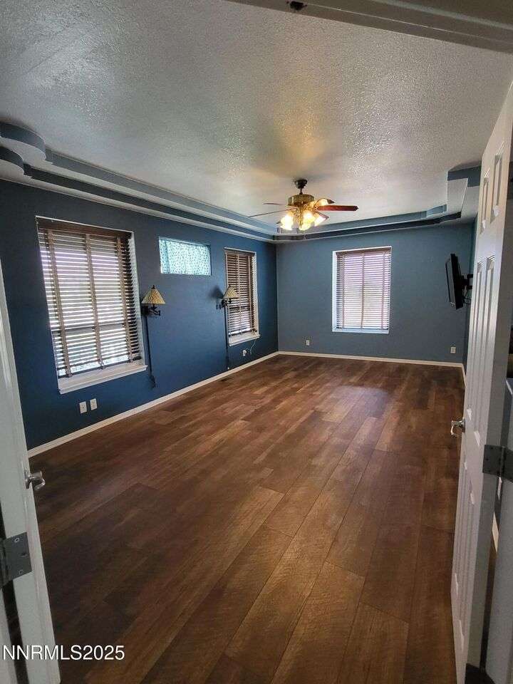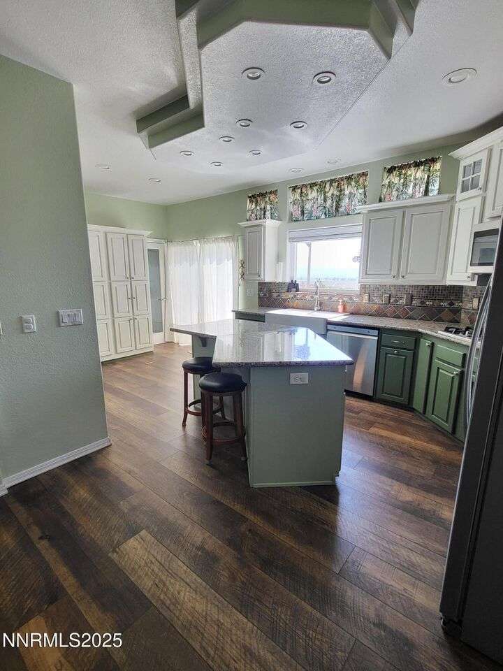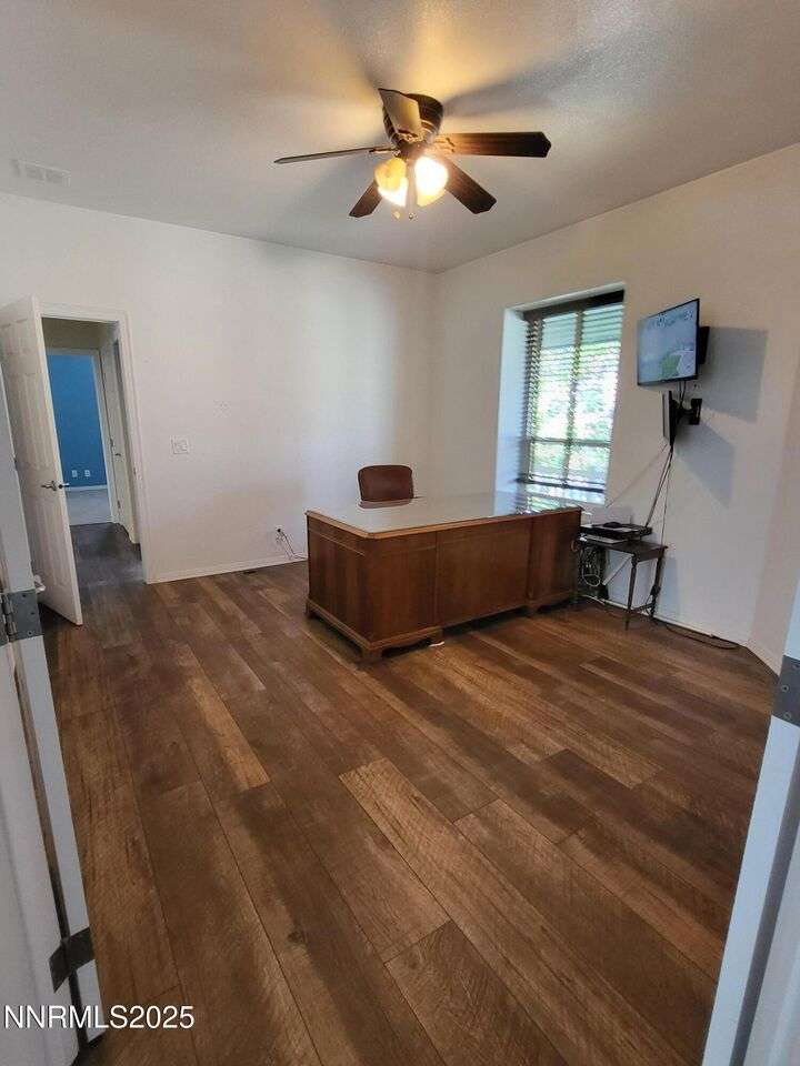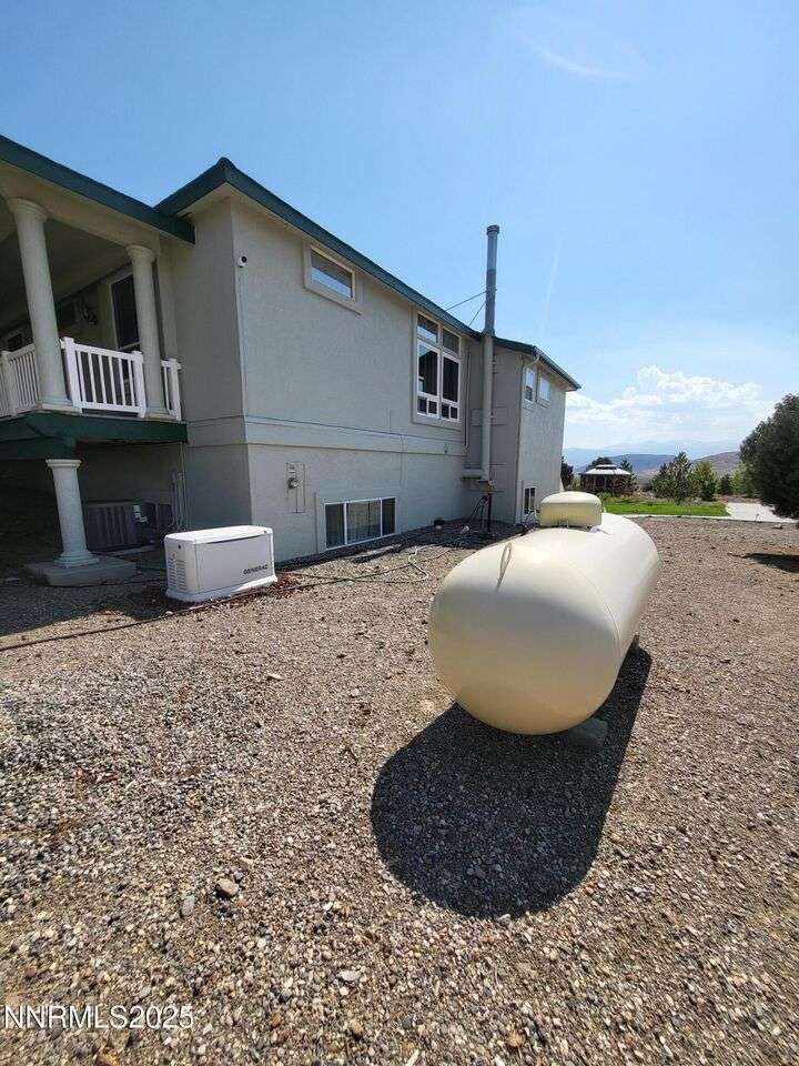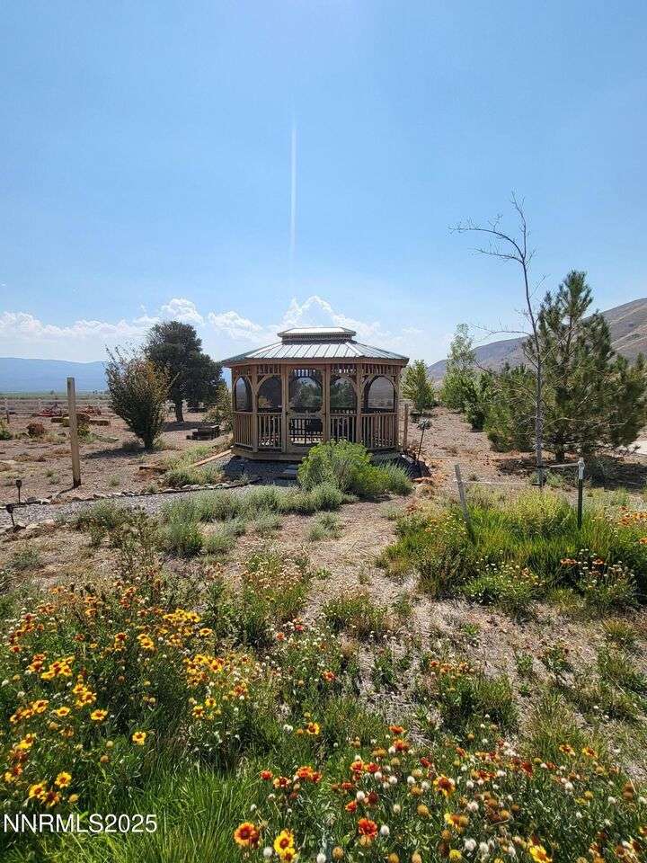 TRULY ONE OF A KIND — a must-see to fully appreciate and believe! Set on 30 private acres with rare 2-acre zoning, this remarkable property offers exceptional versatility, privacy, and value. Built atop a huge walk-out basement, this 5-bedroom home is as sturdy as it is spacious — with thoughtful details and beautiful views in every direction. Inside, you'll find an inviting floor plan featuring a primary suite with its own sitting area, private balcony, and a luxurious spa-style bathroom. The main level also includes an office, guest bedroom, and two generous living spaces — a cozy family room and a formal living room with a gas fireplace for warmth and ambiance. The updated kitchen shines with newer appliances, abundant cabinetry, and a massive walk-in pantry, ideal for the home chef. Fresh exterior paint complements the full stucco finish, giving the home timeless appeal. Outdoor living spaces abound — from the covered composite front deck with views of the orchard and Pinenut Mountains, to the expansive Nexan lockdry rear deck stretching the entire length of the home. The walk-out basement offers incredible flexibility, featuring three additional bedrooms, a craft room with sink, 1.5 baths, a safe room, and ample storage. Step outside to a covered patio and take in the panoramic vistas of the Sweetwater Mountains, green pastures, and endless blue skies. The acreage itself is a dream — immediate 4 acres fenced in vinyl surrounding the home with the balance mostly fenced, plus a shooting range, secondary gated access road, and two Conex storage containers. The property also includes 17 mature fruit trees and 5 cherry trees, offering your own private orchard. Additional highlights include a Generac generator with a dedicated 500-gallon propane tank, and an impressive 2,700 sq. ft. detached garage — featuring a 3-car bay plus a drive-through RV garage for all your vehicles, equipment, and toys. This property is truly one of a kind — offering space, strength, self-sufficiency, and unmatched potential. Don't miss the opportunity to make it yours!