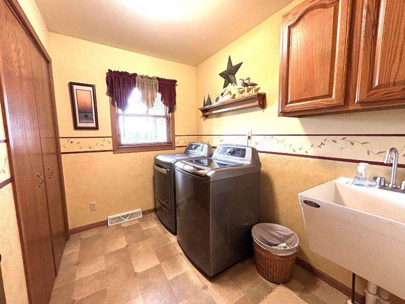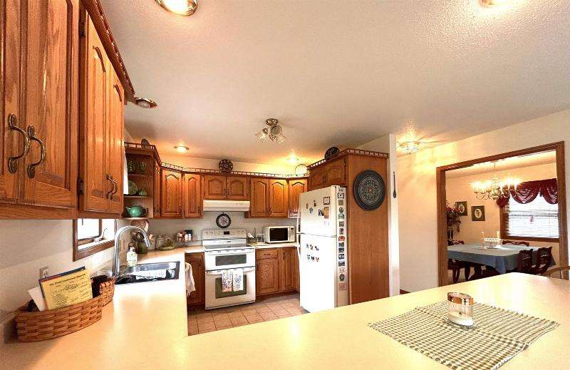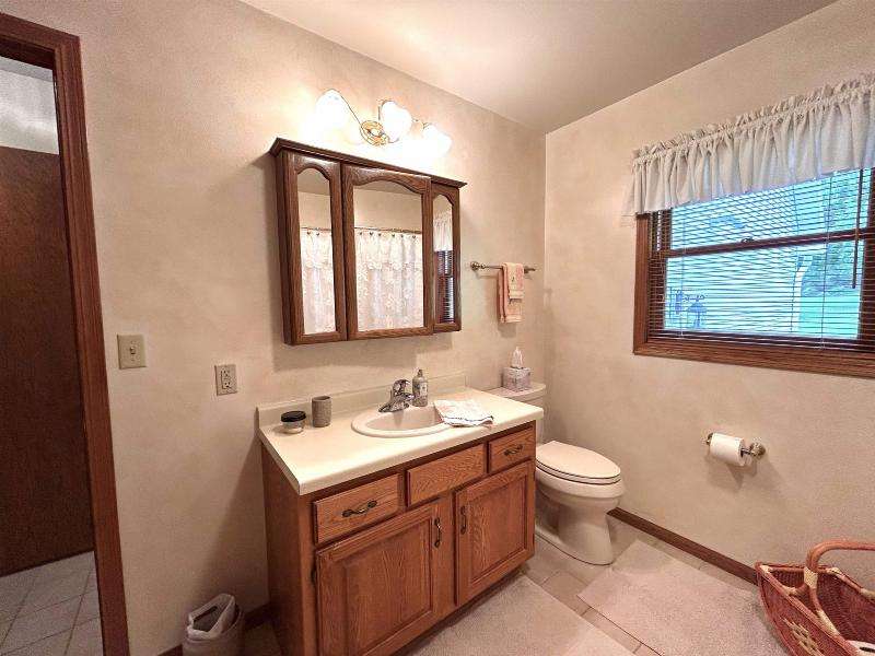 Tucked away, this well-maintained home offers a perfect blend of privacy and pride of ownership. Located on a quiet dead-end road, this property boasts over an acre of beautifully landscaped grounds, complete with blueberry bushes and blackberry plants. The kitchen and family room provide the ideal space for cooking & gathering. Upstairs features 3 generously sized bedrooms and a full bath, with an additional full bath on the other two levels, offering flexibility for everyone. The finished lower level is perfect for entertaining or creating a home office/gym. Enjoy the large deck and a stamped concrete patio, ideal for peaceful evenings. The bonus garage offers extra storage with a concrete pad for additional parking. This home offers a serene retreat in a welcoming neighborhood!