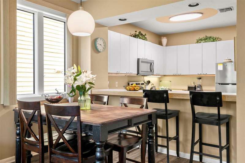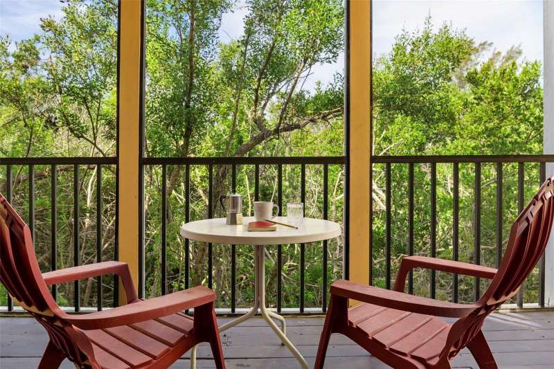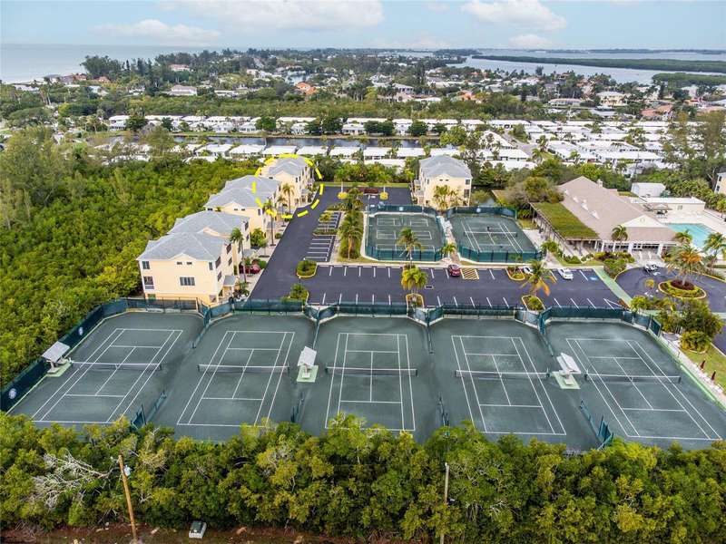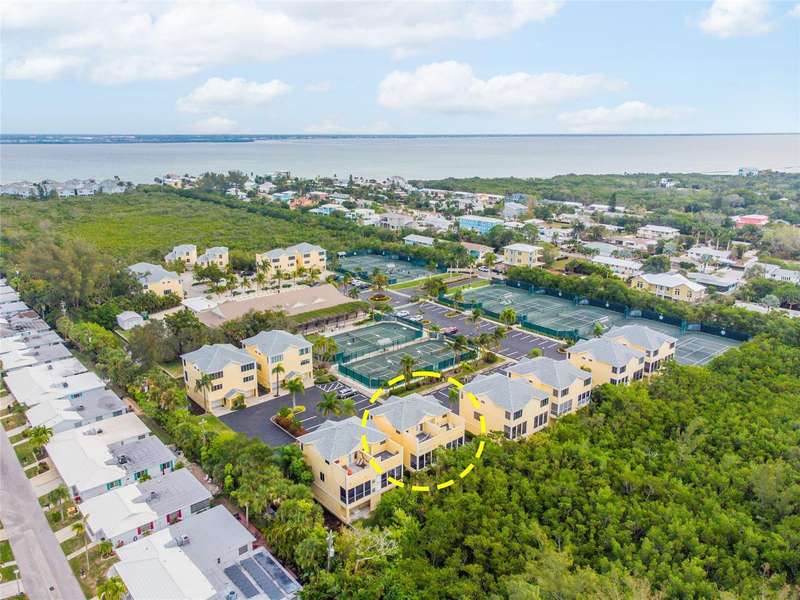 Welcome to your cozy island townhome at the north end of Longboat Key. Perfect as a fulltime residence, seasonal retreat, or investment property, this one-bedroom, two-bath unit fits your needs. This two-story property weathered three hurricanes in 2024, sustaining only minor flooding in the garage during Hurricane Helene and a cracked top-floor window during Hurricane Milton. The HOA will cover and replace the window. On the ground floor, enjoy your private parking garage and storage space. The main living area on the first floor features an open-concept living room and kitchen, ideal for relaxing or entertaining. Step out onto the screened balcony to enjoy the natural beauty of Florida or unwind with your morning coffee. This floor also has a full bathroom and a pull-out sofa for hosting guests. The second floor boasts a spacious master bedroom with a king-sized bed and two walk-in closets, filled with natural light from large windows. This level includes a second bathroom and a sun deck with an outdoor shower, offering peaceful views of a natural reserve. It’s the perfect spot to soak up the sun or enjoy a good book in a hammock. Short-term rentals with a 14-day minimum stay are allowed, adding investment potential. From July 2024 - July 2025, the home already has booked rental income booked totaling $45,0000. With some cosmetic upgrades, this could be even more! The unit is part of a top-notch tennis club that now includes two pickleball courts. You'll be close to the pool and the island’s beaches. Pet-friendly and welcoming, the community features a Junior Olympic-sized pool, a Tiki Bar, and a restaurant for a resort-like feel. Nature trails wind through the property, leading to a dock with stunning views of Sarasota Bay— perfect for launching your kayak to explore mangrove tunnels or paddle alongside manatees and dolphins. Whether you're into kayaking, tennis, pickleball, cycling, or jogging in nearby John Durante Community Park, this condo offers the perfect balance of luxury and leisure. Your island paradise is waiting—make it yours today!