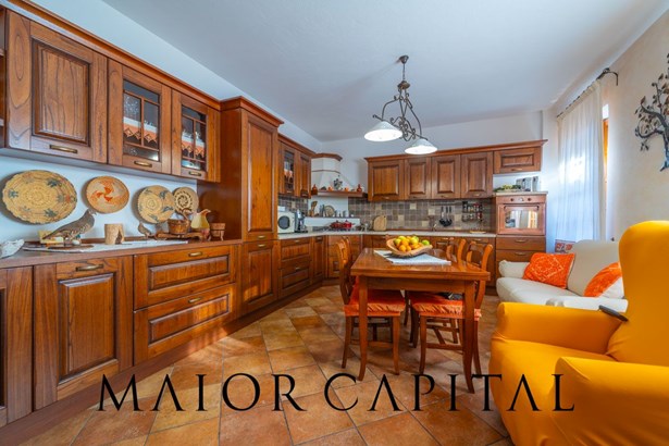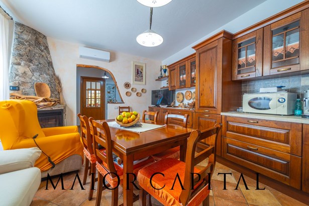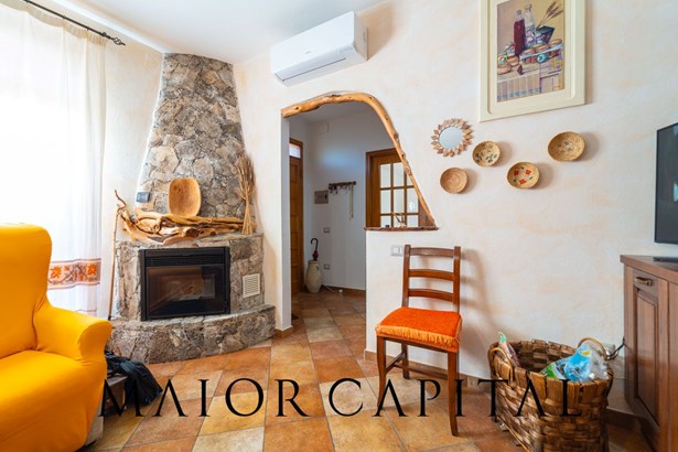 The eat-in kitchen is the meeting point of the house: spacious, well-organised and enhanced by a juniper fireplace, a touch of authentic Sardinian tradition that gives warmth and character to the room, making it unique and original.