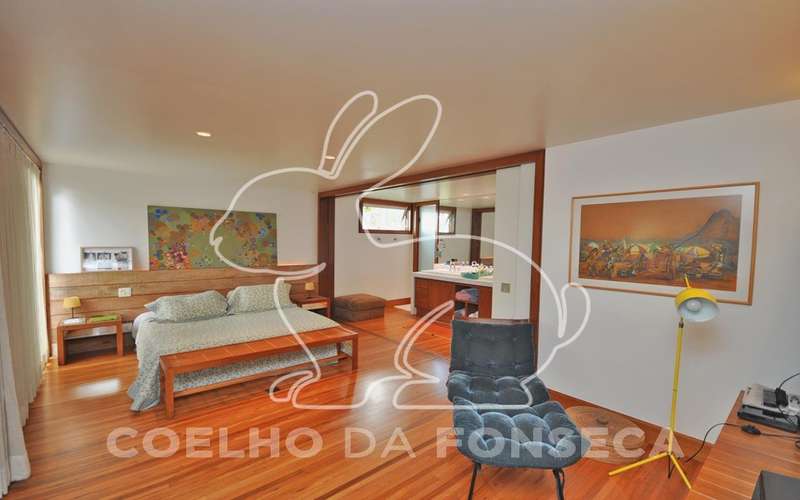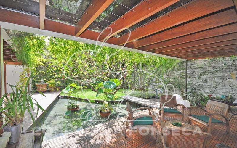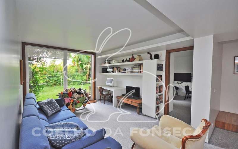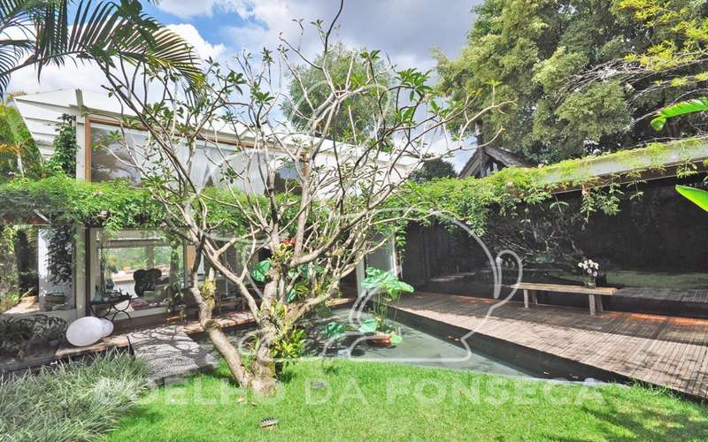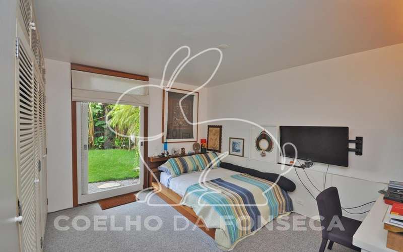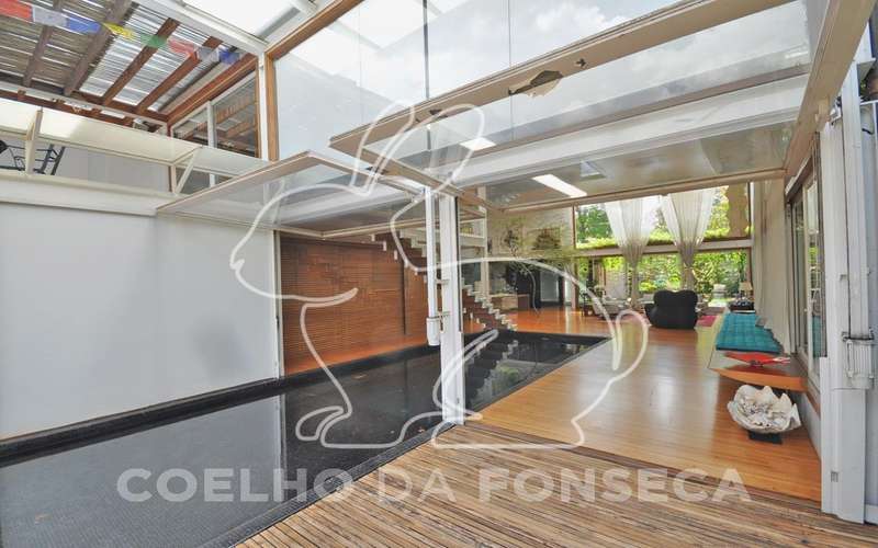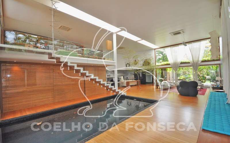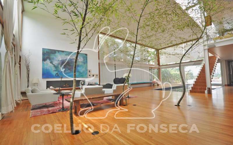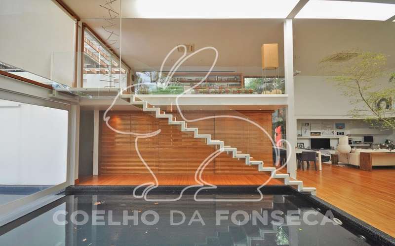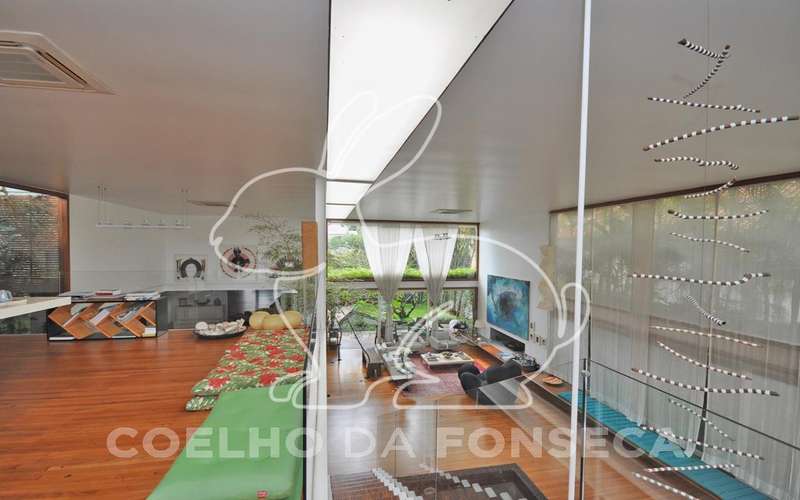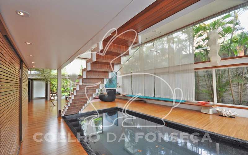 Casa moderna arrojada assinada por Bernardes Jacobsen, que já saiu em várias revistas de arquitetura. Living com pé direito duplo com raia que começa na sala de estar e vai até o jardim com banco de madeira em toda a extensão, cozinha americana em vidrotil com bancadas em corian, equipada, varanda, home theater, suíte master com sala íntima e closet, mezanino com escritório, varanda com deck de madeira e fonte. O subsolo possui duas suítes com closet, sala intima, fitness, dependência de empregada, lavanderia e depósito, lindo jardim. Vale a pena conhecer!