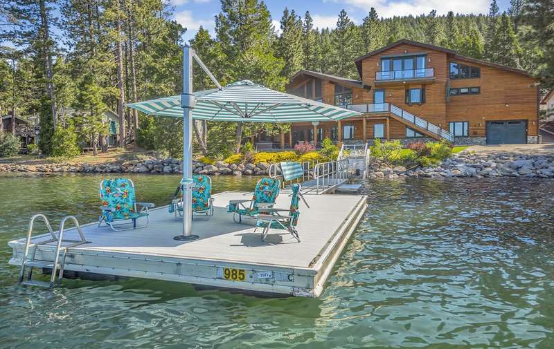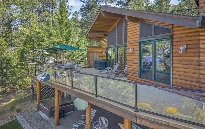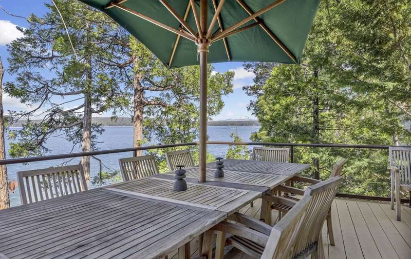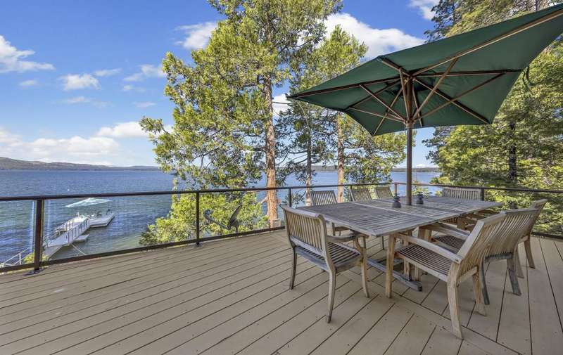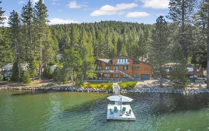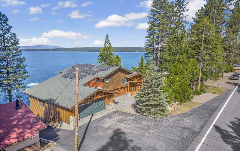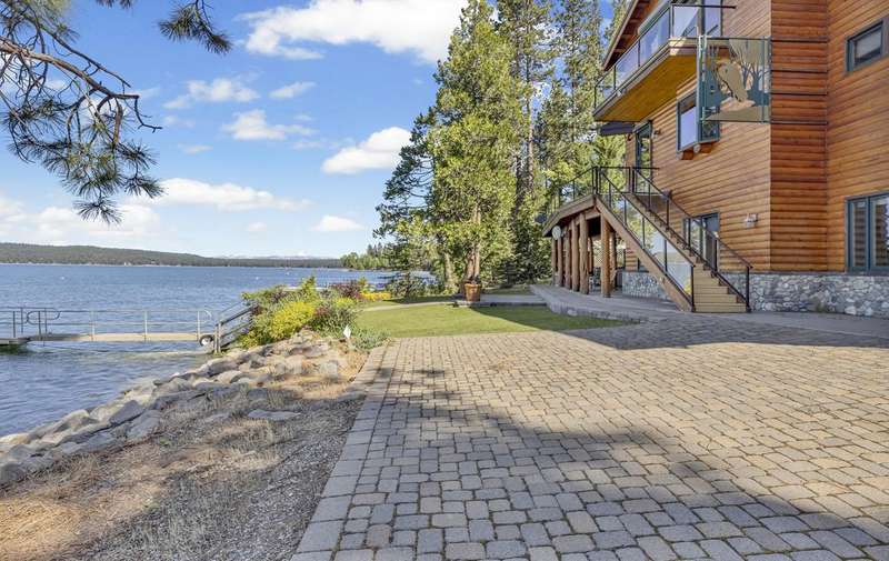 WHERE MOUNTAIN LUXURY MEETS LAKESIDE SERENITY! Experience your dream retreat along the shore of Lake Almanor! This custom log-sided home offers panoramic unobstructed views of Mt. Lassen and lake vistas. It is the perfect fusion of alpine elegance and modern amenities. Step inside the slate lined entry to an open concept living area featuring vaulted wood ceilings with exposed beams, a natural stone hearth, a custom carved log mantle and a wall of windows flooding the space with natural light. Solid 3/4" oak flooring adds warmth and character throughout the main living space. The gourmet kitchen boasts granite counters, shaker cabinetry with pullouts, stainless steel appliances and a chef worthy adjoining pantry with a massive countertop, pullouts and 160-bottle wine fridge, as well as additional freezer- an entertainers dream set up! The home office doubles as an additional sleeping area with a murphy bed, mini cabinet closet and drawers for any family member with mobility issues or just additional sleeping. A full bathroom is adjacent adding excellent convenience. The crows nest primary suite has a private balcony for gazing at the night sky, two built in closets with dressers and a large bonus walk-in closet. The primary bath has a heated floor, a jacuzzi tub, and built-in shower with steam bath. A stack washer/dryer is conveniently located outside the entry door. A huge bonus room is also adjacent to the primary bedroom hidden by a door which would be a great craft, sewing or a kids sleeping loft. Plenty of storage cabinets as well along the wall. The entire lower third level, lakeside, is truly for guests, a large family, or a shared family compound. It has a kitchenette, gas fireplace, washer and dryer, and multi-room bathroom combo and two bedroom suites, each with an additional sleeping room. Easily can sleep 8. It has radiant heated tile floors perfect for wet feet coming from the lake. The mechanical room doubles as a game room with foosball and air hockey for snowy days. Step out the living room doors to a hot tub and large "heavenly green" no maintenance lawn. Pavers lead to the custom staircase with a local artisan designed gate to a dock with a built- in umbrella system and two buoys. Upper decks have glass railings for unobstructed views and a large teak dining table and plumbed gas barbecue. Boaters will love the 26 deep upper garage with built-in cabinetry and the deep lower-level garage which offers additional parking or storage of water or snow toys. Additional custom features include Solar panels, kinetic water softener, backup generator, surround sound, and smart home management. Meticulously maintained by its original owner-designer, this exceptional lakefront home is mountain living at its finest. Property video and virtual walk thru are available on request!