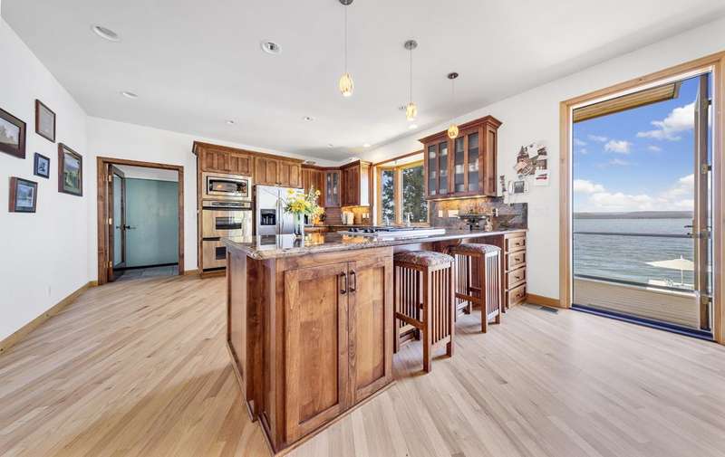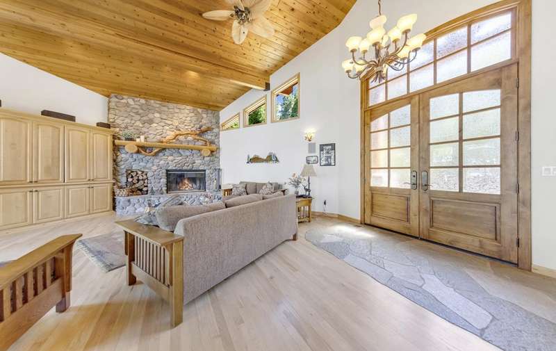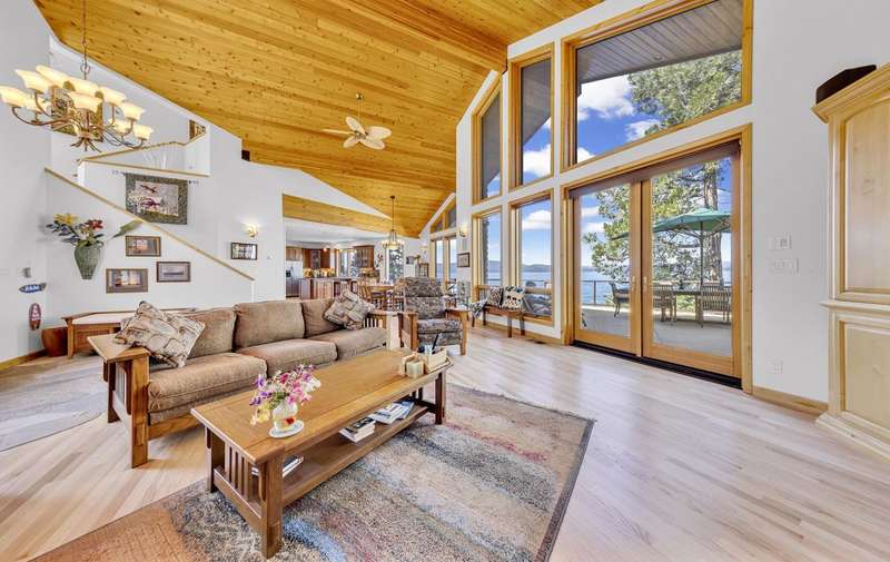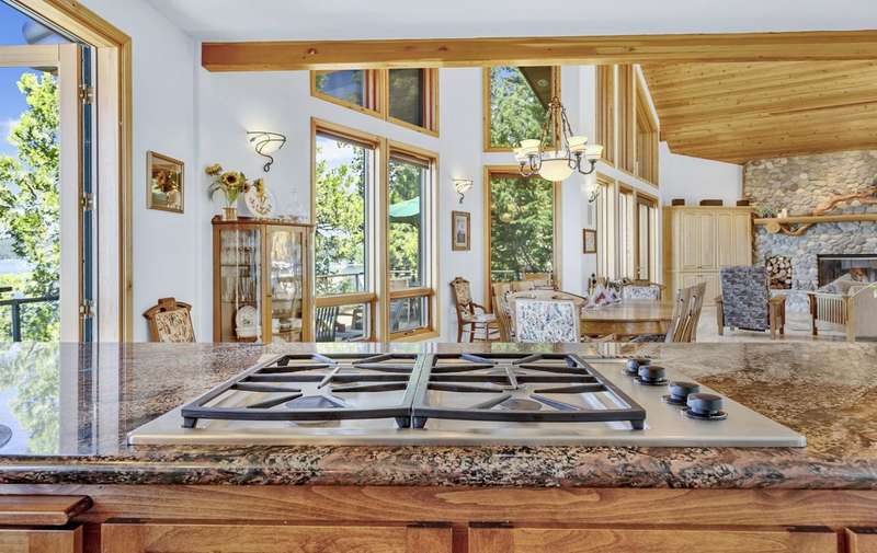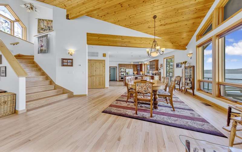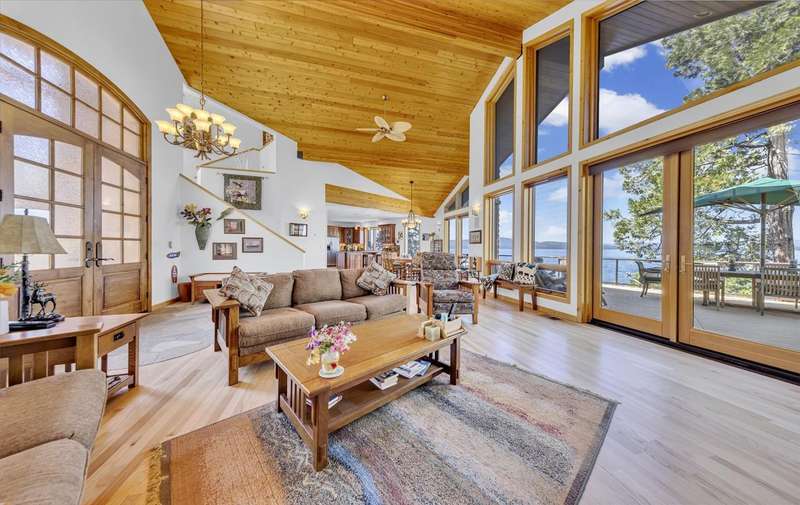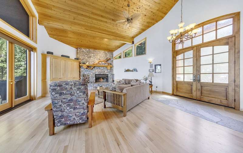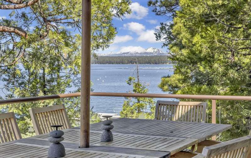 WHERE MOUNTAIN LUXURY MEETS LAKESIDE SERENITY! Experience your dream retreat along the shore of Lake Almanor! This custom log-sided home offers panoramic unobstructed views of Mt. Lassen and lake vistas. It is the perfect fusion of alpine elegance and modern amenities. Step inside the slate lined entry to an open concept living area featuring vaulted wood ceilings with exposed beams, a natural stone hearth, a custom carved log mantle and a wall of windows flooding the space with natural light. Solid 3/4" oak flooring adds warmth and character throughout the main living space. The gourmet kitchen boasts granite counters, shaker cabinetry with pullouts, stainless steel appliances and a chef worthy adjoining pantry with a massive countertop, pullouts and 160-bottle wine fridge, as well as additional freezer- an entertainers dream set up! The home office doubles as an additional sleeping area with a murphy bed, mini cabinet closet and drawers for any family member with mobility issues or just additional sleeping. A full bathroom is adjacent adding excellent convenience. The crows nest primary suite has a private balcony for gazing at the night sky, two built in closets with dressers and a large bonus walk-in closet. The primary bath has a heated floor, a jacuzzi tub, and built-in shower with steam bath. A stack washer/dryer is conveniently located outside the entry door. A huge bonus room is also adjacent to the primary bedroom hidden by a door which would be a great craft, sewing or a kids sleeping loft. Plenty of storage cabinets as well along the wall. The entire lower third level, lakeside, is truly for guests, a large family, or a shared family compound. It has a kitchenette, gas fireplace, washer and dryer, and multi-room bathroom combo and two bedroom suites, each with an additional sleeping room. Easily can sleep 8. It has radiant heated tile floors perfect for wet feet coming from the lake. The mechanical room doubles as a game room with foosball and air hockey for snowy days. Step out the living room doors to a hot tub and large "heavenly green" no maintenance lawn. Pavers lead to the custom staircase with a local artisan designed gate to a dock with a built- in umbrella system and two buoys. Upper decks have glass railings for unobstructed views and a large teak dining table and plumbed gas barbecue. Boaters will love the 26 deep upper garage with built-in cabinetry and the deep lower-level garage which offers additional parking or storage of water or snow toys. Additional custom features include Solar panels, kinetic water softener, backup generator, surround sound, and smart home management. Meticulously maintained by its original owner-designer, this exceptional lakefront home is mountain living at its finest. Property video and virtual walk thru are available on request!