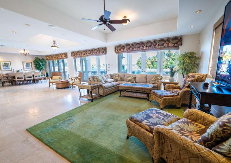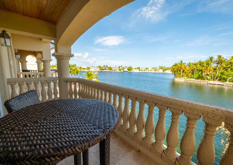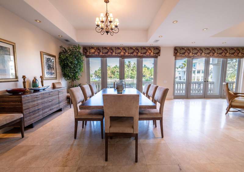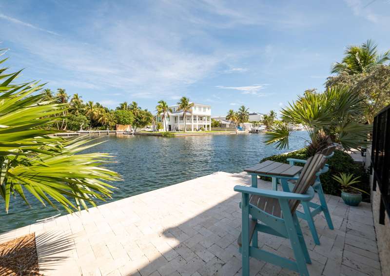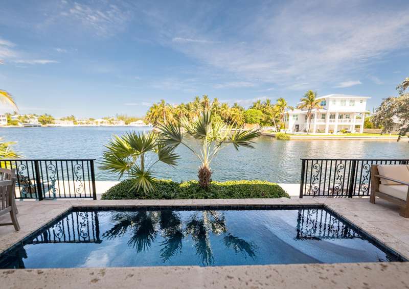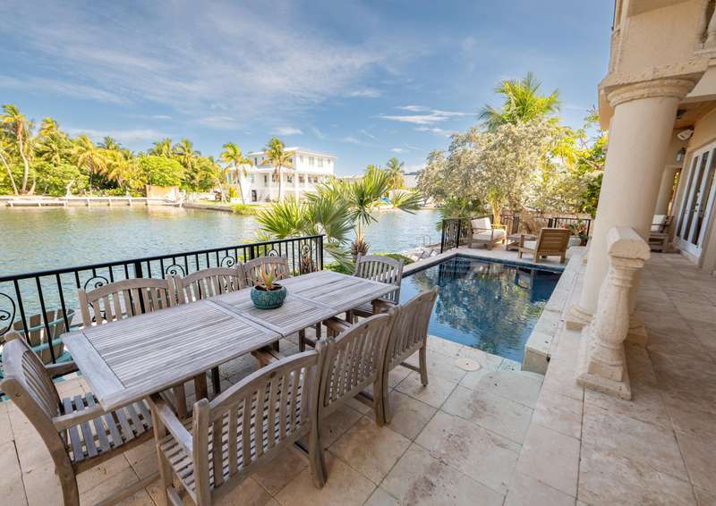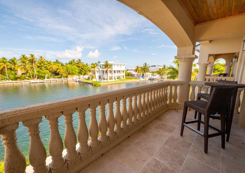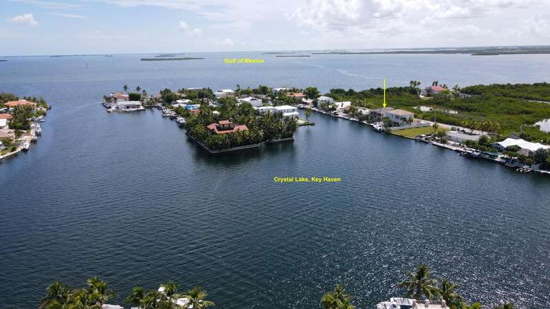 Enjoy sweeping water views from this exceptional Key Haven home overlooking Cypress Lake. With 4 spacious bedrooms and 4.5 baths, the residence blends comfort and luxury in every detail. Built in 2007 with superior materials and craftsmanship, highlights include a standing seam copper roof, Saturnia stone, and hickory wood floors throughout.From the grand foyer, water views unfold throughout the home. A graceful staircase leads to a second living area and three ensuite bedrooms, each with private balconies. The primary suite can be found on either level, offering flexibility in layout.The kitchen features custom cabinetry, granite counters, stainless steel appliances, wine cooler, icemaker, and both a breakfast room and formal dining area.Relax by the heated pool and covered patio or take in the waterfront from nearly every room. Additional features include tall coffered ceilings, impact-resistant windows, a protected seawall, and strong curb appeal. Designed with care and built to last, this is one of Key Haven's finest offerings & almost feels like open water living.