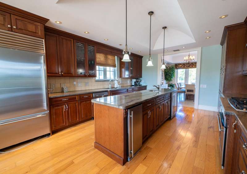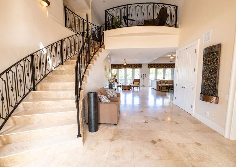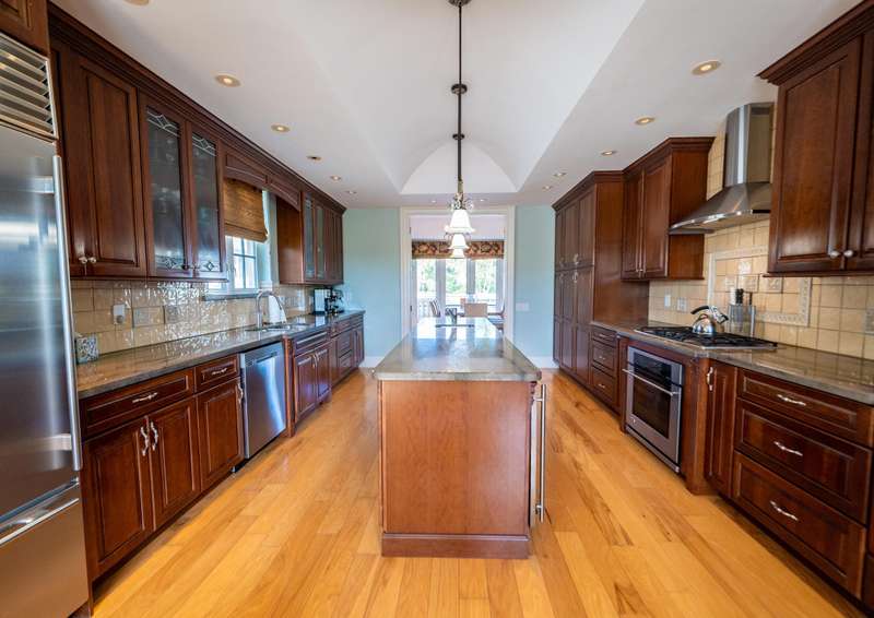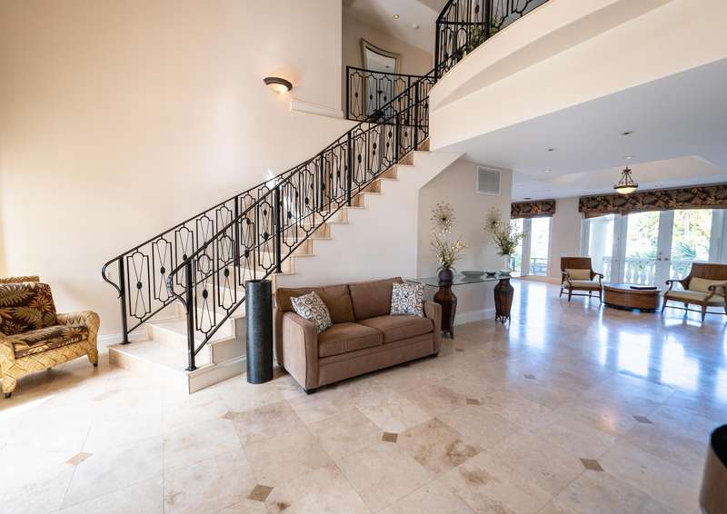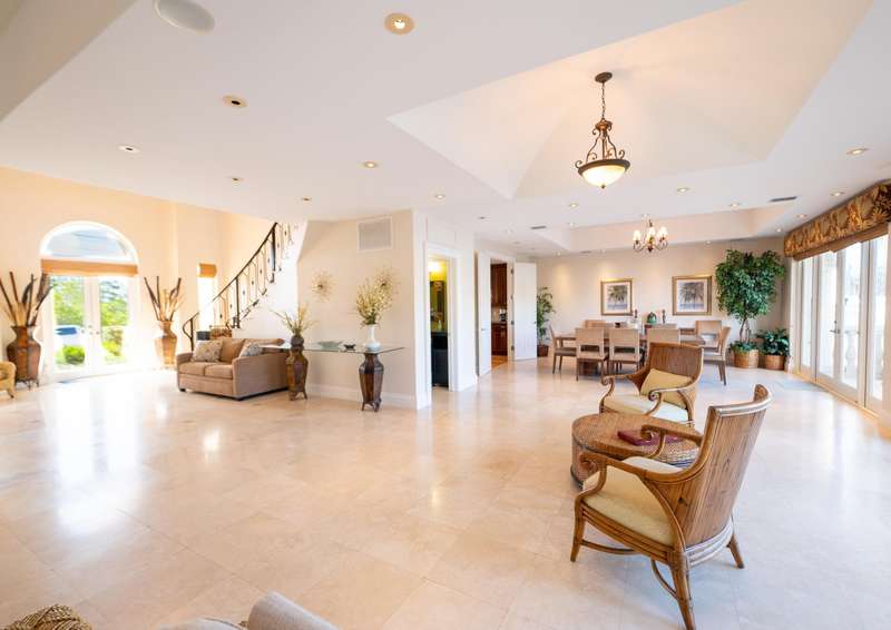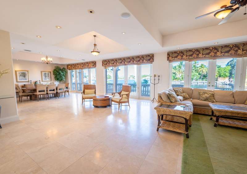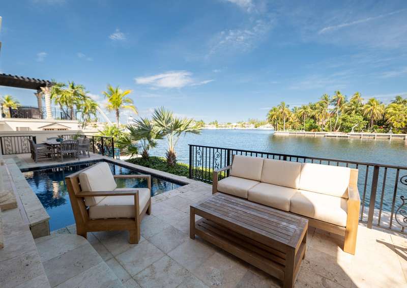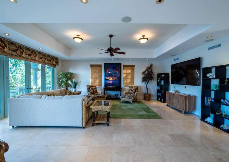Enjoy sweeping water views from this exceptional Key Haven home overlooking Cypress Lake. With 4 spacious bedrooms and 4.5 baths, the residence blends comfort and luxury in every detail. Built in 2007 with superior materials and craftsmanship, highlights include a standing seam copper roof, Saturnia stone, and hickory wood floors throughout.From the grand foyer, water views unfold throughout the home. A graceful staircase leads to a second living area and three ensuite bedrooms, each with private balconies. The primary suite can be found on either level, offering flexibility in layout.The kitchen features custom cabinetry, granite counters, stainless steel appliances, wine cooler, icemaker, and both a breakfast room and formal dining area.Relax by the heated pool and covered patio or take in the waterfront from nearly every room. Additional features include tall coffered ceilings, impact-resistant windows, a protected seawall, and strong curb appeal. Designed with care and built to last, this is one of Key Haven's finest offerings & almost feels like open water living.