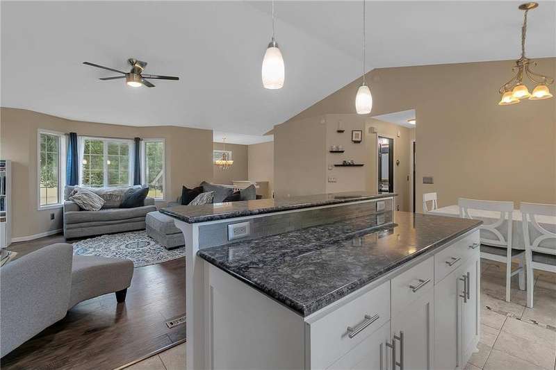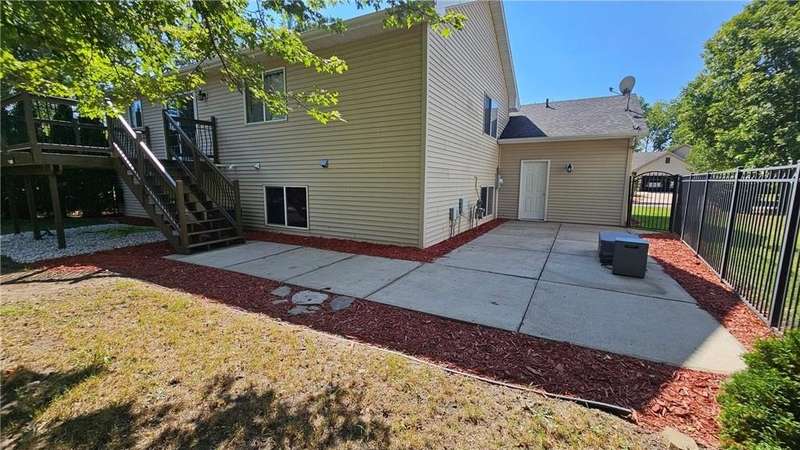 Gorgeous South St. Cloud home with fenced in back yard on a large corner lot! Step into a huge foyer with closet and tile floors, and head up to the open concept floor plan with spacious living dining and kitchen, all with vaulted ceilings! Large center island with granite counters and stainless appliances. Big dining area that steps out on to the deck overlooking the expansive back yard! Huge livingroom flooded with natural light! 2 spacious upper level bedrooms including the HUGE primary with walk thru bath, separate vanity area. Walk in closets in every bedroom! The lower level features the family room with gas fireplace and bar! Perfect for hosting the big game! 2 more large bedrooms in the lower level! You will love the private back yard, surrounded by greenery, and shaded with mature trees! Large 3 stall insulated garage as well! This one will not last