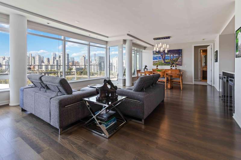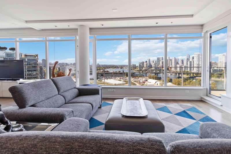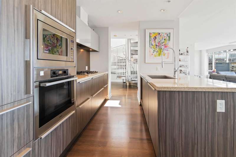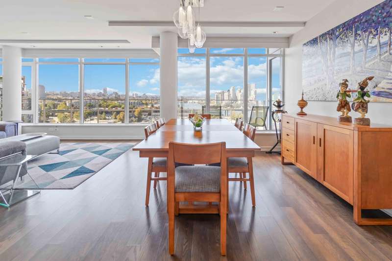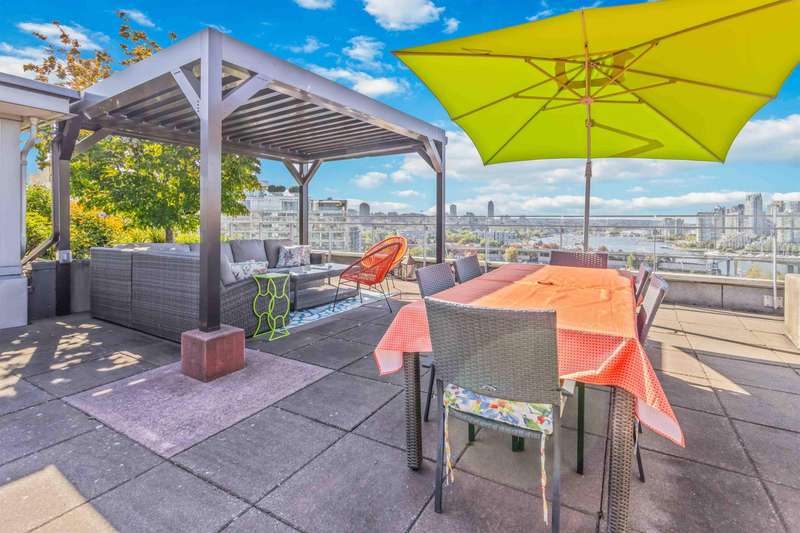Imagine coming home to a 1,900 sq ft open-plan penthouse w/ unobstructed views of False Creek, downtown & mtns from every room! Rare 1 level 3 bdrm + den, 2.5-bath condo w/ entertainment-sized living & dining areas, gourmet kitchen w/ Sub-Zero fridge, walk-in pantry + Murphy bed for guests + a private rooftop oasis w/ an open-air 12'x1 O' pergola, lush gardens & tranquil lounge areas. Radiant heating & cooling, 2 pkg stalls & oversized storage lkr well located in Olympic Village @The Brook, a LEED Gold certified bldg w/ concierge, gym + access to the Gold Medal Club w/ add'I fitness facilities + pool. Enjoy the best of Vancouver steps from the seawall, parks, Canada Line, AquaBus, Science World, dining, breweries & shops in the vibrant ever expanding OV community.