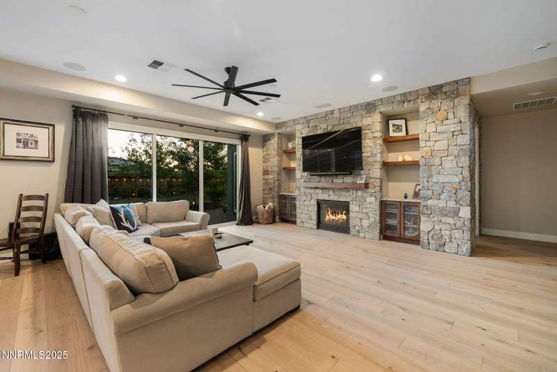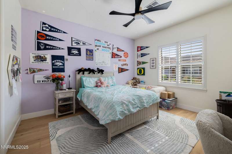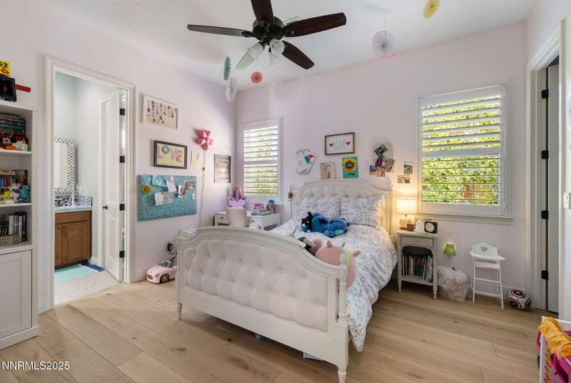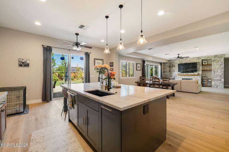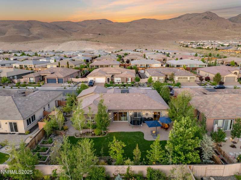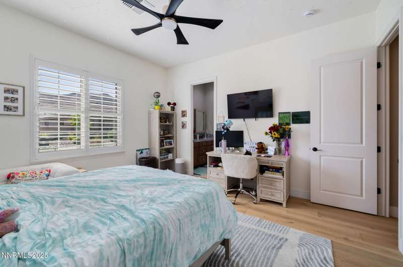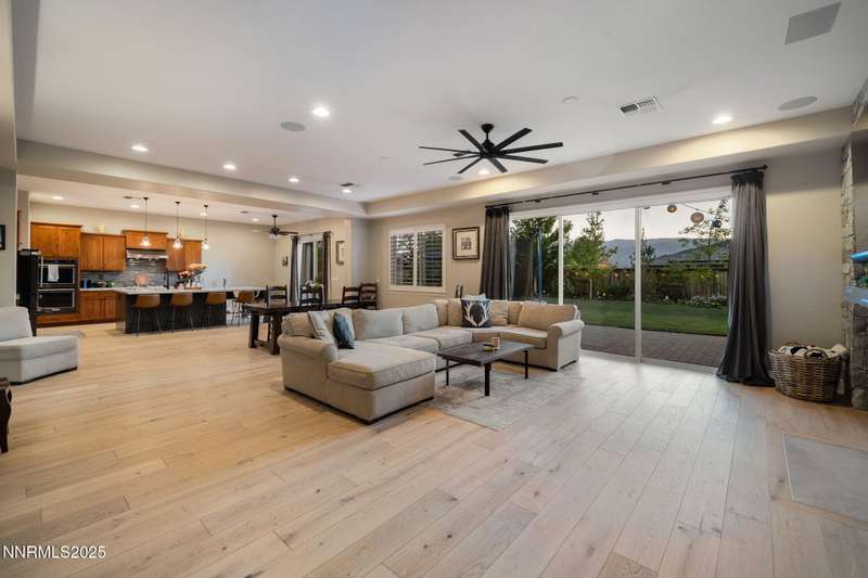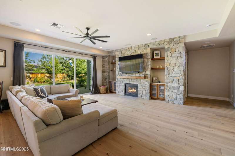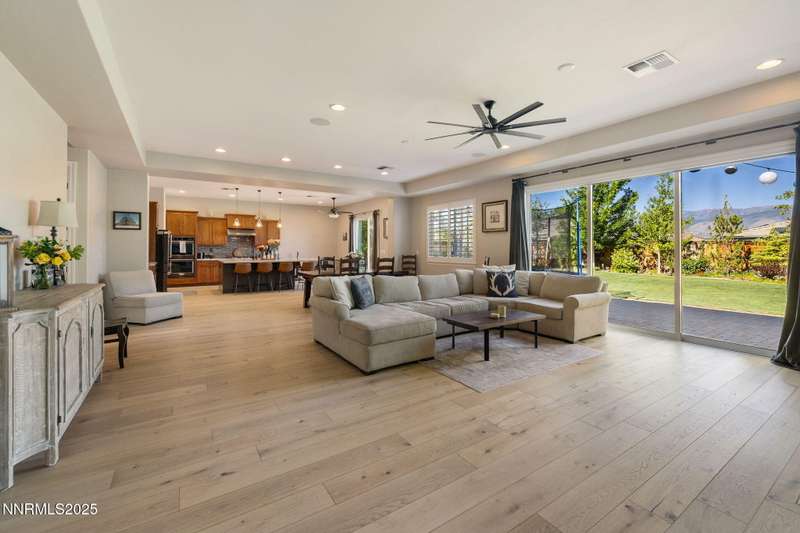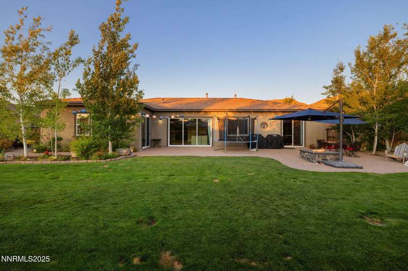 Welcome to this bright, open home in Saddle Ridge, a 24-hour gated community within the sought after Damonte Ranch development—offering both security and resort-style living. Natural light pours through wood floors into an open-concept great room, dining area, and kitchen that is perfect for daily family routines and casual gatherings. The private primary suite features a walk-in closet and serene en-suite bath, while a separate guest room and full bath add flexibility. Two additional bedrooms share a Jack and Jill bathroom, offering privacy and versatility. Step outside to your lush and oversized backyard, complete with built-in fire pit— an ideal backdrop for year-round outdoor enjoyment and a safe and fun haven for kids to play and grow. As a resident, enjoy exclusive access to a sparkling community pool, tennis and basketball courts, playgrounds, and scenic walking trails all just steps from your door. With a smart layout and a kid-friendly community, this home is ready to grow with your family.