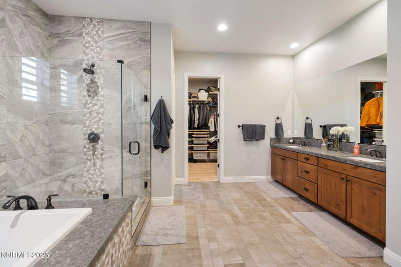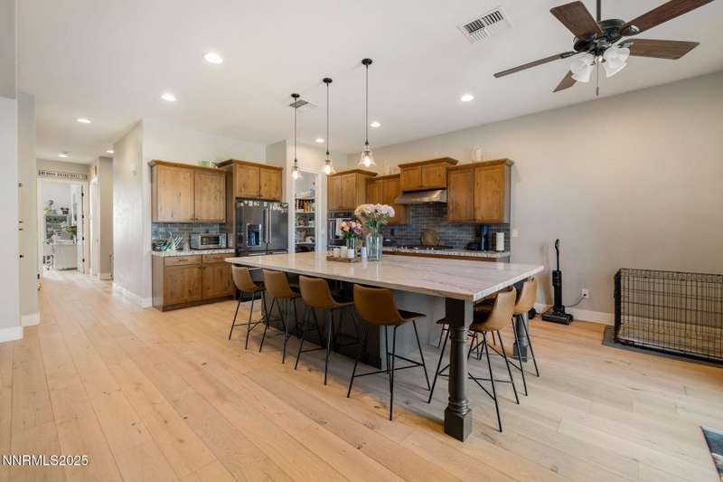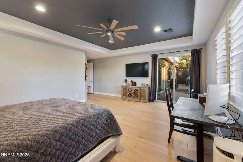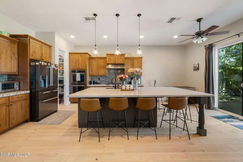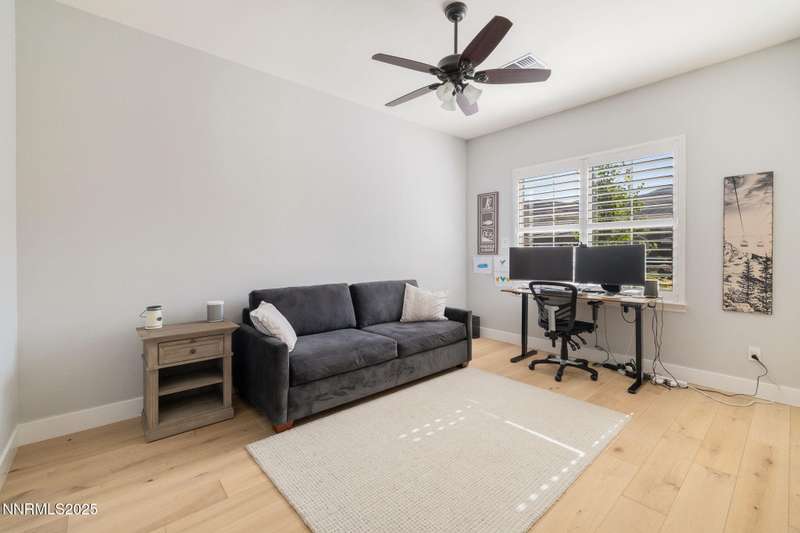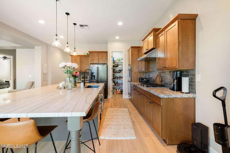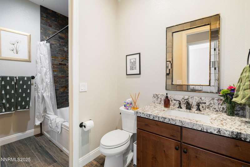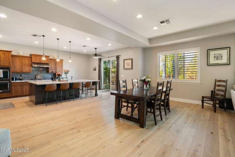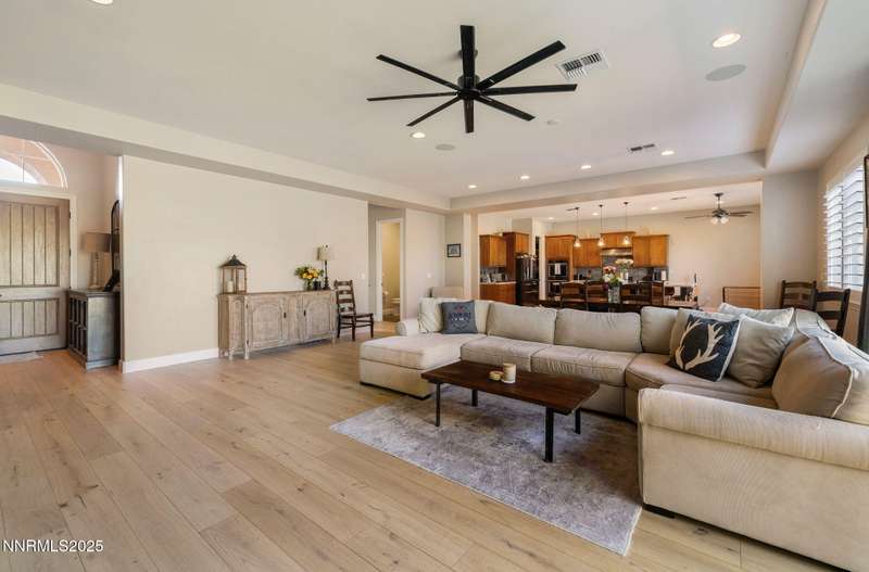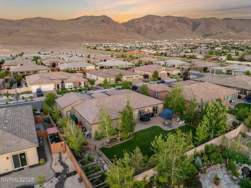 Welcome to this bright, open home in Saddle Ridge, a 24-hour gated community within the sought after Damonte Ranch development—offering both security and resort-style living. Natural light pours through wood floors into an open-concept great room, dining area, and kitchen that is perfect for daily family routines and casual gatherings. The private primary suite features a walk-in closet and serene en-suite bath, while a separate guest room and full bath add flexibility. Two additional bedrooms share a Jack and Jill bathroom, offering privacy and versatility. Step outside to your lush and oversized backyard, complete with built-in fire pit— an ideal backdrop for year-round outdoor enjoyment and a safe and fun haven for kids to play and grow. As a resident, enjoy exclusive access to a sparkling community pool, tennis and basketball courts, playgrounds, and scenic walking trails all just steps from your door. With a smart layout and a kid-friendly community, this home is ready to grow with your family.