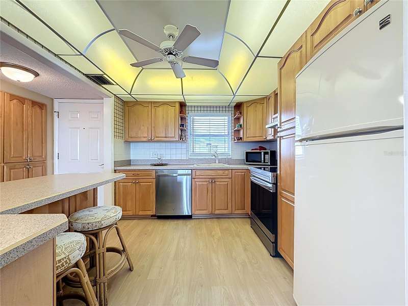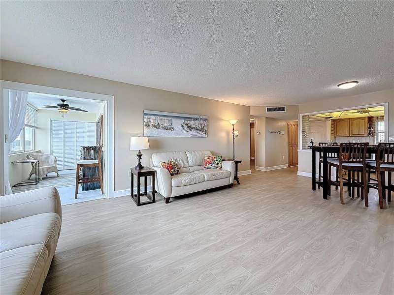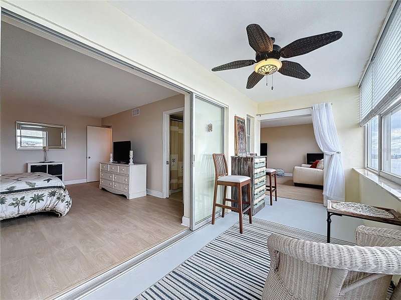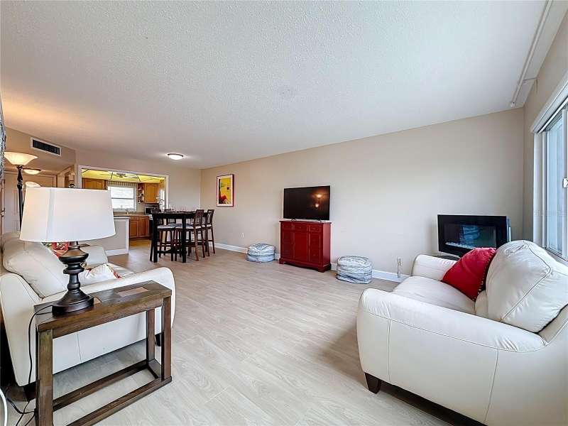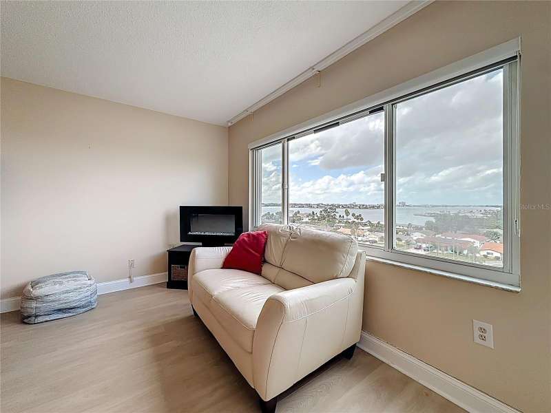 Enjoy spectacular water views from this 8th-floor 2-bedroom, 2-bath furnished waterfront condo in the highly sought-after 55+ gated community of Sea Towers! This spacious 1,040 sq. ft. residence features an open kitchen layout and luxury vinyl plank flooring throughout. Relax and take in the views of the Intracoastal from your living area or Florida room. Enjoy entertaining and cooking in your kitchen that offers water views from both directions, has a breakfast bar and is open to the living and dining areas. The primary bedroom has an ensuite bathroom with a tub and shower and a walk-in closet. An added bonus is the Florida room that is just off of the living area and the primary bedroom. Enjoy great waterviews from the Florida room. The 2nd bedroom is nice and spacious and has a full bath attached to it. There is also a utility room that offers great space for storing larger items. This unit comes with a storage unit that is located on the same floor of the condo. There is a laundry room that is also located on the same floor as the condo. You have one covered parking space that is great because you will only have another car on only one side of your car, the other saide is just a wall, since the space is at the end of the covered parking area. Sea Towers offers resort-style living with outstanding amenities, including two heated pools, a soon to be renovated clubhouse, fishing pier, full-size gym, billiards room, entertainment area, tennis and pickleball courts, shuffleboard, walking trail, and a covered grilling area. The community also has a full-time on-site manager and an exciting new marina is anticipated to be coming soon. Ideally located just minutes from beautiful Madeira Beach, shopping, dining, and entertainment — this vibrant waterfront community offers the best of Florida living!