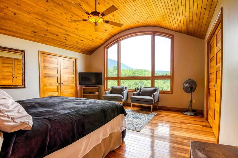 Welcome to your dream retreat on 5 private acres of tranquility, in close proximity to 800,000 acres of protected national forest. The modern wrap-around deck with a covered fieldstone fireplace offers breathtaking views of Mount Washington and the Presidential Range, ideal for morning coffee or evening gatherings. 7 Inside, the grand foyer opens to a sun-drenched chef's kitchen, seamlessly connecting to the living and dining areas, perfect for both relaxed family moments and elegant entertaining. The primary bedroom is a sanctuary, featuring mountain views framed by a custom glass arched window, an oversized walk-in closet, and a luxurious ensuite with double sinks, a jacuzzi tub, and a separate tile-and-glass shower. Upstairs, two additional bedrooms, each with its own ensuite, ensure comfort for all. The lower level boasts a game room with a wet bar, perfect for entertaining. A spacious 3-car garage attached to the main house, plus an additional 3-car garage beneath the guest house, provides ample storage. Guests will enjoy the private studio unit. This home is considered one of the finest in Gorham, NH, blending traditional timber frame construction with modern luxury. Located near Wildcat Mountain and Tuckerman Ravine, it's an ideal retreat for winter sports enthusiasts. A must-see property!