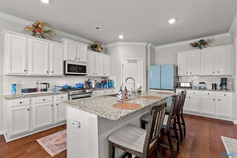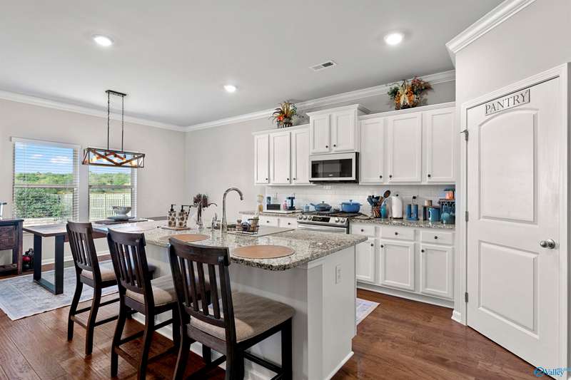 You'll love your luxury waterfall entry & mountain views in the highly desirable hampton cove area. Freshly painted & new carpet & loaded w/ upgrades 1 story gorgeous 4 bedrooms 2.5 bath w/ 9 ft ceilings & side entry 2 car garage + privacy fence. Kitchen opens to great room & stacked stone fireplace, granite countertop + lg kitchen island, recessed can lights, tile backsplash & appliance package just 1 years old. 5 in. hand scraped hardwood flooring in main areas, crown moulding, tankless hot water heater, whole home filtration system 7 softening system, irrigation system & covered back patio. Hampton Cove schools! Near Robert Trent Jones Golf course nature trails & Haynes Nature Preserve.