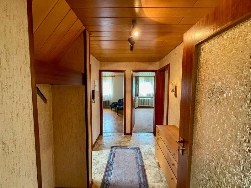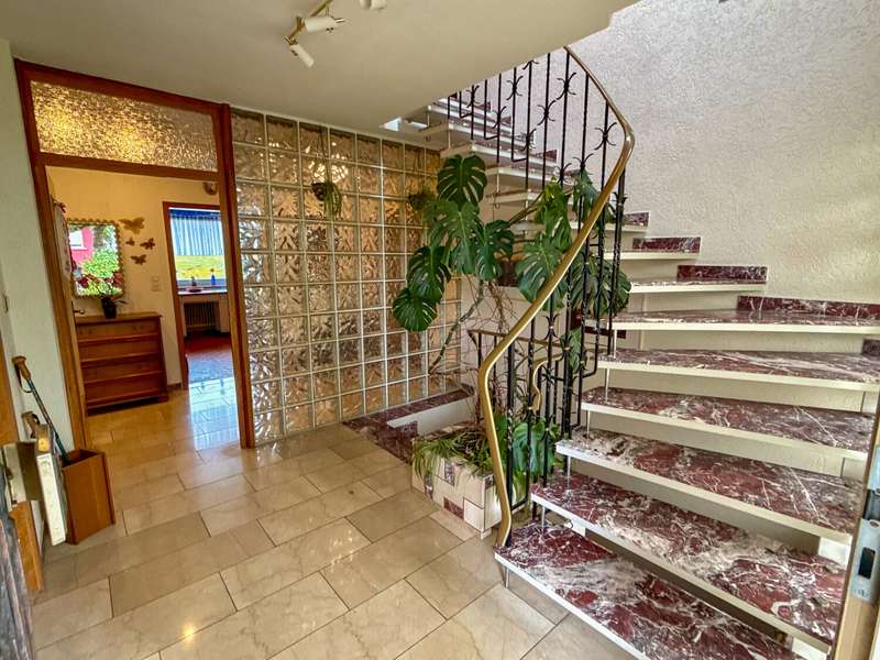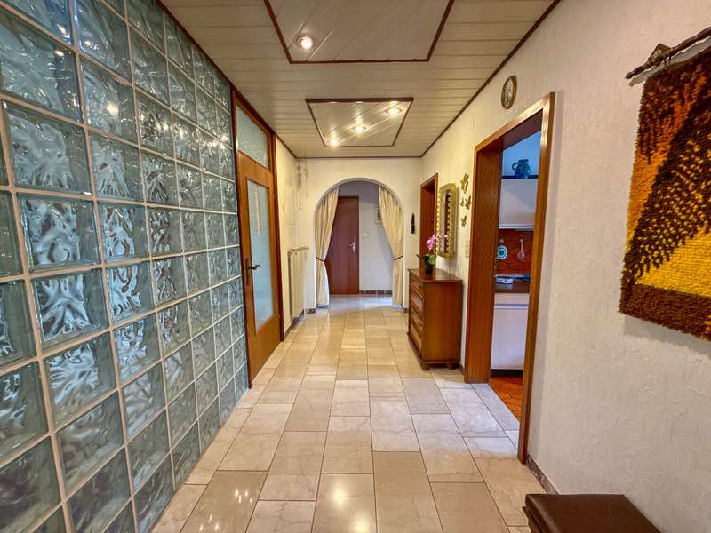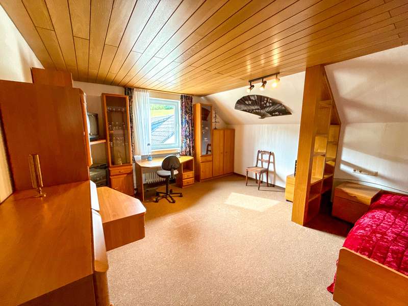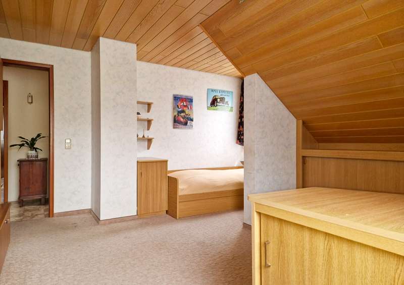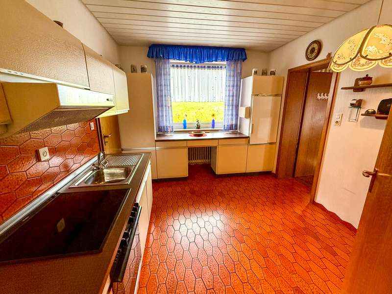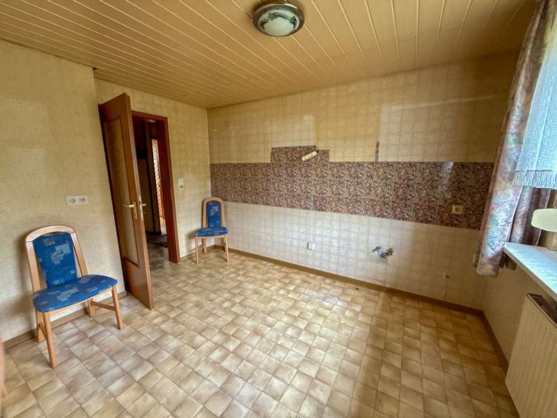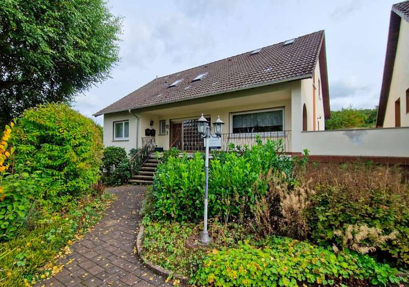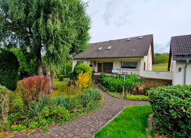 This detached country house from 1974/75 impresses with a living and usable area of approx. 400 m² and a generous plot of approx. 1,773 m². The property has been family-owned since it was built and has been continuously extended. The attic was extended in 1991/92 and the addition of a massive double garage with underground access to the main house was completed in 2002. The property offers a living space of approx. 103.7 m² on the first floor, consisting of a living room with a fireplace, an adjoining dining room, a bedroom, a further room that would be ideal as a children's room or study, a kitchen with a pantry, a bathroom and a spacious hallway. The attic apartment with approx. 80.2 m² was converted in 1991/92 and offers a wide range of possible uses. In addition to the option of being used as a children's or guest floor, it is also ideal for renting out separately as an independent apartment. This offers potential buyers the possibility of additional income or flexible use for several generations. The basement covers approx. 136.7 m² and offers storage space, an office, a workshop with a separate outside cellar and other functional rooms. The double garage has approx. 70 m² per floor and is equipped with two electric sectional doors. The top floor of the garage is still under construction and opens up additional expansion potential, for example for a studio, an office or a spacious hobby area. The direct, weather-protected access to the main house underlines the practical concept. The well-maintained design of the plot with mature structures, shady trees, a romantic natural pond and a wooden garden shed with integrated greenhouse, which was built in 2015, is impressive. The highlight of the property is the quiet and secluded covered and sheltered terrace behind the outbuilding, which offers a lot of privacy and can also be used in the evening or in bad weather, so that relaxing hours outdoors are possible at any time. From the highest point of the garden, you can also enjoy a wonderful view over the property and the surrounding countryside. The technical equipment includes oil central heating, plastic windows with blinds and well-kept original details from the construction period, which are still fully functional today. This country house is ideal for buyers looking for spacious living in a natural location with good connections. The option of renting out the top floor as a separate apartment makes the property attractive for both owner-occupiers and investors. The combination of solid construction, extensions in the 1990s and 2000s and an idyllic plot of land make this property a unique offer in the Bad Hersfeld region.