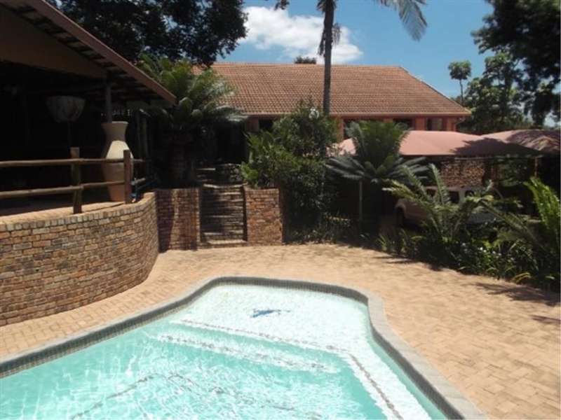 Immaculate family home offering ample accommodation with a magnificent view all set in a manicured garden situated on a corner stand with two separate entrances. This spectacular home offers the following: 5 bedrooms all en-suite with air conditioners, separate family and dining rooms with concertina doors opening on to the patio study room next to the main entrance hall, spacious kitchen, scullery and a large pantry, entertainment area with lapa next to the pool. There is a 3 bedroom house with open plan kitchen / dining room and a separate lounge which is rented out. Other extra accommodation are as follows: 2 x 1 bedroom guestrooms both en-suite and 2 x 1 bedroom flats