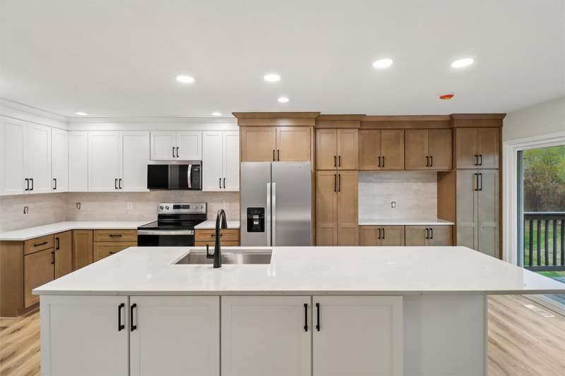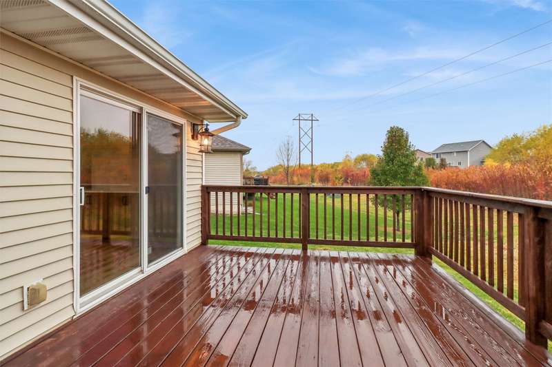 Welcome to this newly remodeled open concept ranch home in NE Ankeny! The cozy fireplace will draw you right in to the main living area and you'll feel right at home. The kitchen is just stunning, including features like wall to ceiling custom cupboards with soft close drawers, granite island and countertops, a chefs sink with removable cover, bright white subway tile backsplash, and NEW stainless steel appliances. Ample room for a growing family or hosting holiday gatherings with 5 total bedrooms! Three bedrooms upstairs & two located in the finished basement along with a spacious, dual vanity bathroom. Dog-eared wood fencing encloses your new backyard adorned with a deck off the sliding door and a perfect size maple tree for Summer shade & Fall beauty. The finishing touch that sets this home apart are the details on the front exterior. With rich chocolate-colored board and batten siding on the peaks, along with fresh bright paint in the garage, this home is move in ready!