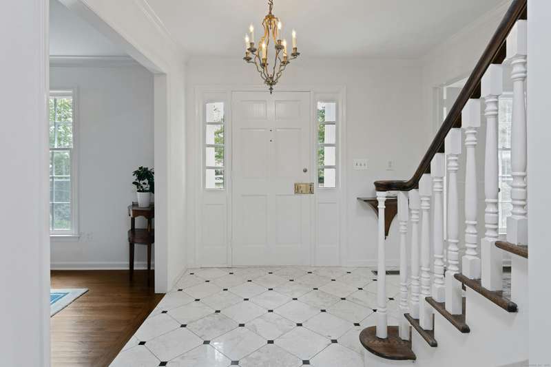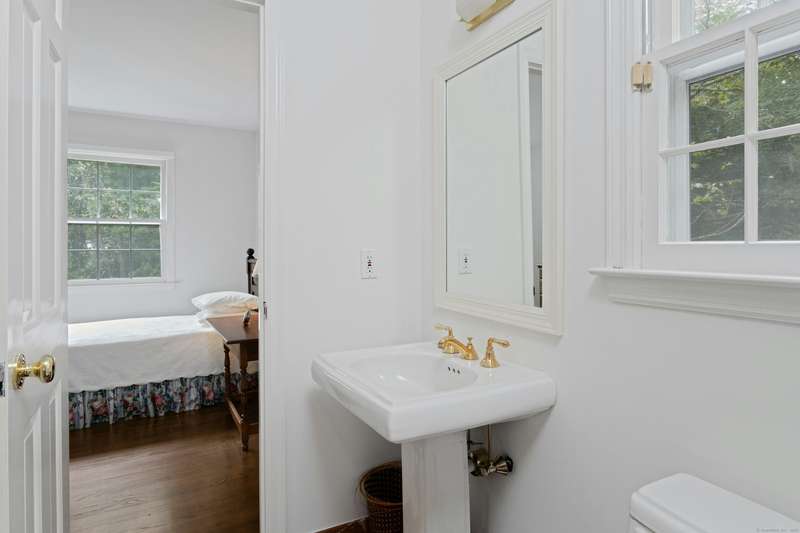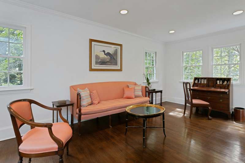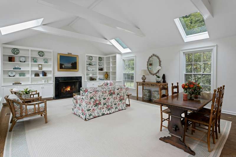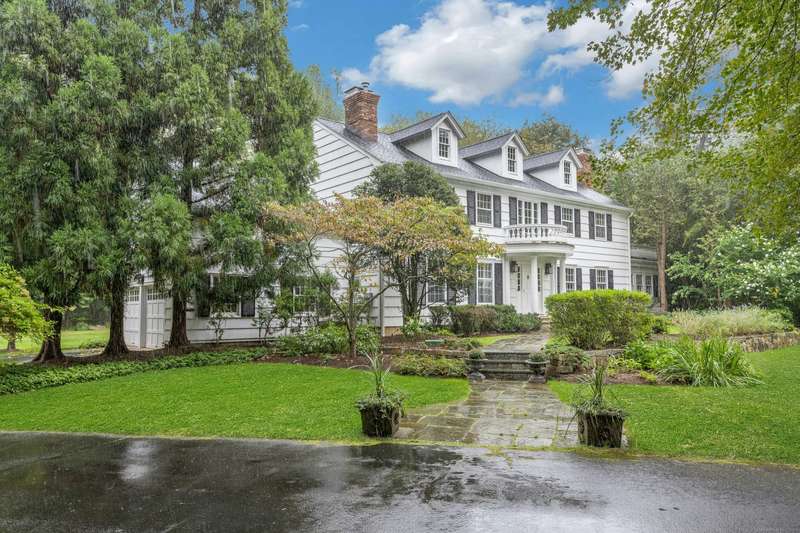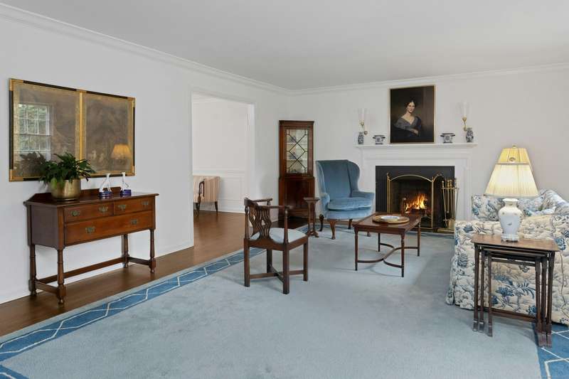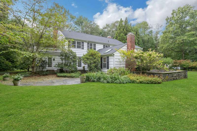 This classic Colonial has character, charm and generous space. The formal Living Room has a fireplace and adjoins the Music Room. The spacious Dining Room has a fireplace bordered by Dutch tiles and features a custom River mural. The kitchen has a bright copper exhaust hood, gas stove and opens to the family room with cathedral ceiling, skylights, fireplace and French Doors to the terrace. The private library has ample space for a full selection of books and accesses a 2nd terrace. The spacious Primary bedroom has a fireplace, cedar closets and a custom marble bath with skylights. There are 4 additional bedrooms, a walk up attic and a waterproofed basement with a cushioned floor. The estate like, level property has mature plantings and complete privacy. Make this gracious home and idyllic setting your own!