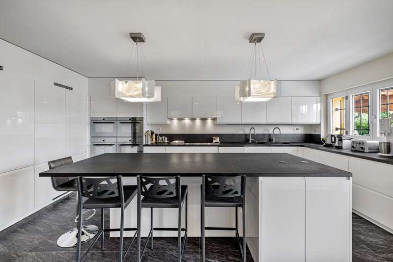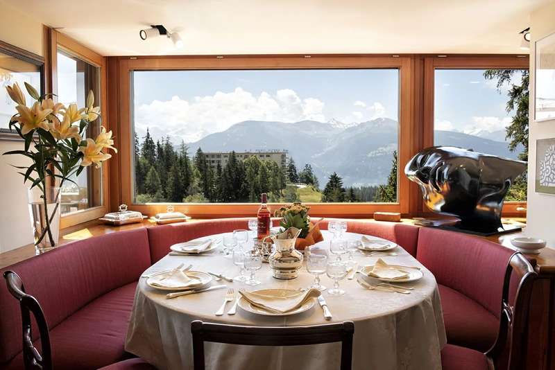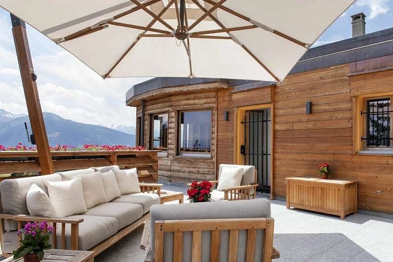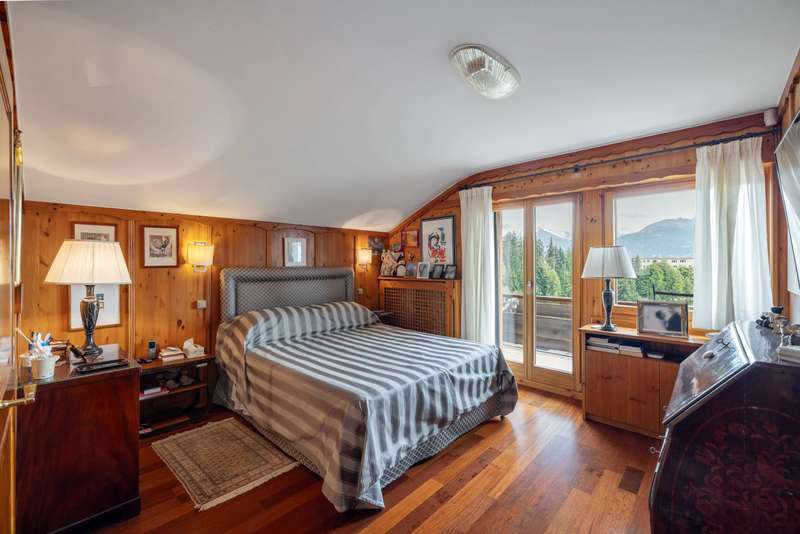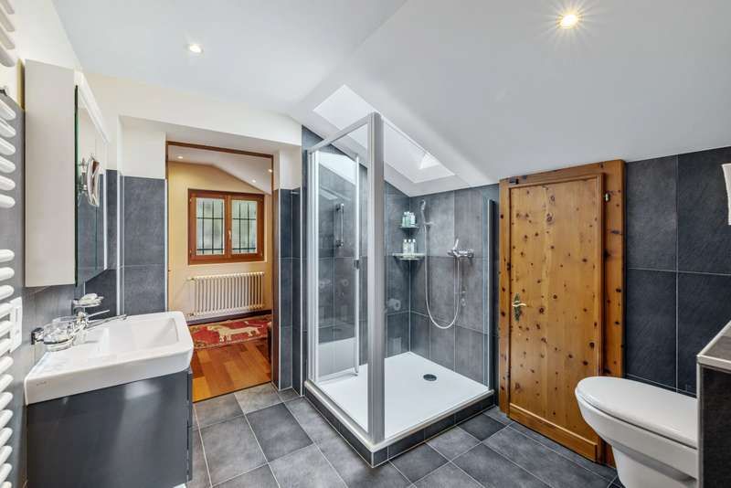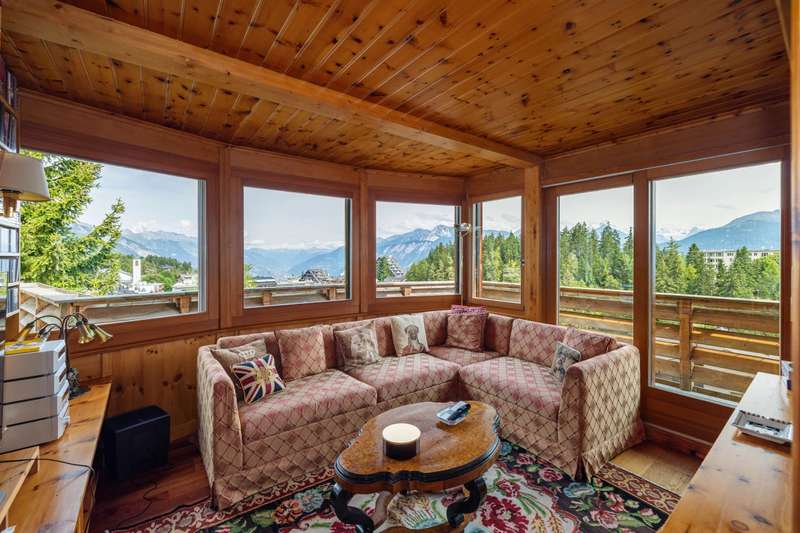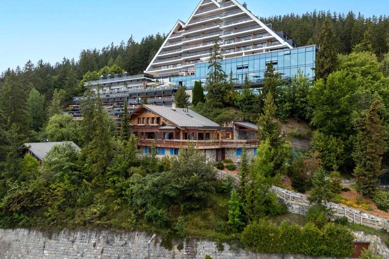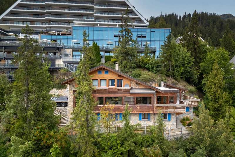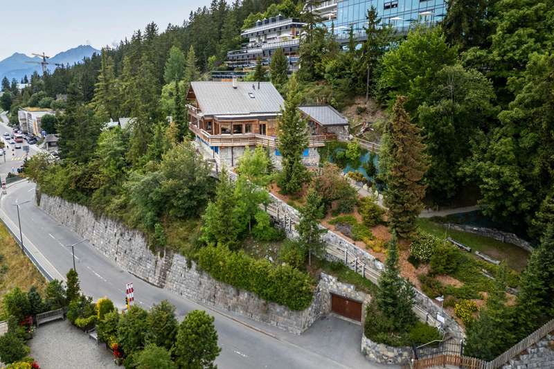 This magnificent chalet perched on a promontory, a veritable balcony overlooking the Valaisan Alps, offers breathtaking panoramic views. With a surface area of 484 m², it extends over a plot of 1,504 m² and enjoys a unique location. Right in the heart of the resort, the ski lifts and the village centers of Crans and Montana are just a few minutes' walk away, offering the luxury of "everything on foot". Completely renovated and extended between 2015 and 2016 with quality materials, this chalet offers vast, bright spaces throughout the day. The interior and all technical installations have been modernized, optimizing use while retaining a warm, alpine atmosphere. This exceptional chalet, served by a spacious elevator, offers generous space and optimum comfort on three levels. The first level comprises two double bedrooms, each with its own shower room/WC, and two single bedrooms. An additional bathroom and another shower room are available for optimum comfort. In addition, an incredible carnotzet invites unforgettable convivial moments. The second level leads to a spacious kitchen and office. The living/dining room opens onto a superb terrace offering breathtaking views of the Valaisan Alps. This level also features a TV room and a guest toilet for added convenience. The top floor houses two double bedrooms, each with its own shower room, including one with a private balcony. A third double bedroom with dressing room, shower room and balcony offers a galetas, perfect for storage. The property also includes a garage and three outdoor parking spaces. The property can be acquired as a primary or secondary residence by Swiss nationals or foreign nationals resident in Switzerland.
