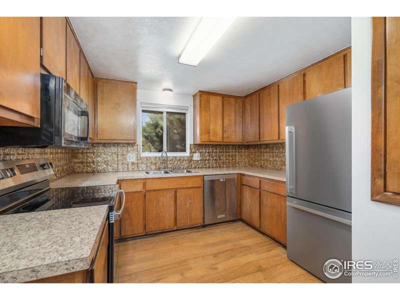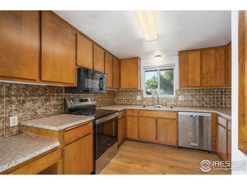 Opportunity Knocks! Looking for a great value and an opportunity to add some additional TLC for extra equity? Located near shopping, parks, dining, with easy access to I-25 this is truly an area you can really live! Step into the living room and onto the real oak hardwood floors which span nearly the entire main level. Down the hallway you will discover the shared full bathroom and two good size bedrooms on the south wing. The kitchen includes NEW countertops and the full complement of included sleek stainless-steel appliances. Also, on the main floor just off the attached garage is the laundry space. Downstairs is a great place to go for all sorts of fun. The generous family room is big enough for a pool table, open theater, or whatever you desire. There is an additional bathroom here in between the home office space and guest bedroom. This home is being sold in "AS-IS" condition and is respectfully priced. Pre-inspections are prepared for your confidence and convenience. Call today to schedule your own private showing.