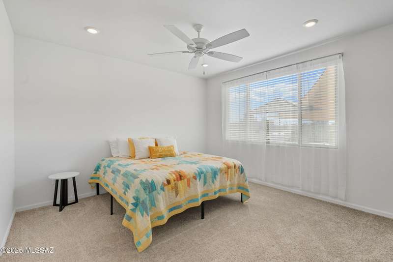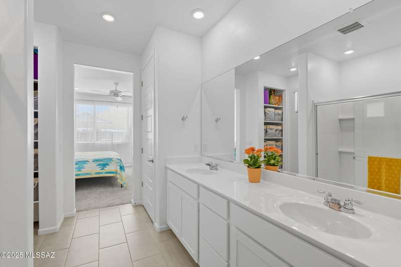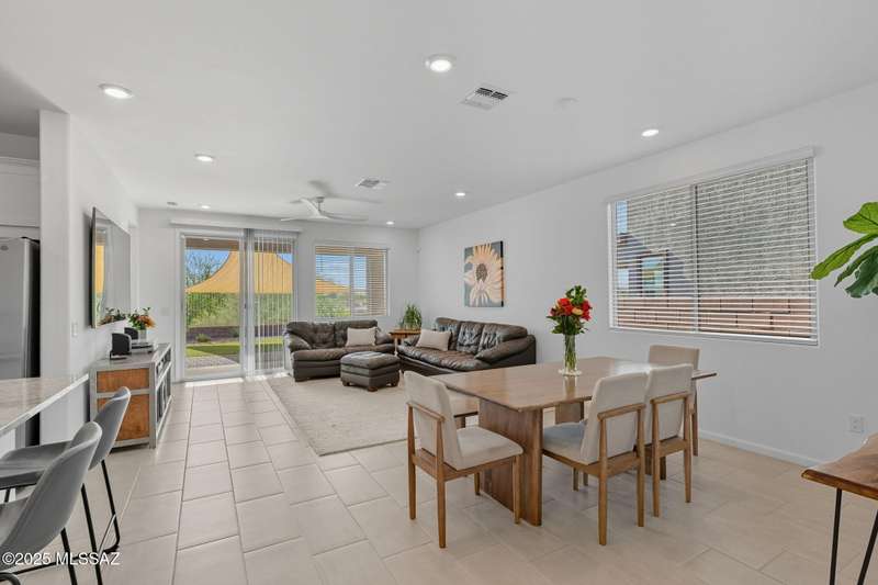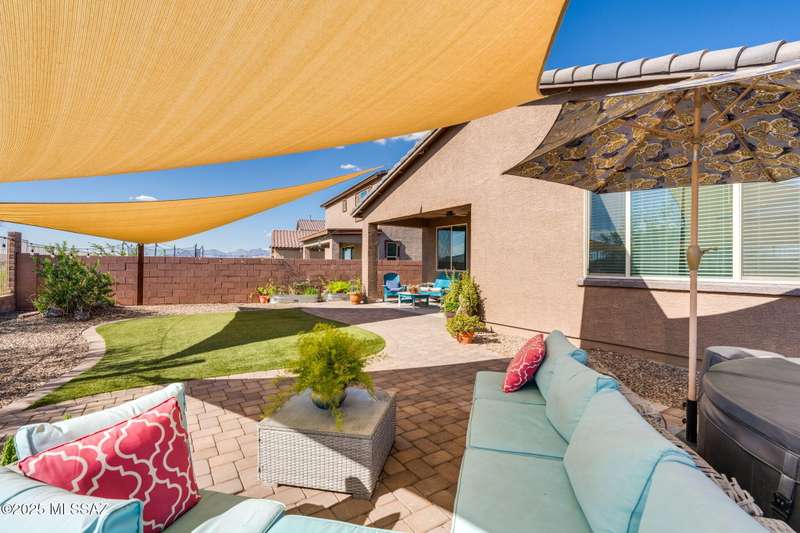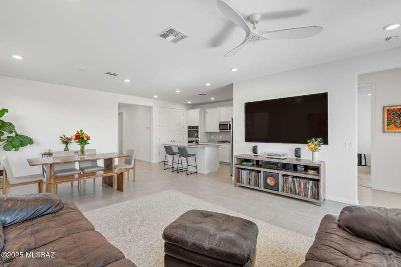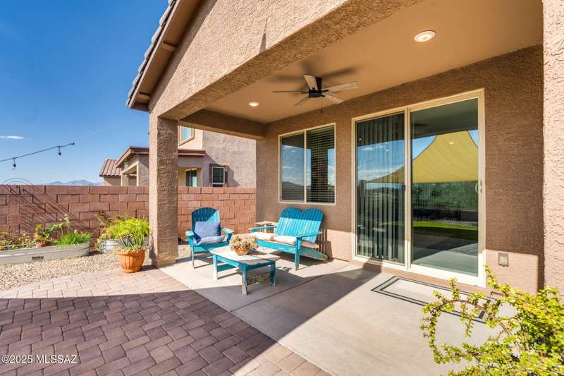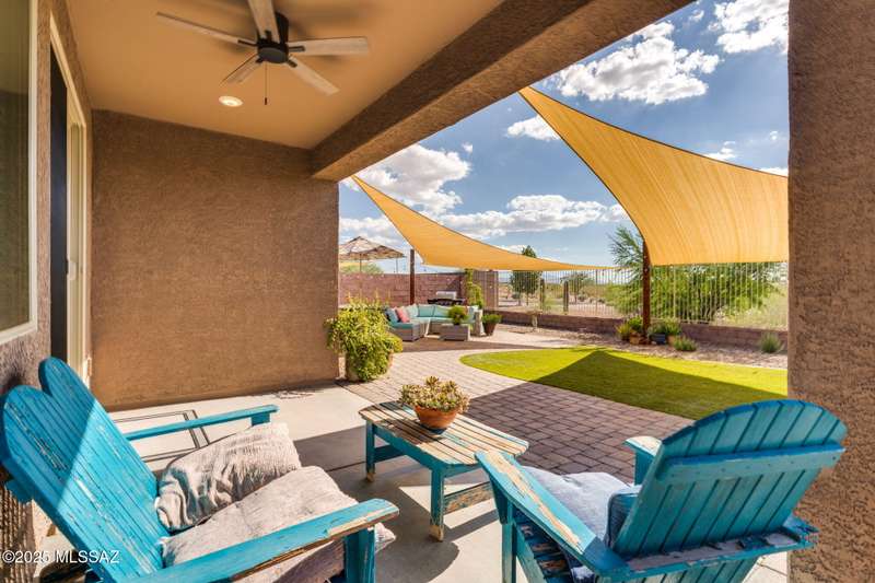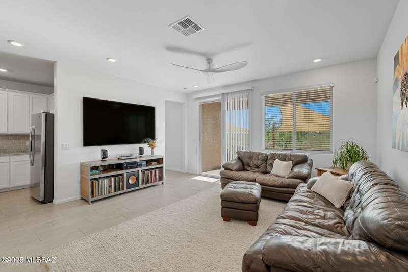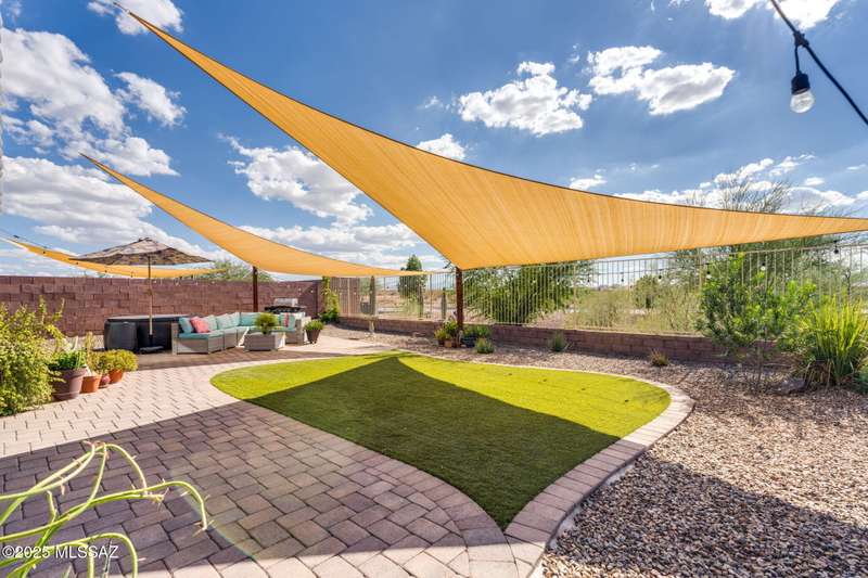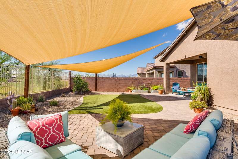 Welcome to this 3 bedroom, 2 bath home with 1,668 sq ft in the gated Rocking K community. Featuring a 3-car tandem garage and a bright open floor plan, this home blends comfort and style. The gourmet kitchen is designed for entertaining with a large island with seating, crisp white cabinetry, granite countertops, tile backsplash, stainless steel appliances, a gas range, double ovens, and a walk-in pantry. The primary suite offers a private retreat with dual vanities, a linen closet, and a walk-in closet. Step outside to your fully landscaped backyard with a covered patio, brick pavers, turf, and vista fencing to take in Arizona's stunning sunsets. Located within walking distance of The Award- Winning Vail School District's newest K-8 school, Saguaro Creek. Lots of community amenities.