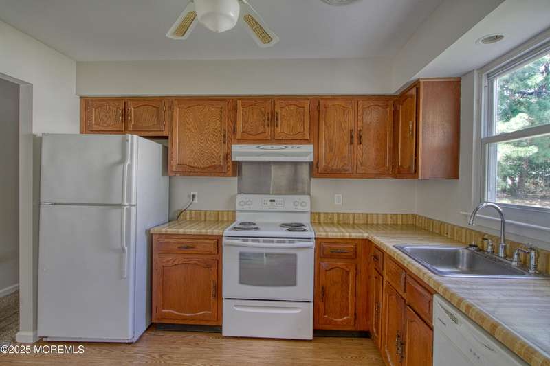 Such a wonderful house! This Sherbourne with 2 bedrooms, the main bedroom with 2 walk in closets, 2nd bedroom with large closet and a nook with shelves. This fine house has 2 full baths, 1 with a shower stall. Room eat-in kitchen with stove, dishwasher and refrigerator, bright and clean. The generous size living room leads to a dining area and then a step down to a Den with a door out to the back yard that is private and naturistic. The second door leads out to the garage with an amazing flooring that is industrial Vinyl and so special! This house has Central Air, newer heaters and thermostats. There is sprinkler system on a well. There is also a laundry area with washer and dryer. The driveway is newer and fits 2 cars. This home is mint condition and we are ready for a fast closing.