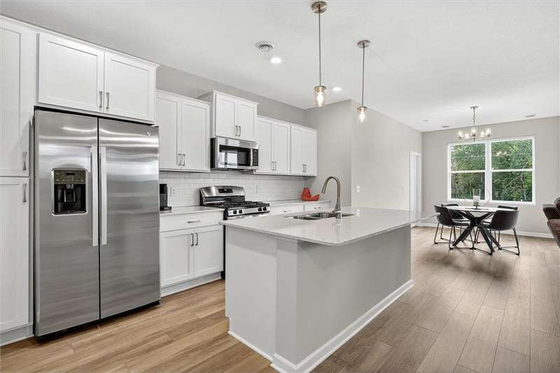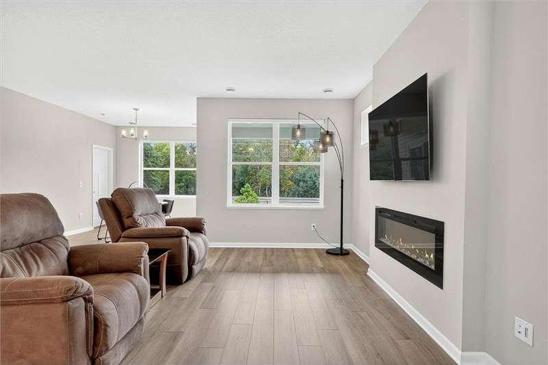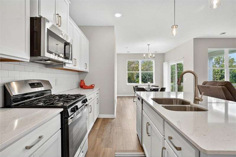 Enjoy the ease of main-floor living in this beautiful townhome featuring an open, bright, and airy floor plan with plenty of natural light. The stylish kitchen boasts an oversized island, tile backsplash, stainless steel appliances, and Silestone countertops—perfect for cooking or entertaining. Relax in the living room with its fantastic fireplace, or step out to the covered porch for a peaceful retreat. The spacious owner’s suite offers an oversized bath and generous closets. Additional upgrades include $16k+ in Hunter Douglas Silhouette power blinds in many rooms and a whole-house water filtration system. Representing a true carefree lifestyle, this townhome combines comfort, convenience, and style in one perfect package.