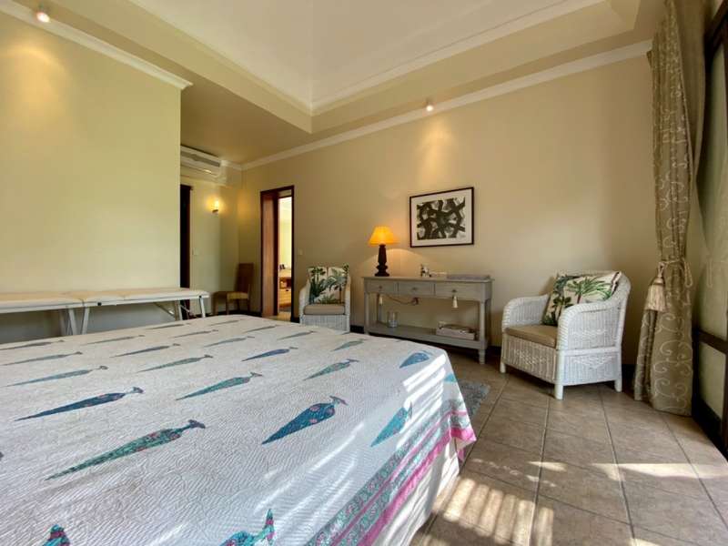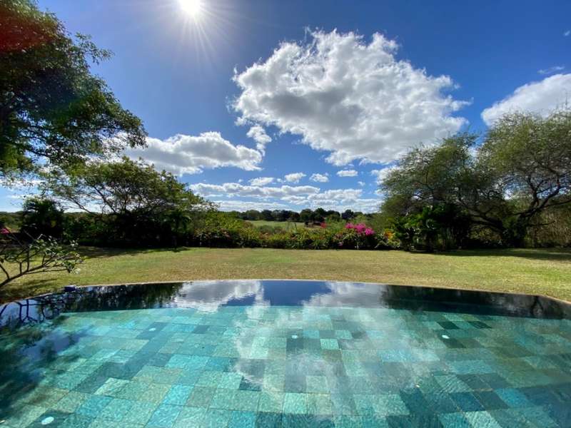 Beautiful, 4 ensuite bedroom villa, offering a stunning view over the golf course and the flora of IRS Tamarina Estate. Nestled within a lush tropical garden, one enjoys privacy, nature and a magnificent family home with an immense covered veranda leading to the infinity pool - ideal for entertaining too. Spacious, charming and with ample openings to allow natural sunlight in, and an agreeable flow of air, this home allows luxury island living. Residents of this private gated estate have access to the Golf Club House, le Dix-neuf restaurant, a ProShop and tennis courts. They can reach Tamarina hotel and beach, a privileged setting for sun-tanning and water sports, through the Beach Club, with their golf carts.