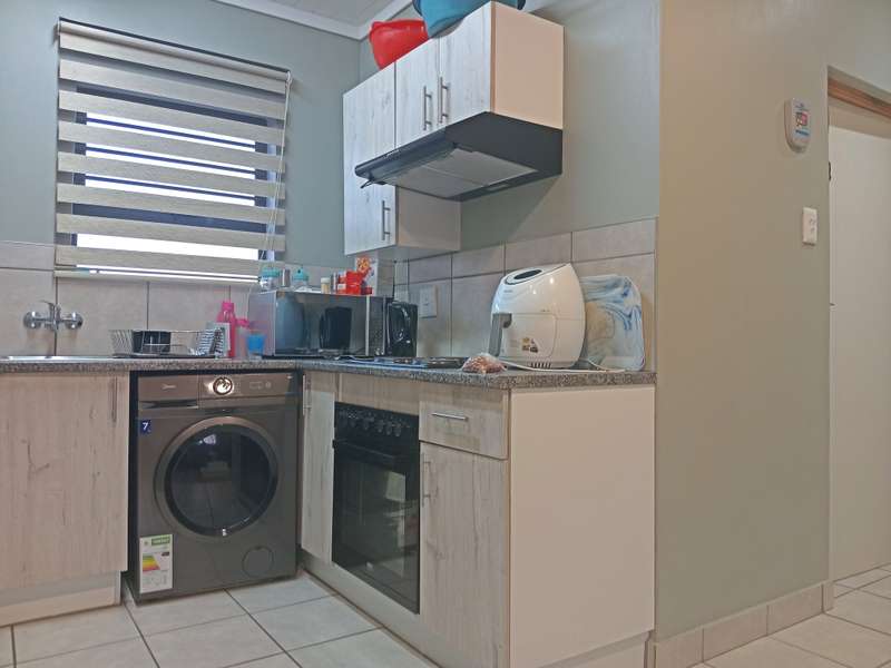 This charming 2-bedroom home is nestled in the up-and-coming Hillside Development, making it an ideal choice for first-time buyers looking to step into the property market. Tiled throughout, the house offers a warm and welcoming open-plan living area that flows seamlessly into a modern kitchen fitted with built-in cupboards. Both bedrooms are well-sized and feature built-in cupboards, with a neat full bathroom conveniently positioned between them. The property boasts a generously sized yard—perfect for future extensions or creating your dream outdoor space. Located in a rapidly developing area, you'll enjoy easy access to local malls, schools, and petrol stations. Don’t miss out on this beautiful gem—affordable, convenient, and full of potential!