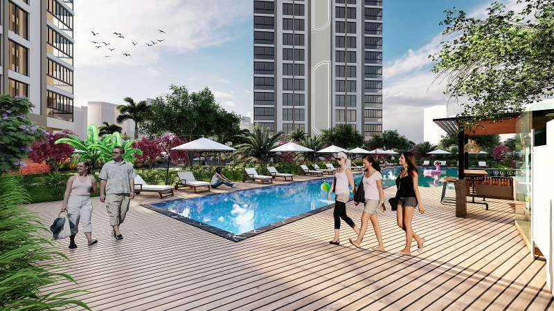 The project area is 7100 m², and the building has 18 floors. The residential complex has an outdoor swimming pool, indoor and outdoor parking areas, a fitness center, an outdoor kid playground, two barbecue and garden sitting areas, an elevator, a fire detector, a generator, natural gas, and a caretaker.