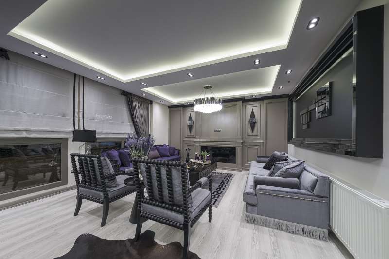 The apartments are 175 m² and consist of five bedrooms, a living room, three bathrooms, and two balconies. They have suspended ceilings, kitchen cabinets, cloakrooms, dressing rooms, bathroom cabinets, steel doors, PVC double glazing, shower cabins, and glass balcony railings.