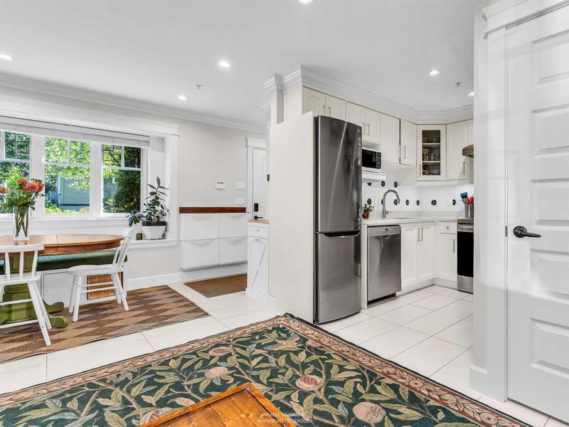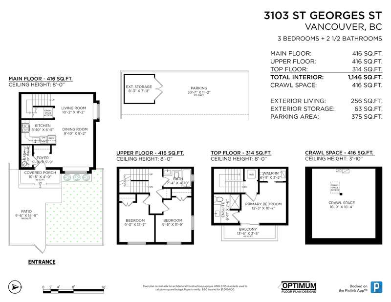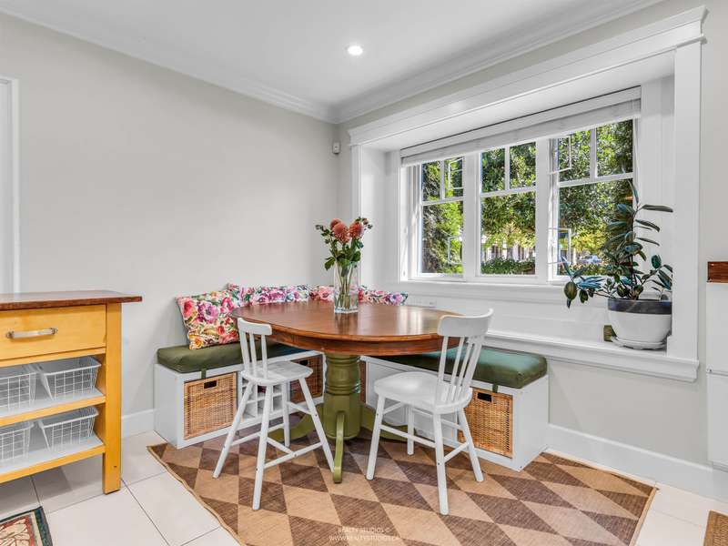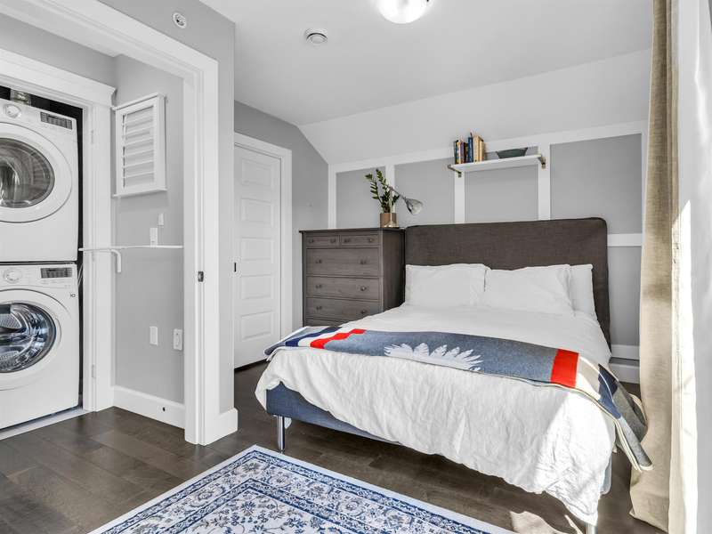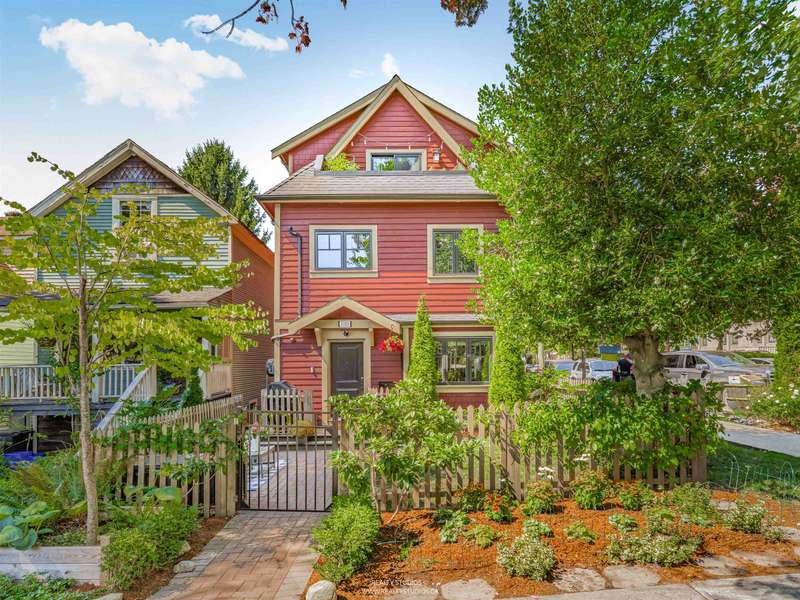 On a corner lot in a prime Mt. Pleasant location, this 3-storey, front 1/2 duplex offers a highly functional floor plan w/ 1,146 sqft + bonus 416 sqft crawl space. Natural light cascades throughout. Open concept main w/ engineered H/W floors; kitchen w/ S/S appliances & quartz counters; dining & living rms; & powder rm. 2nd floor: 2-beds & bath. Top level: ultra-private primary w/ W-I-C, ensuite, & balcony w/ eastern exposure. Radiant in-floor heating, tankless hot water, & built-in vac & ventilation systems. Private yard w/ perennial gardening & bespoke hardscaping; oversized parking w/ space for 2 cars. Close to excellent schools, recreation, rapid transit & the shops, services, & amenities of Main & Fraser Sts.
