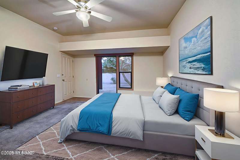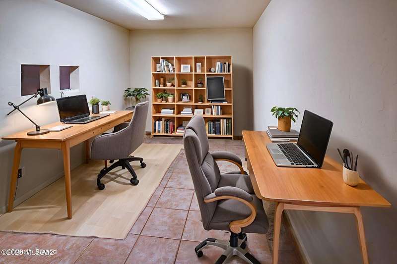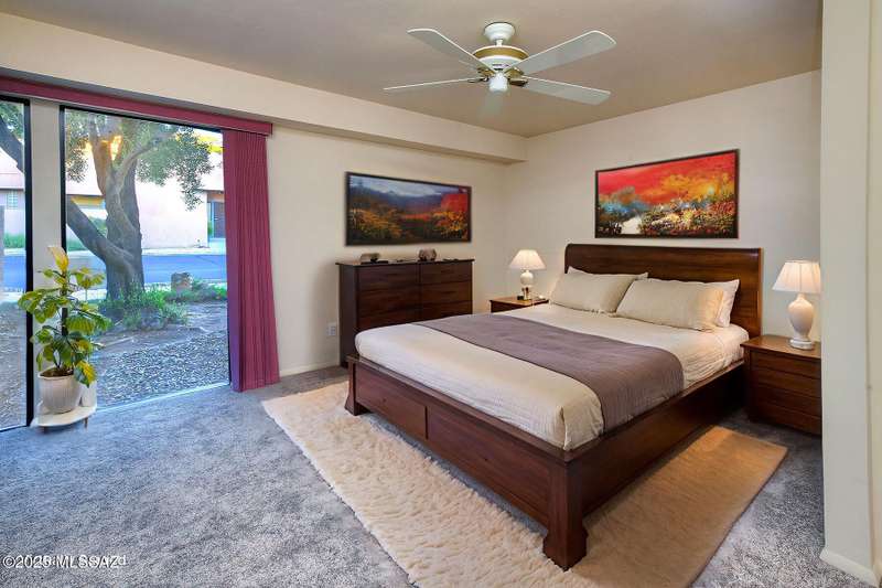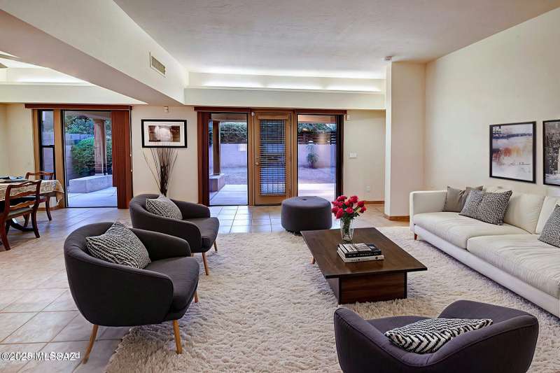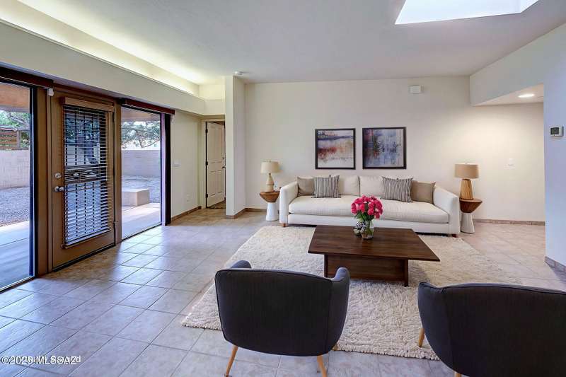 Centrally located and designed by the renowned historic team of Tyson/Murphy, this home showcases their signature contemporary style with floor-to-ceiling windows in the living, dining, and bedrooms that fill the spaces with natural light. The open floor plan features high ceilings, split bedrooms, and an additional flexible room perfect for a small office, pantry, or laundry area. A long entry hall provides the perfect gallery wall for displaying art, while skylights throughout add warmth and brightness.The kitchen is open and ideal for entertaining with its easy flow to the dining and living areas. The insulated two-car garage offers ample storage, and the private backyard with a covered patio provides a peaceful retreat with plenty of space to enjoy.