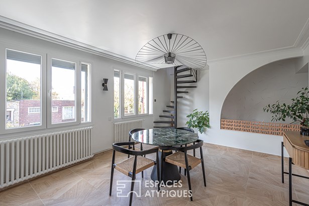 Shops, schools, and public transportation are in the immediate vicinity, reinforcing the perfect balance between urban living comfort and a bright refuge with a decidedly atypical feel.