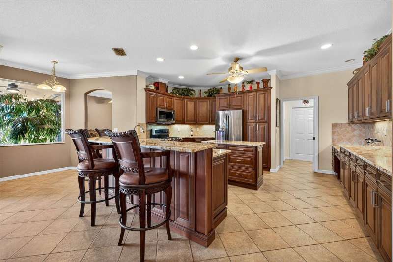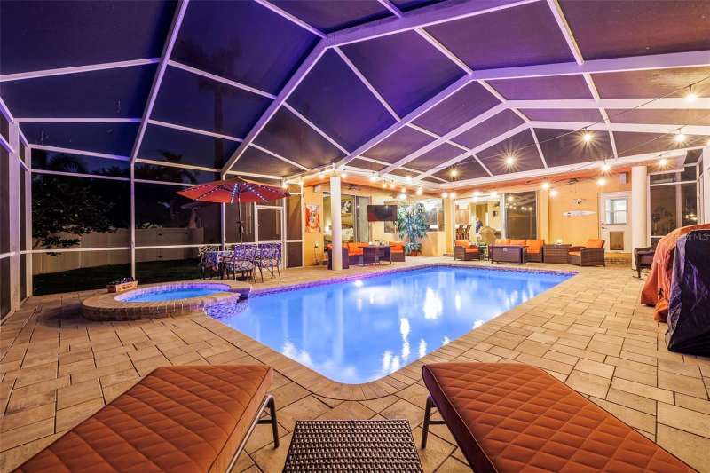 Welcome Home! Tucked away in the quiet, deed-restricted enclave of Sea Oaks, this 4-bedroom, 3-bath executive home offers over 3,100 square feet of beautifully balanced living space perfect for entertaining and families. Built in 2001 and thoughtfully updated throughout, this home combines modern comfort with a timeless sense of style. A stately entry welcomes you into an airy open floor plan, where generous living and dining areas flow effortlessly toward the heart of the home. The heart of the home centers around the beautifully updated kitchen (2022), featuring custom cabinetry, granite countertops, and high-end appliances that make cooking and gathering a joy. From here, panoramic sliding glass doors open wide to reveal a resort-style outdoor retreat. An oversized screened lanai with a sparkling pool and spa surrounded by abundant lounging and dining space. Whether hosting lively weekend barbecues, pool parties, or quiet evenings under the lights, this outdoor area truly extends the home’s living space year-round. The split-plan primary suite provides a peaceful retreat with a large walk-in closet and well-appointed bath. A versatile bonus room offers endless flexibility, perfect for an executive home office, fitness studio, library, or creative space. Upstairs, a private den with a custom bar makes the ideal setting for game nights, weekend gatherings, or quiet evenings in. With recent upgrades including a 2020 roof, 2022 HVAC, and 2019 water heater, this home is as practical as it is inviting. Set on an elevated quarter-acre lot, not located in any flood zone (high and dry), located less than five minutes from the beach, in a top-rated school zone, and with exceptional shopping and dining, this is Florida living at its best!