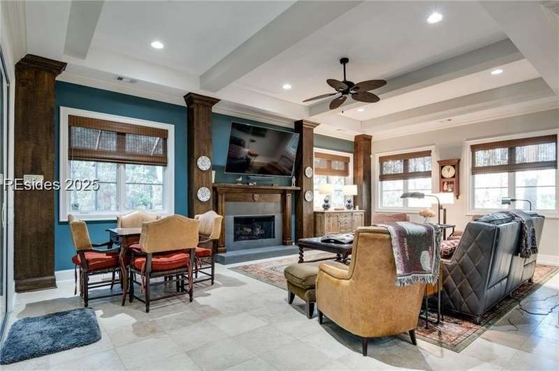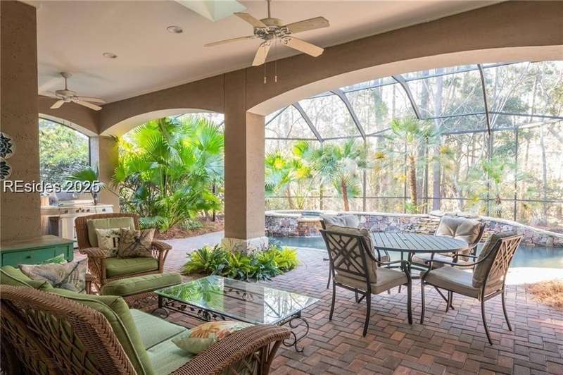 This beautifully maintained Lanai model is ideally located just a short stroll from the Clubhouse, Spa, and Fitness Center. Situated on a private lot, the expansive screened lanai offers a serene, spa-like retreat perfect for relaxation or entertaining. Inside, the home features four spacious bedrooms, a formal dining room, a welcoming living room, and a large family room, providing plenty of space for both everyday living and hosting guests. Recent updates include new carpet installed in three bedrooms, freshly painted white kitchen cabinets, and a new roof installed in June 2025. Enjoy the perfect blend of comfort, privacy, and convenience in Berkeley Hall.