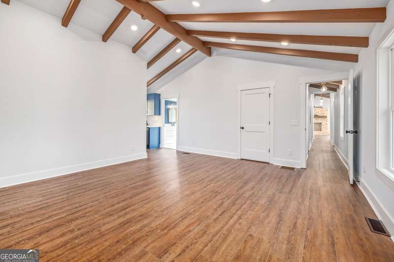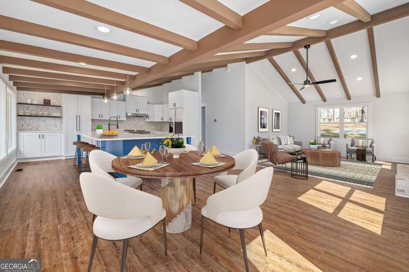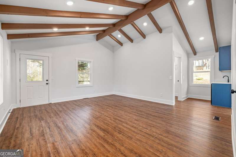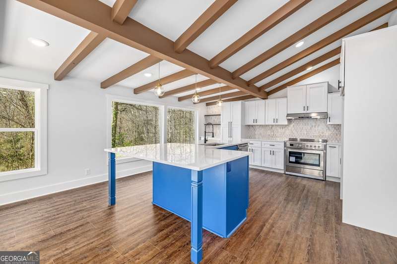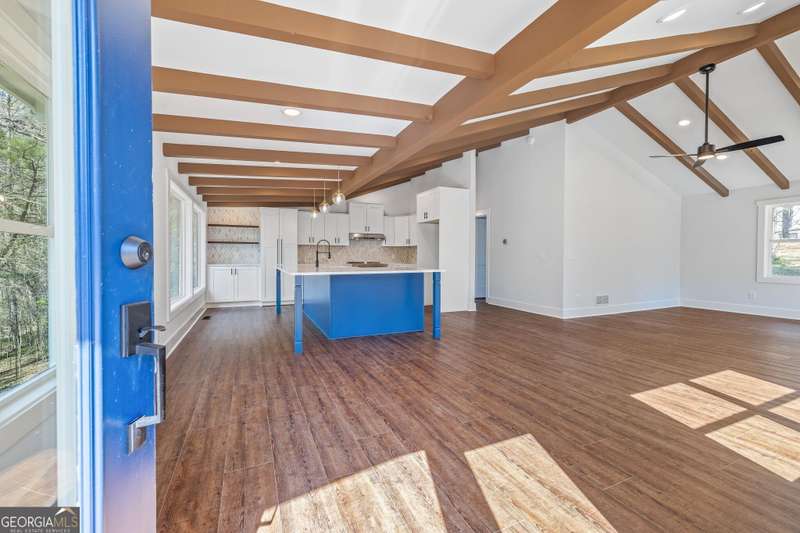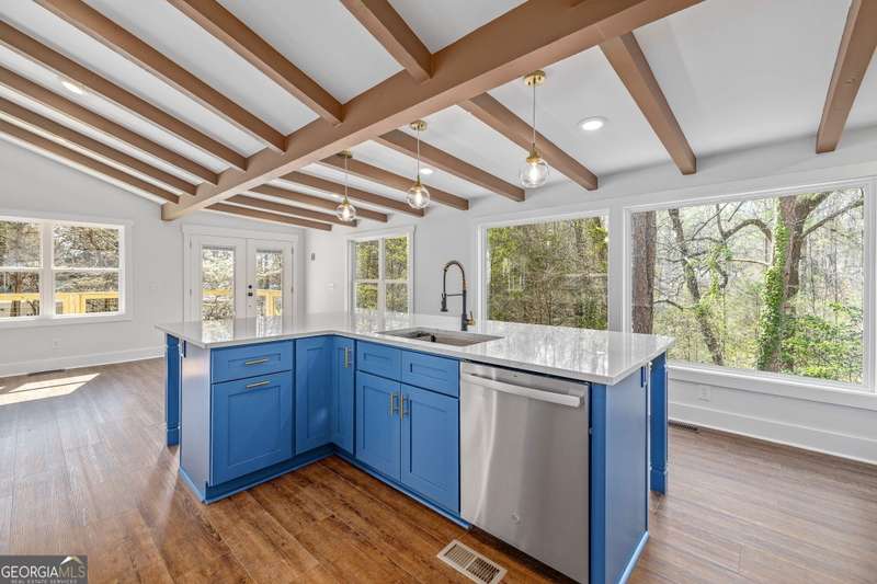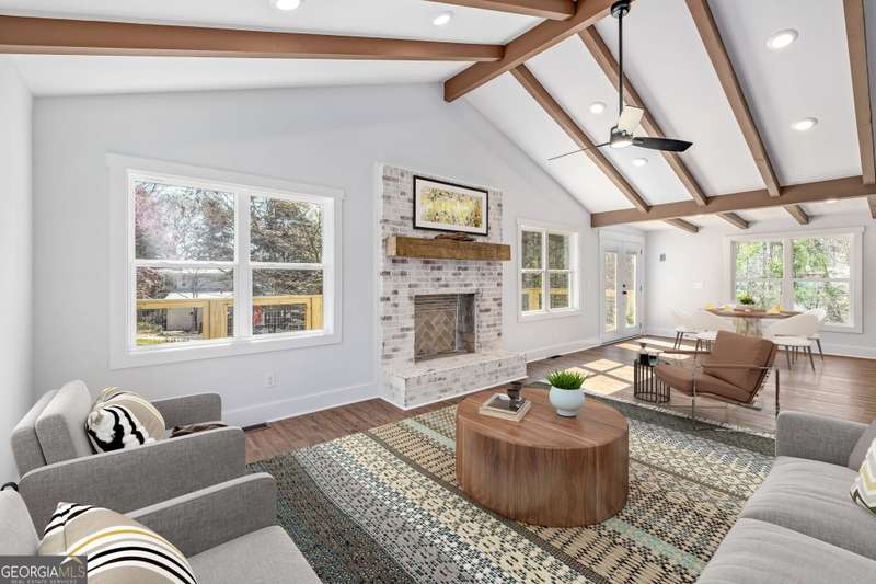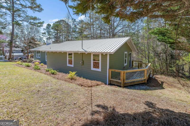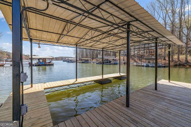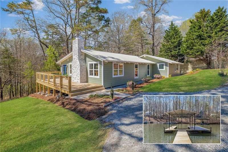 This newly renovated home on lake Lanier offers a private dock, positioned in a deep water cove yet easy access to big open water. Experience main level living with upgrades and amenities found throughout every corner. The new deck welcomes you and invites a seamless transition of indoor-outdoor living. Step inside and find a sprawling ranch style floor plan. The open concept plan is made to entertain yet crafted for everyday functionality. In the kitchen, find an abundance of cabinetry adorned with Quartz countertops and marble backsplash. An oversized oven and cooktop offer an impressive focal point. Large picture windows invite the outdoors in and create a serene and natural setting while enjoying the conveniences of a modern luxury kitchen. A large walk-in pantry is craft-fully tucked within the cabinetry for a sleek design. Just off the kitchen, there's space for a dining table, or gather around the kitchen island for seating. The kitchen offers a view to the spacious living room centered around a brick fireplace and beamed ceilings. Smart home features can be found throughout with Nest thermostat, night light capable ceiling lighting in both bathrooms, and Bluetooth connectivity found in the primary suite. The primary bedroom is spacious and thoughtfully designed, featuring vaulted ceilings, a private deck, and a coffee bar, suited to enjoy slow mornings at the lake without ever leaving the primary suite. The en-suite showcases a custom floor to ceiling tiled shower and separate soaking tub, along with a quartz accented double vanity. Dual walk in closets with one featuring a window for natural light and large enough to add a small desk or vanity. Two secondary bedrooms and a full bathroom are ready to accommodate. The guest full bathroom features quartz countertops and a large vanity. Located conveniently between secondary bedrooms and primary suite, the upgraded laundry room offers size and functionality. A gentle and short stroll takes you the water's edge and the newly decked 30 x 24 single slip dock. Although on public water, an irrigation well is available for your needs. Conveniently located just a few minutes to fuel docks on lake Lanier. This Dawsonville location offers the best of both worlds, a quiet setting and approx 2 miles from HWY 400 access with many shopping & dining options.