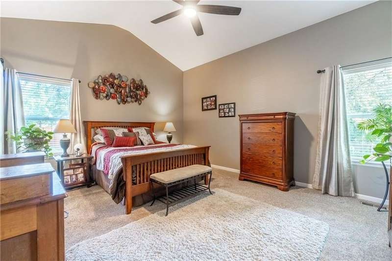 *Back on Market- buyer contingency fell thru* Tucked away on a quiet cul-de-sac, this charming 1.5-story home offers the perfect blend of comfort and style. The main level features an inviting open layout with soaring ceilings, large windows that flood the space with natural light, and a cozy living area ideal for gatherings. The kitchen boasts plenty of cabinetry, modern finishes, and easy flow into the dining area and family room. Main floor primary bedroom and updated bathroom, as well as laundry/mud room. Upstairs, you’ll find a private retreat with 2 additional bedrooms, full bathroom and loft space, perfect for kids, guests, or a home office. The finished basement is a true highlight—complete with a full bar, spacious entertaining area, and an additional bedroom and bathroom, making it an ideal spot for game nights, movie marathons, or overnight visitors. With its prime cul-de-sac location surrounded by trees and beautiful landscaping, this home offers privacy and low traffic, while the outdoor space provides room to relax or play. A wonderful mix of functionality and charm, this home is designed for both everyday living and entertaining.