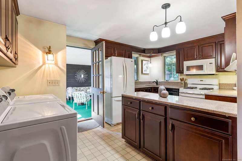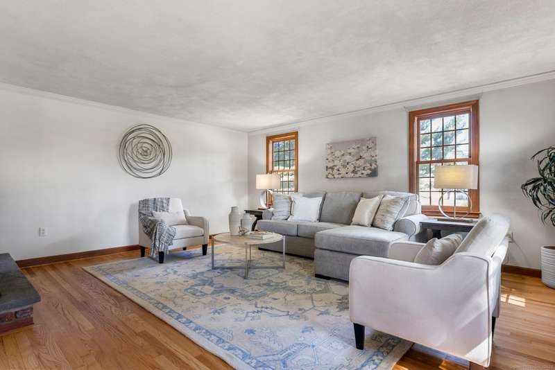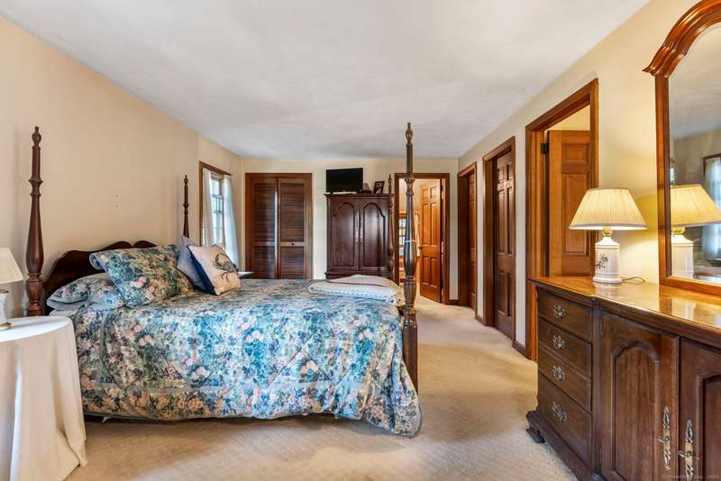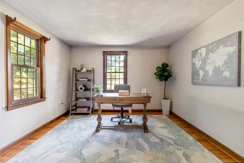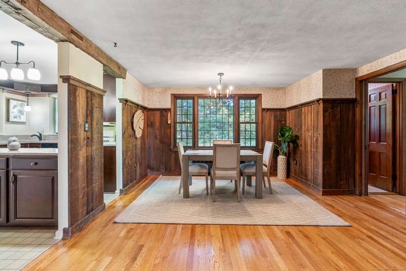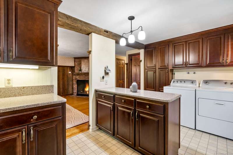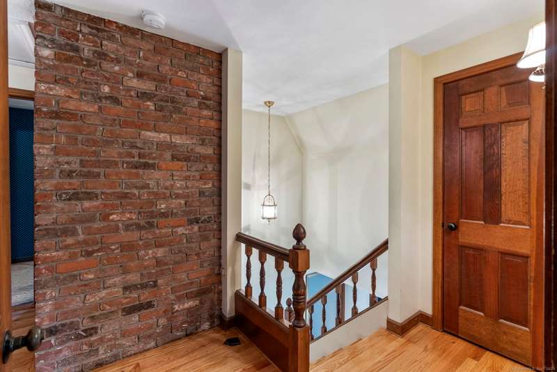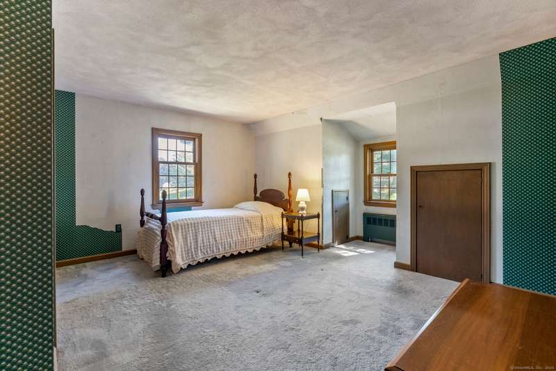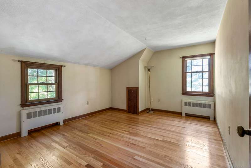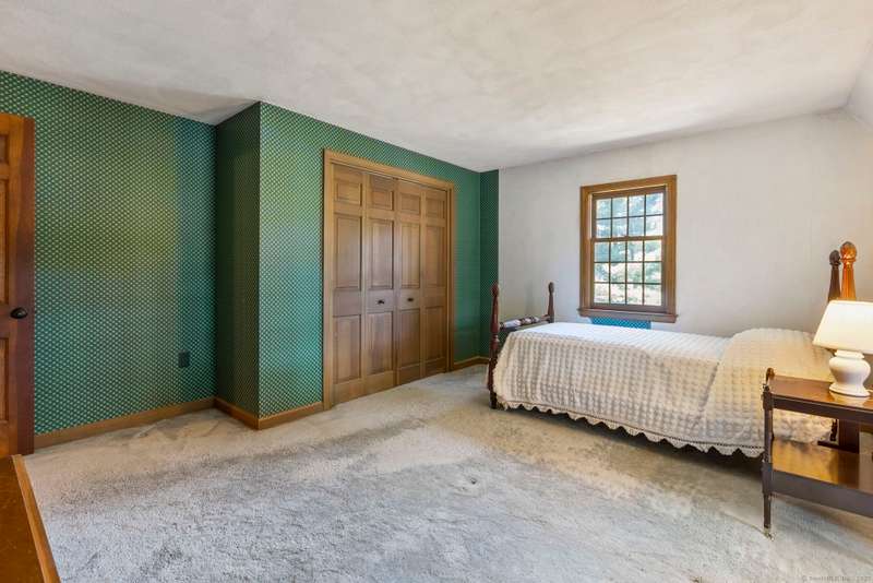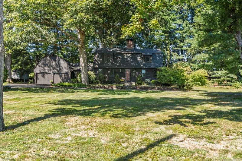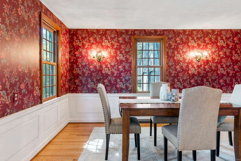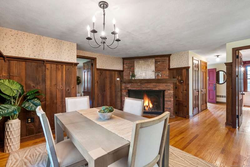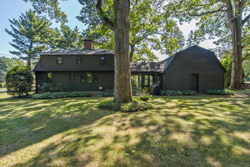 Built by renowned Wethersfield homebuilder H. Bosworth, this classic Dutch Colonial offers over 2,300 square feet of thoughtfully designed living space on just under an acre of land. Ideally situated on a picturesque corner of one of the town's most beloved streets, this home showcases a circular driveway and masterfully combines craftsmanship with warm, inviting charm. The main level features a welcoming front foyer, a spacious living room with a fireplace, a formal dining room, a cozy den, half bathroom and a kitchen with a charming dining area and second fireplace. Upstairs, a generous landing leads to the primary bedroom with a private bath, two additional bedrooms, a full hall bathroom, and ample closet space. An attic fan provides effective seasonal cooling, and an enclosed porch offers a peaceful retreat. The home features a spacious two-car attached garage with additional attic storage and an over-size shed. Recent 2025 updates include a new roof, a fully rebuilt chimney, the W