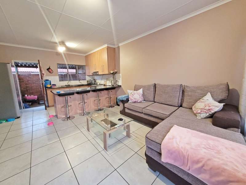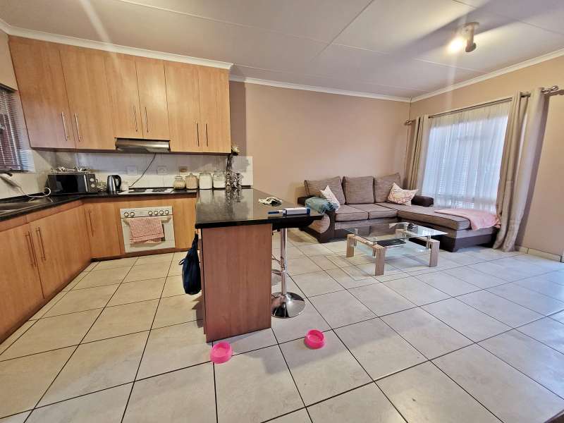 This well-maintained townhouse is perfect to move in. Upon entrance this home welcomes you to an open plan lounge area which is comfortable for a small family. The kitchen is modern with granite tops to complete the picture. There are 2 bedrooms fitted with built-in-cupboards and can easily accommodate a double bed. There is one bathroom in place A small garden which is easy to maintain Also offers: • Pet friendly • Fiber • Communal pool Call now to avoid disappointments!!!!