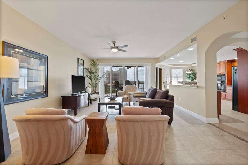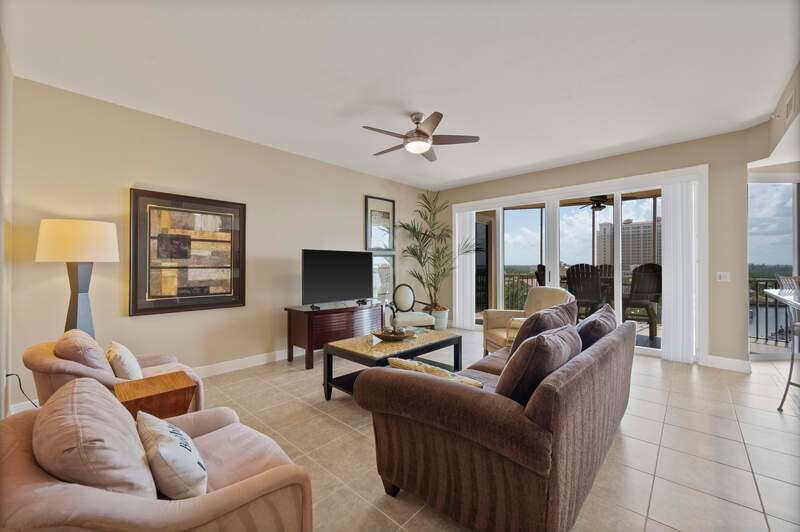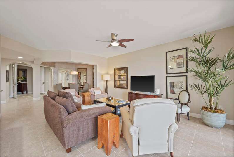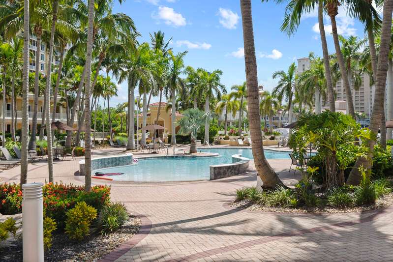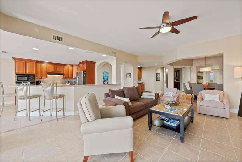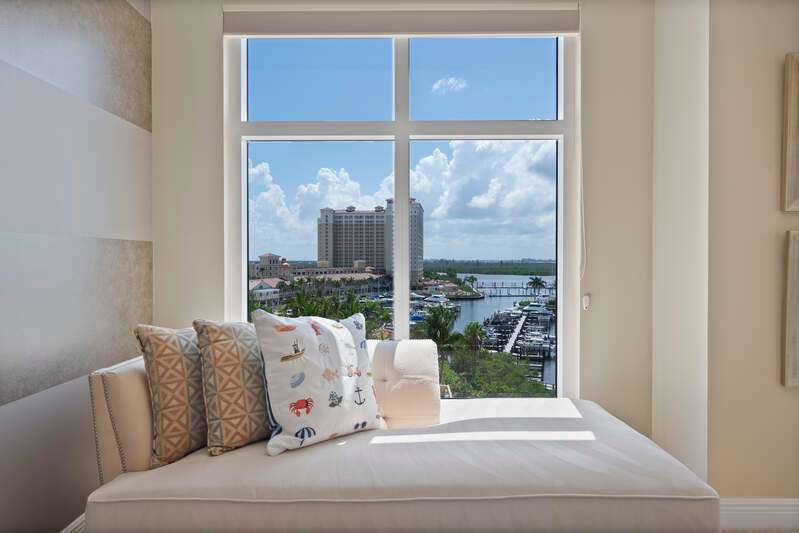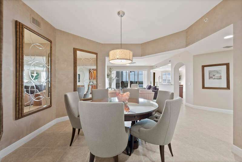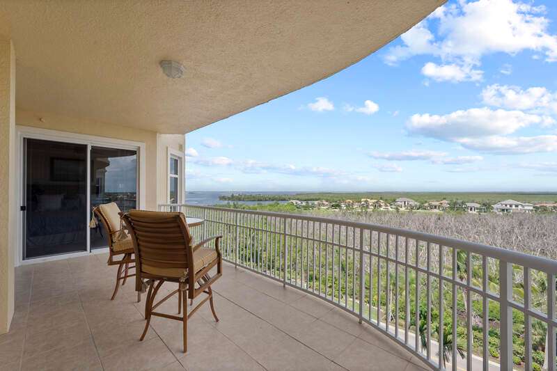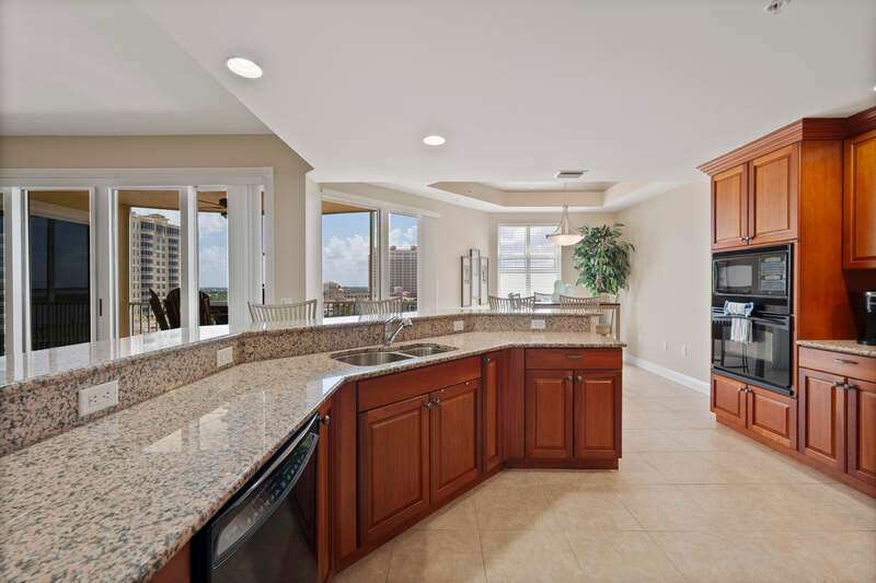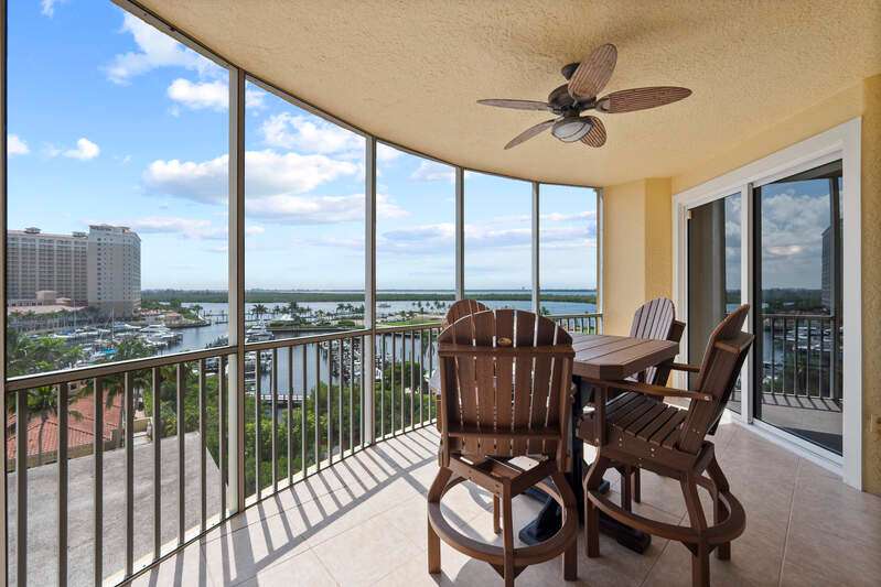 Nestled in the heart of Cape Coral, this exquisite waterfront property offers unparalleled luxury and convenience within a prestigious gated community. With deep-water Gulf access and leased boat dockage accommodating vessels up to 75 feet, this haven is a boater's dream, complimented by a full-service marina just moments away. As you explore the two expansive pools you'll be surrounded by tropical palms and mature landscaping giving you the island feeling. The two balconies offering breathtaking east and west views, leave you captivated by the stunning vistas of both the Bay leading to the Gulf and the serene river overlooking lush mangrove estuaries. The community is rich with amenities-dive into relaxation with a community pool and spa, challenge yourself at the exercise room, bocce court or enjoy leisurely days at the fishing pier, tennis court or a lively game of Pickle Ball. The clubhouse beckons with billiards to challenge your expertise, while bike and jog paths wind through beautifully mature grounds. A private elevator delivers you directly to your foyer with double doors opening to a beautiful open floor plan. With over 2900 sq. foot of living area, you have plenty of room for family, friends and entertaining. All stainless appliances grace the home, 2 viewing balconies facing east and west, 3 bedrooms, 3.5 bathrooms and a den for use of whatever makes you happy!! The community's award-winning dining and shopping options are right at your doorstep with a winding boardwalk around the property to stroll along and enjoy the Florida sunshine. Whether for sun-drenched beach days or tranquil sunset cruises, this property promises an unmatched living experience, where every convenience and luxury is at hand. This unit comes with a 2 car 2nd floor elevated Garage for your toys! Call for your private viewing, the home will not disappoint!!
