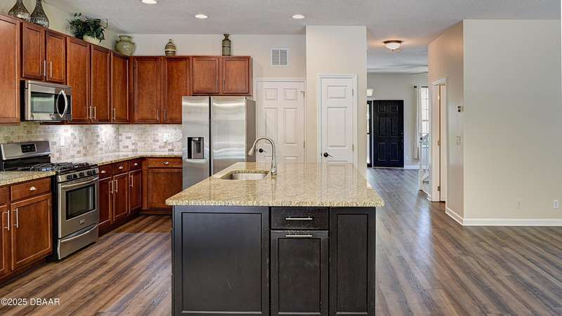 TAKING BACK UP OFFERS on this ATTRACTIVELY PRICED spacious 5-bedroom POOL HOME with over 3,200 square feet of living area! Located in the beautiful golf community of Victoria Hills. Conservation area behind the home provides relaxing views and privacy! The roof was re-shingled in March 2024 providing the buyer with peace of mind! Freshly painted interior with neutral colors! Luxury vinyl plank flooring and hardwood on the first level with brand new carpet just installed upstairs. The huge upstairs bonus room with an attractive built-in and space-saving murphy bed can be utilized as a 5th bedroom, guest room, media room, game room, hobby room, or home gym! As you enter the home, you will appreciate the open floor plan with high ceilings, neutral colors, plantation shutters, and luxury vinyl plank flooring. This home provides a welcoming space for family and friends to gather. The large eat-in kitchen boasts impressive features including GAS cook-top and oven, recessed lighting, stainless steel appliances, granite countertops, attractive neutral colored tile backsplash, and pantry. A huge kitchen island features a breakfast bar and valuable space for food preparation and additional storage cabinets below. The laundry room is conveniently located directly off the kitchen. The well-functioning kitchen overlooks the family room and view of the pool. The primary bedroom has a desirable location on the first floor and features a tray ceiling, two large walk-in closets and spacious bathroom with beautiful updates, a soaking tub and separate shower. Upstairs, there are four additional bedrooms and a full bathroom. Two of these bedrooms are very impressive in size! Ceiling fans are found throughout the home and a nest thermostat will be appreciated by the energy conscious. Step out back to your own backyard paradise! The fenced in private backyard backs to a treed conservation area and features a refreshing pool with sounds of cascading water. The covered lanai with a screened pool enclosure, as well as a safety fence for children and pets, makes this a great outdoor space for friends and family. This home provides a perfect combination of comfort, style, and enjoyment. Enjoy the outdoor paradise year-round for relaxation and entertainment! Schedule a private tour today and learn more about this impressive home and community. HOA provides residents with access to 2 community pools, 2 gyms, pickle ball/tennis courts, and playground! Also included: Spectrum bundle contract with Wi-Fi, internet, and cable. Reclaimed water provided by Victoria Park Community Council for the in-ground irrigation/sprinkler system. Enjoy golf at the Victoria Hills Golf Club which features a beautiful 18-hole, par 72 golf course. Golf Memberships are available with discounts for residents.