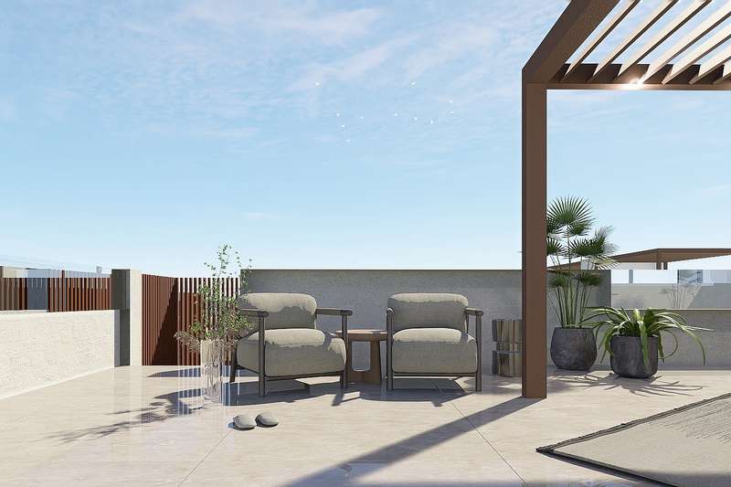 These apartments are available in 2 or 3-bedroom layouts with 2 bathrooms and offer elegant, functional interiors. They include open-plan living spaces, fully equipped kitchens with appliances, and pre-installed ducted air-conditioning. Ground-floor homes feature private terraces, while top-floor units come with spacious solariums ideal for outdoor living year-round.