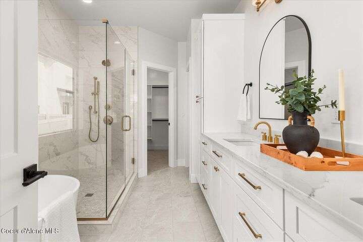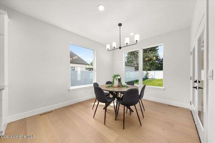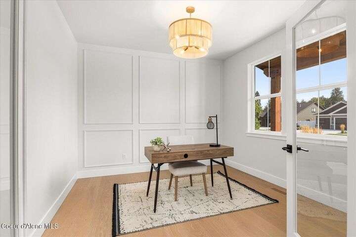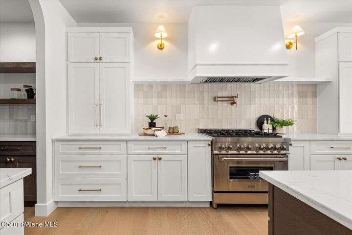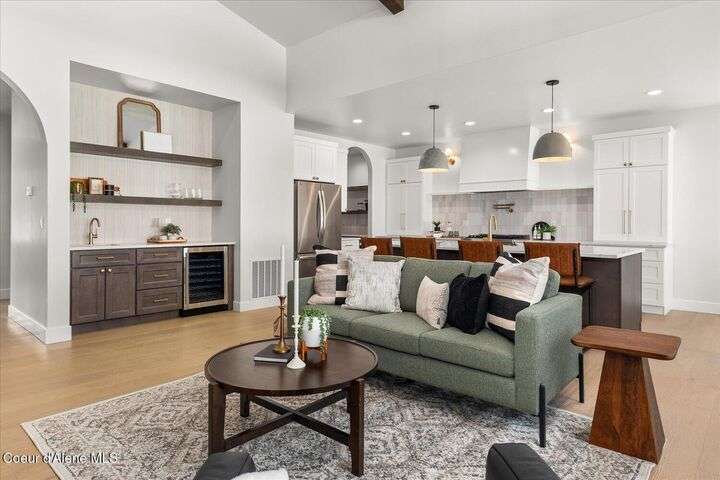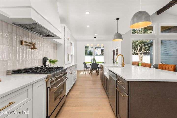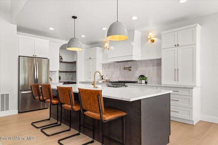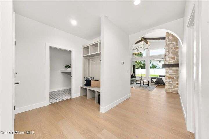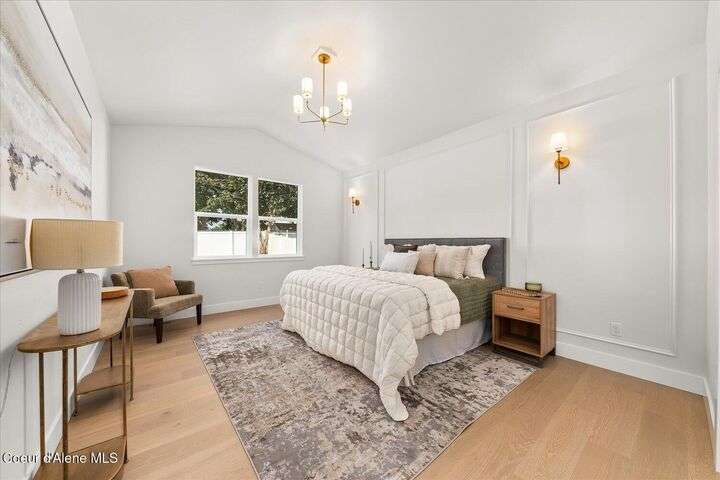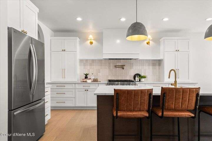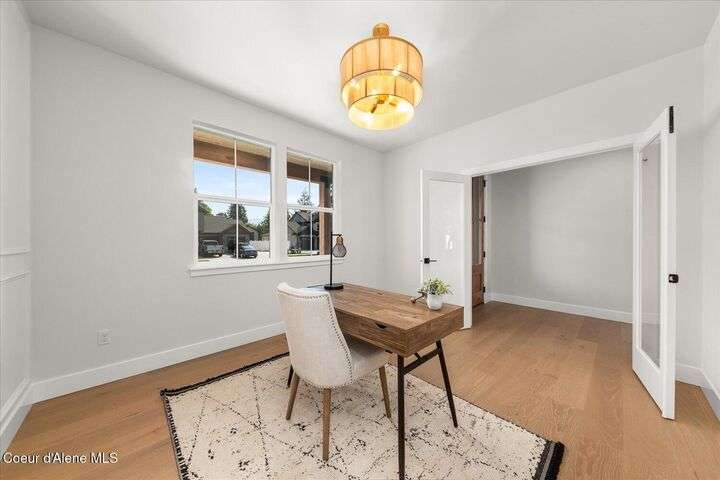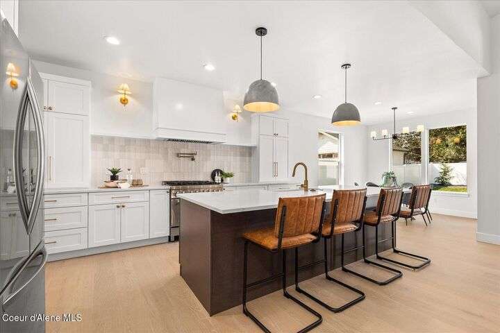 This stunning 2,672 sq ft new construction home offers 4 bedrooms, 2.5 baths, an office, and a bonus room, designed with exceptional attention to detail. Luxury finishes include engineered hardwood floors, tile in all baths, custom tile showers, and quartz countertops throughout. The vaulted living room features exposed rough-sawn timbers and a floor-to-ceiling stone gas fireplace. The chef's kitchen boasts a 36'' gas range, pot filler, walk-in pantry with built-in cabinetry, and a beverage bar with fridge. The vaulted primary suite impresses with vaulted ceiling and spa-like bath. Enjoy the outdoors on the vaulted covered patio or large front porch, both with tongue-and-groove ceilings. Fully fenced and landscaped front and rear yards complete this move-in ready dream home.